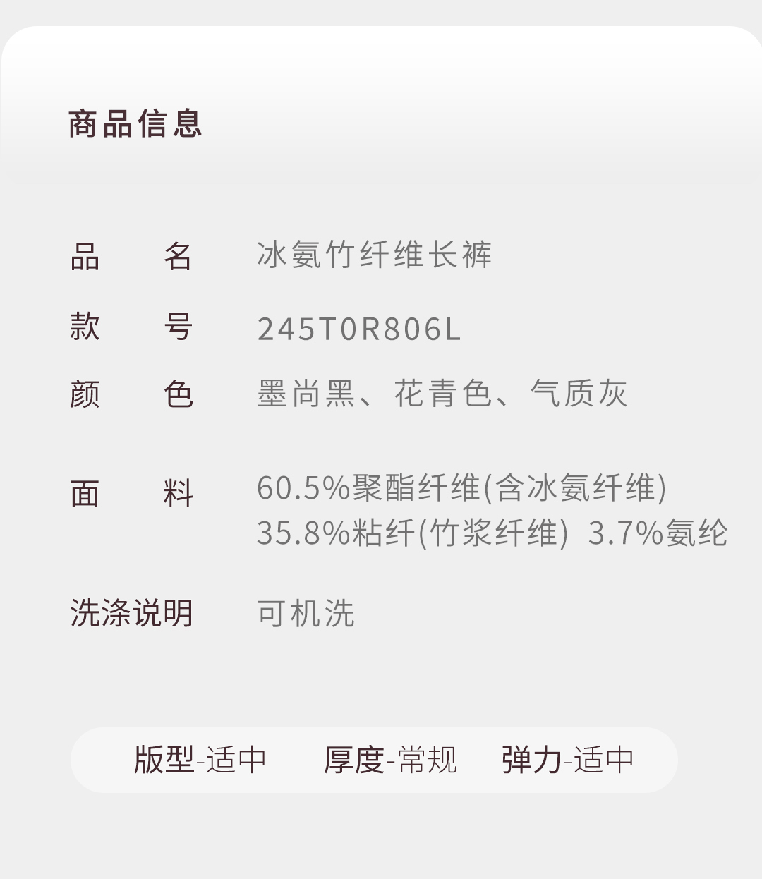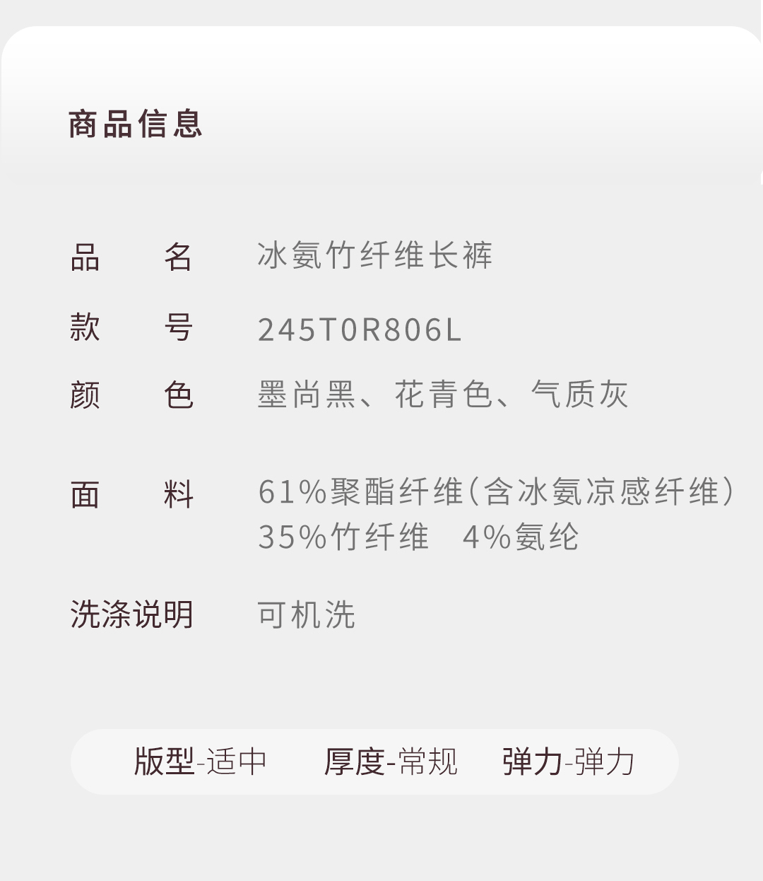 【轻旅系列】弹力腰冰氧竹纤维休闲裤245T0R806L
