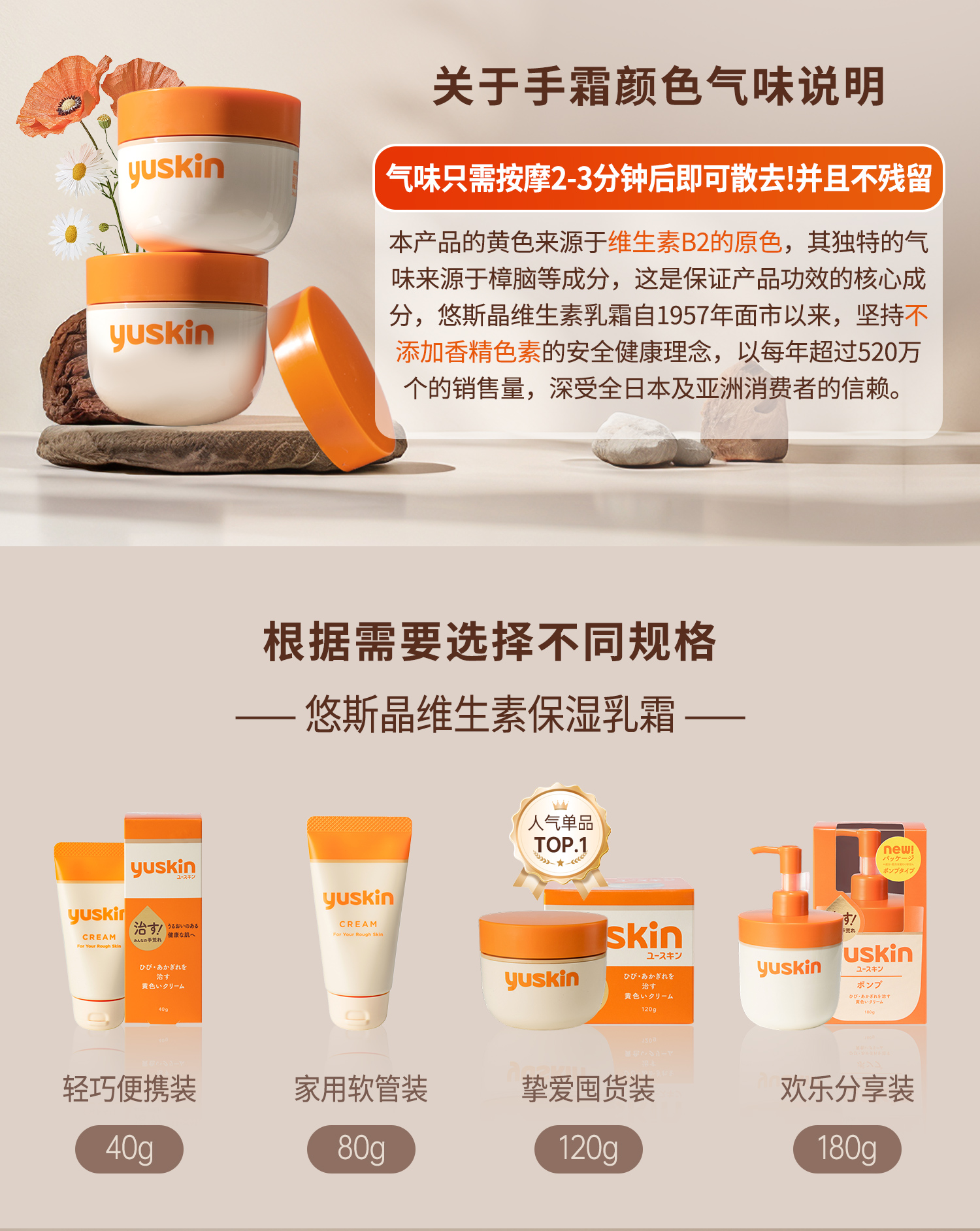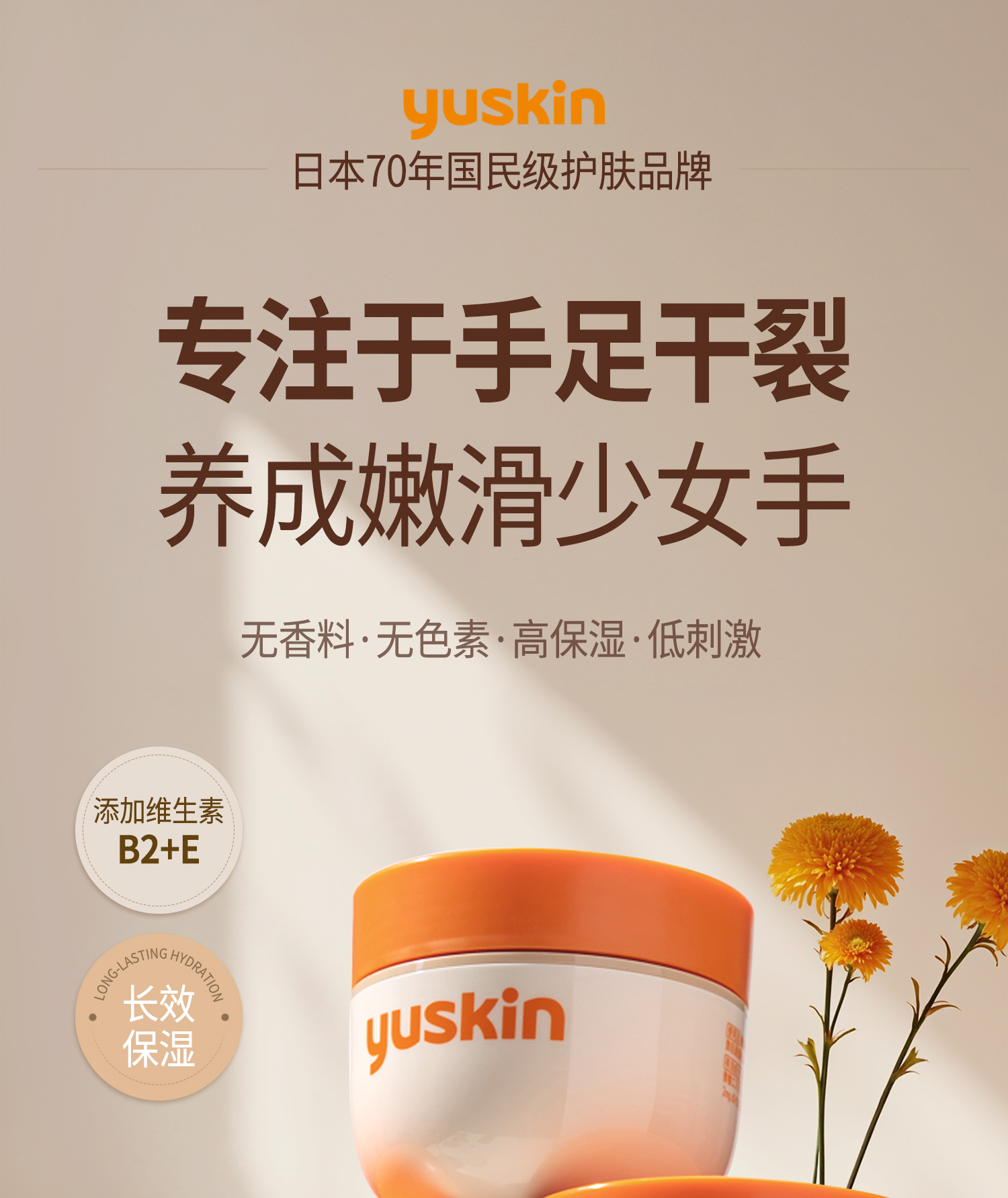 悠斯晶(yuskin)日本维生素护手霜滋润保湿足部干裂修护膏脚后跟干裂膏足部防皲裂 80g/120g_YK
