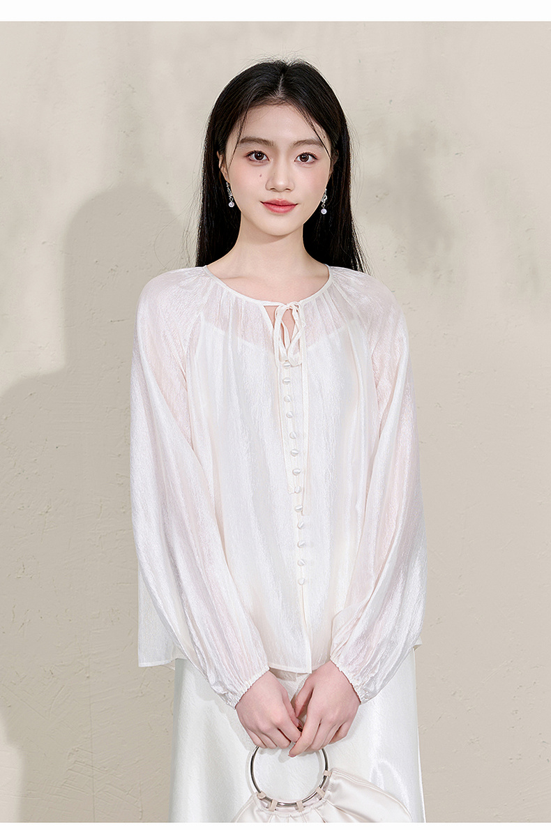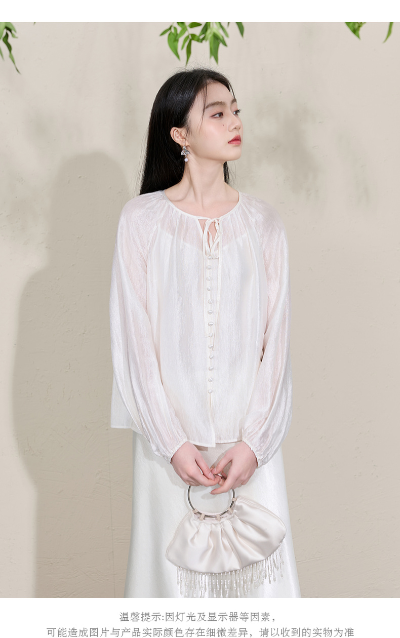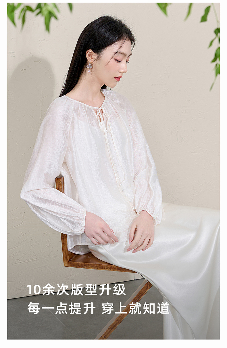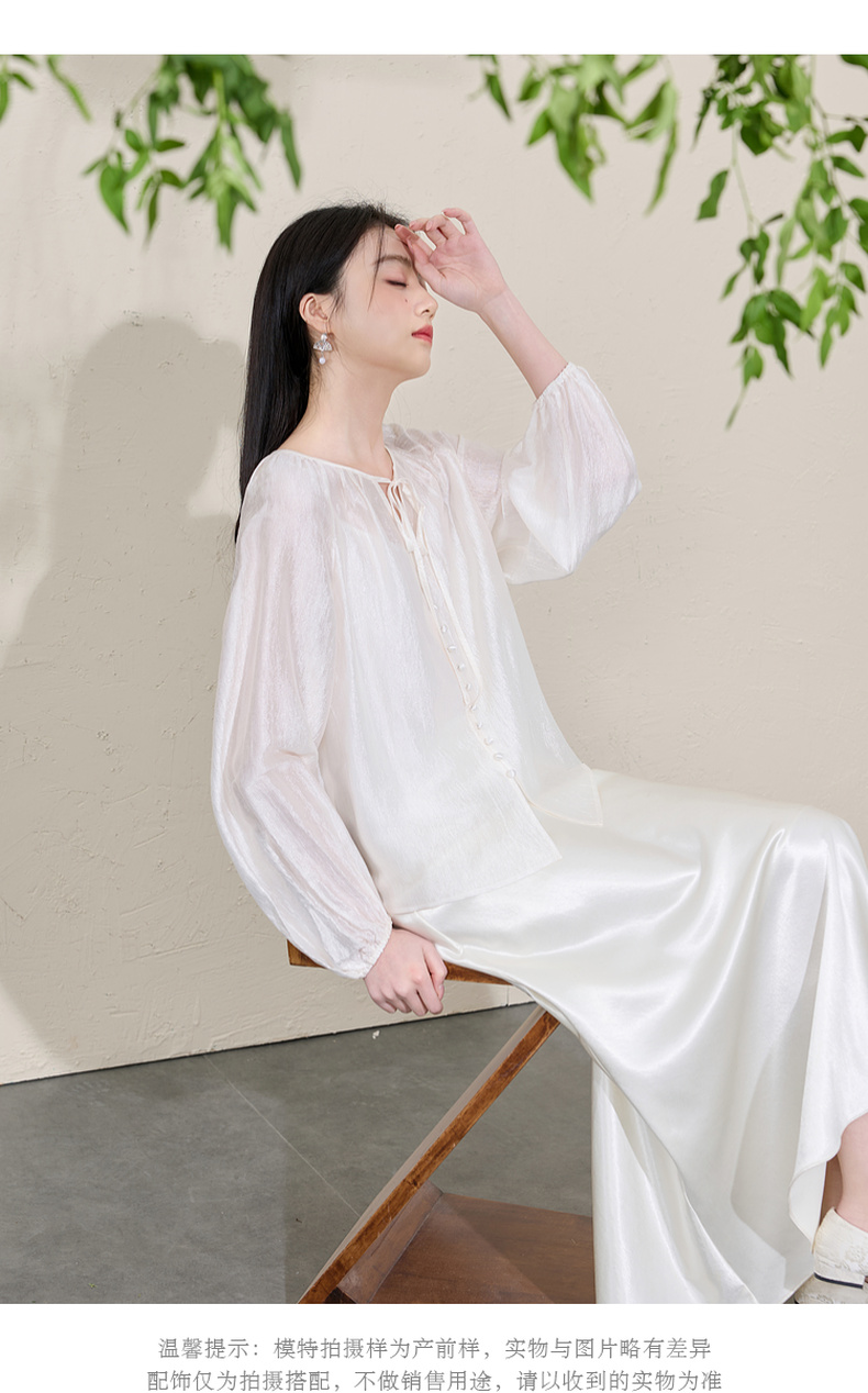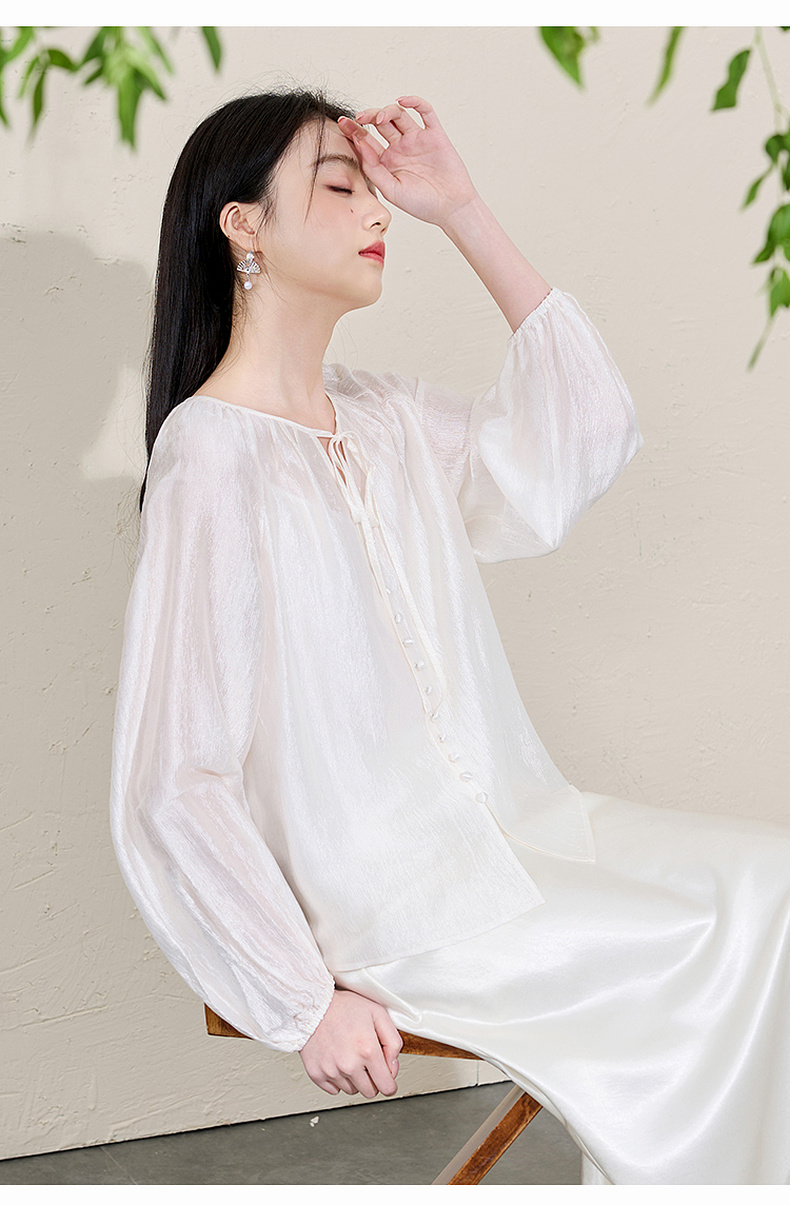 三彩【清风明月】2026春季新款新中式醋酸小衫系带宽松上衣C