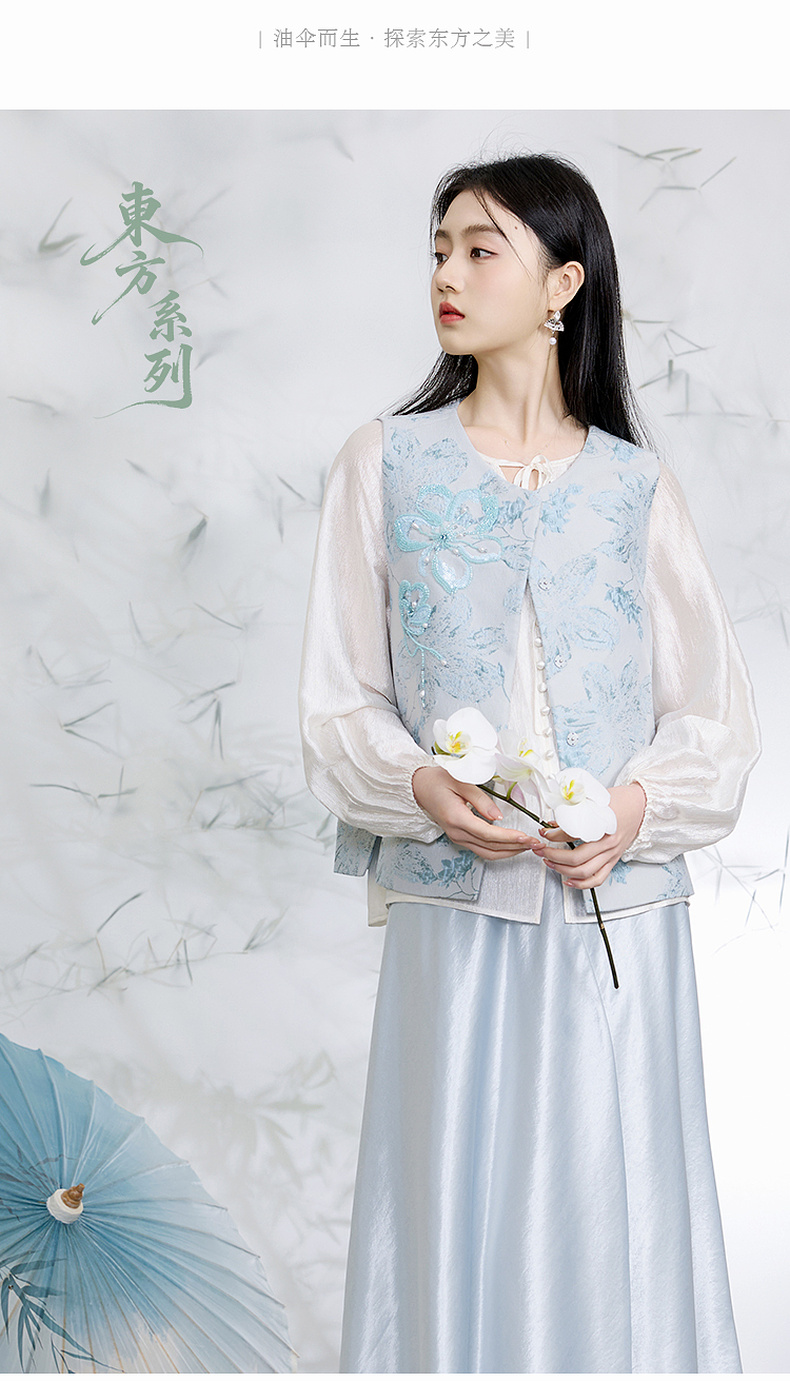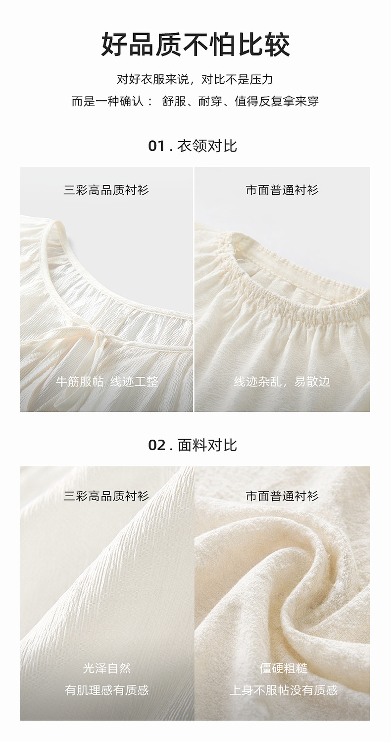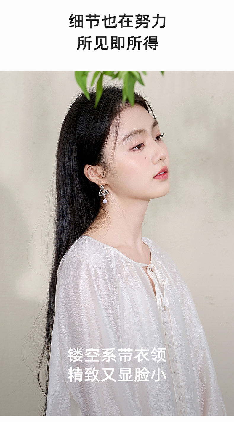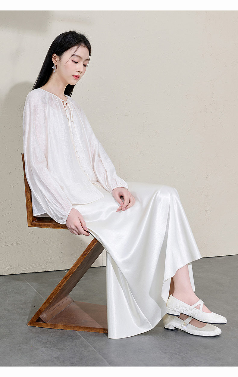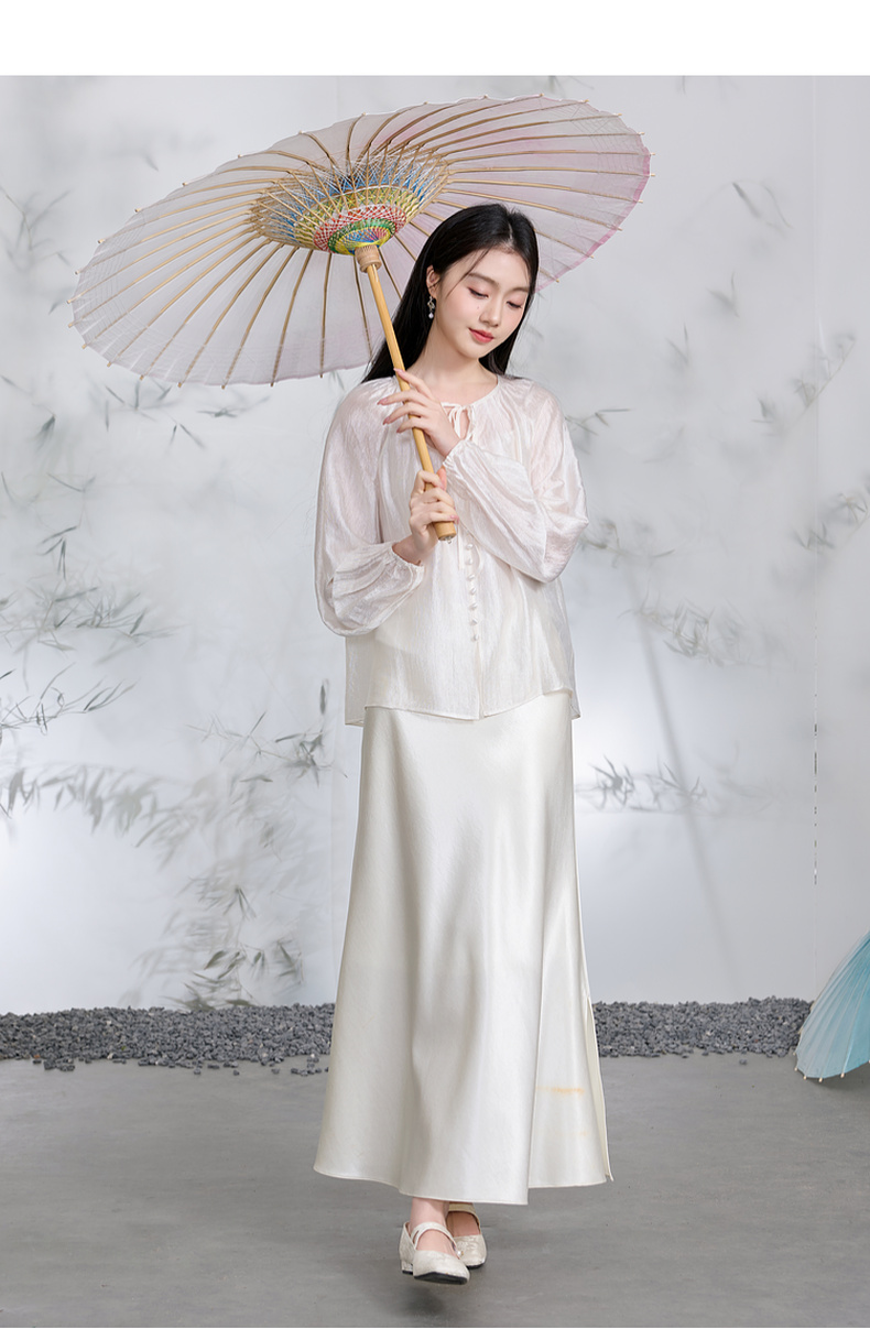 三彩【清风明月】2026春季新款新中式醋酸小衫系带宽松上衣C