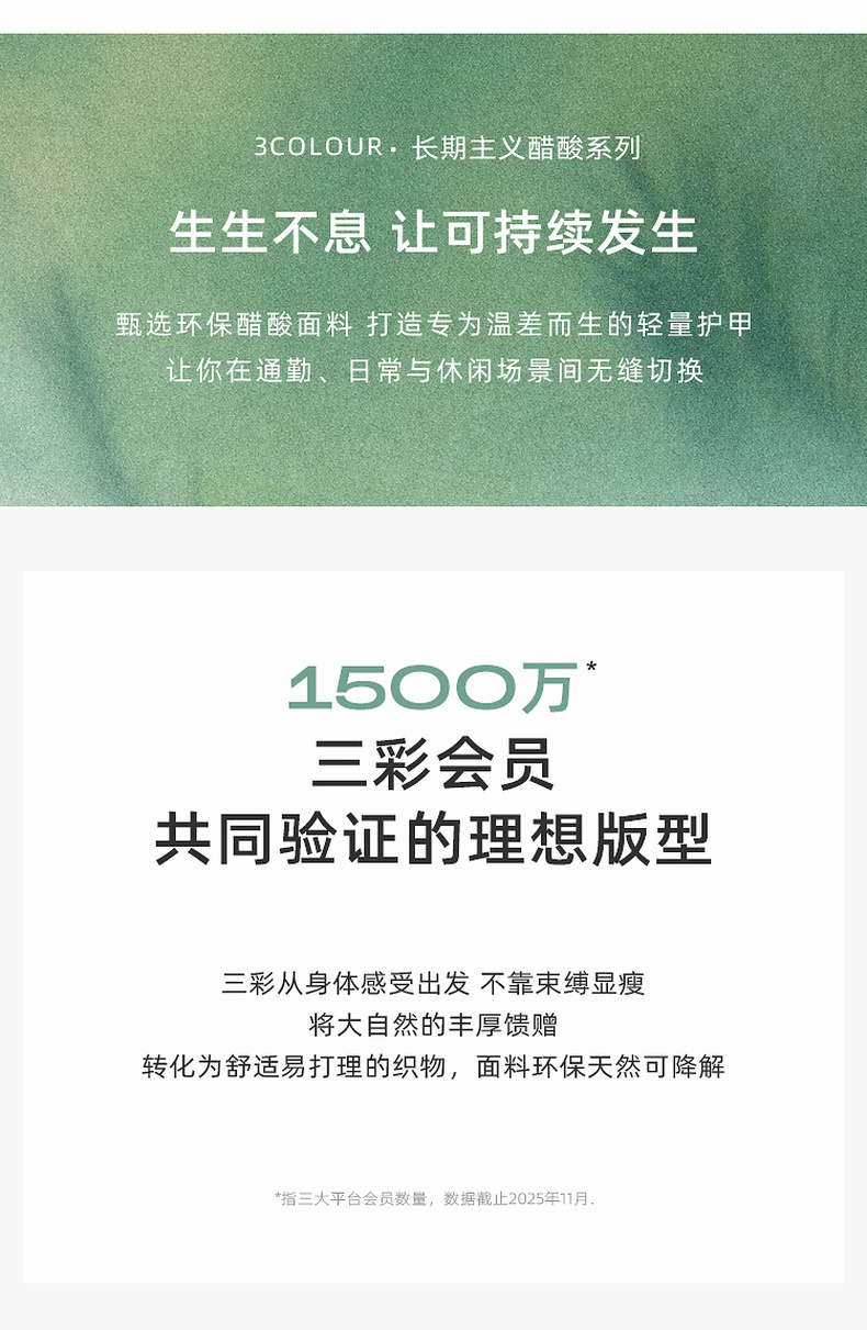 - 3COLOUR,一直致力于探索自我与时尚审美,用穿衣哲学折射生活主张,在流动中探寻恒久。