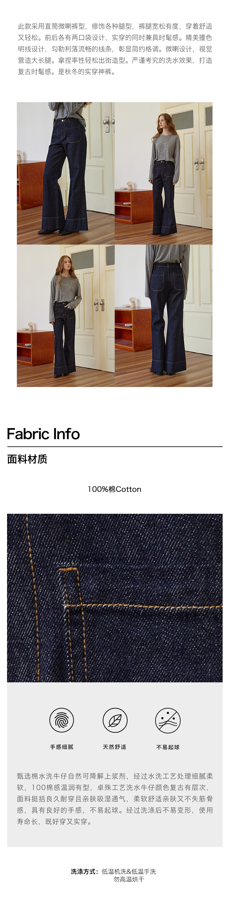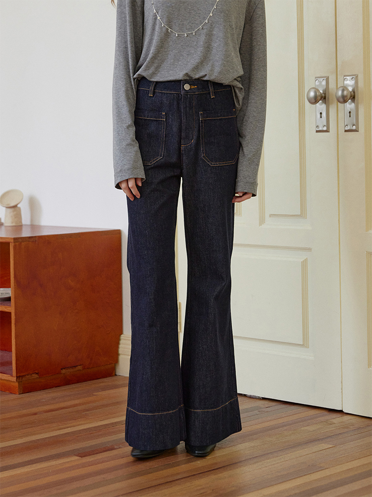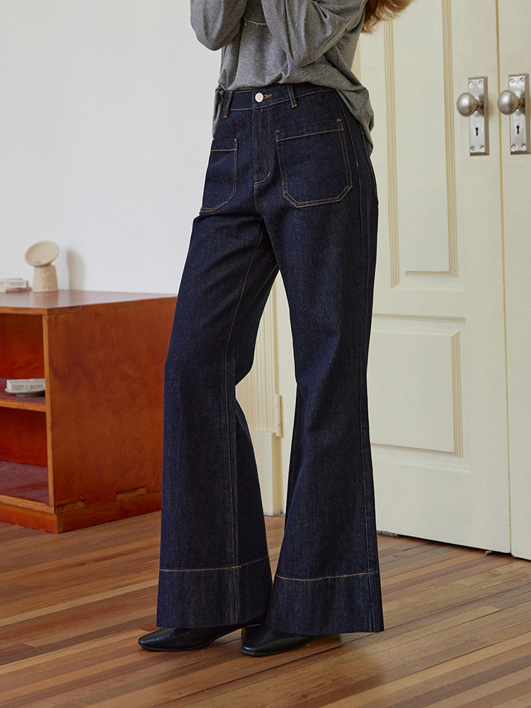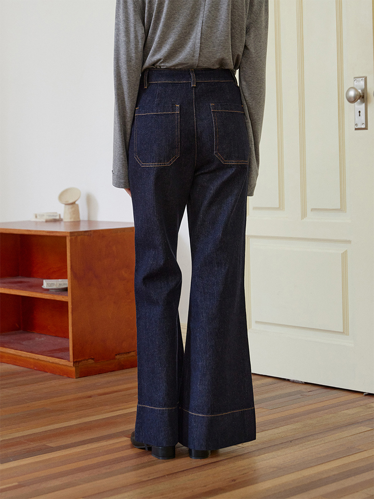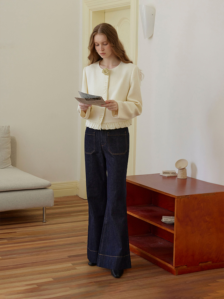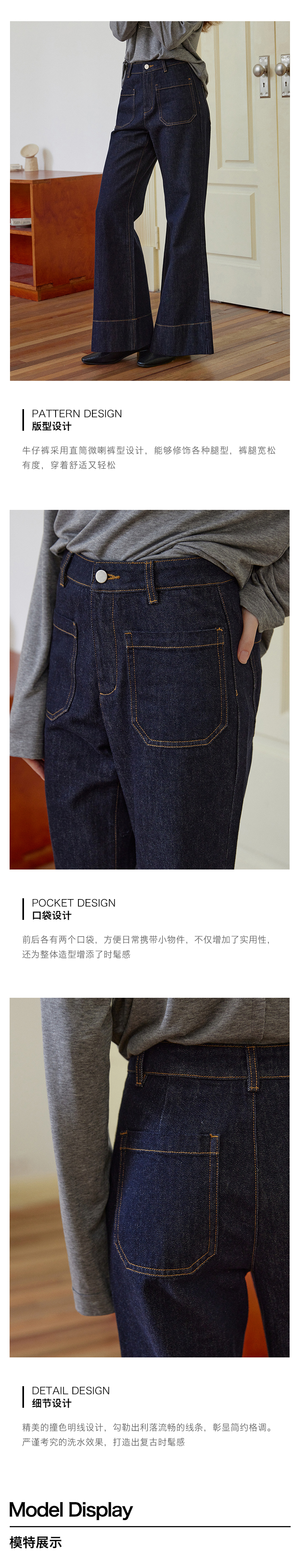 ForPoem 现货 24/FW原创设计复古高腰口袋显瘦微喇牛仔裤