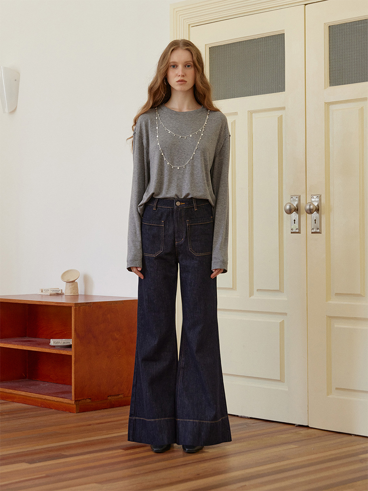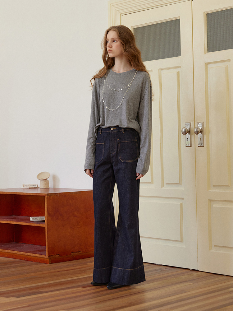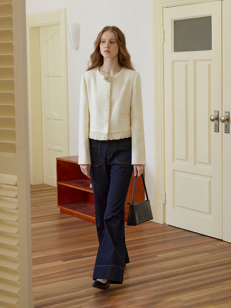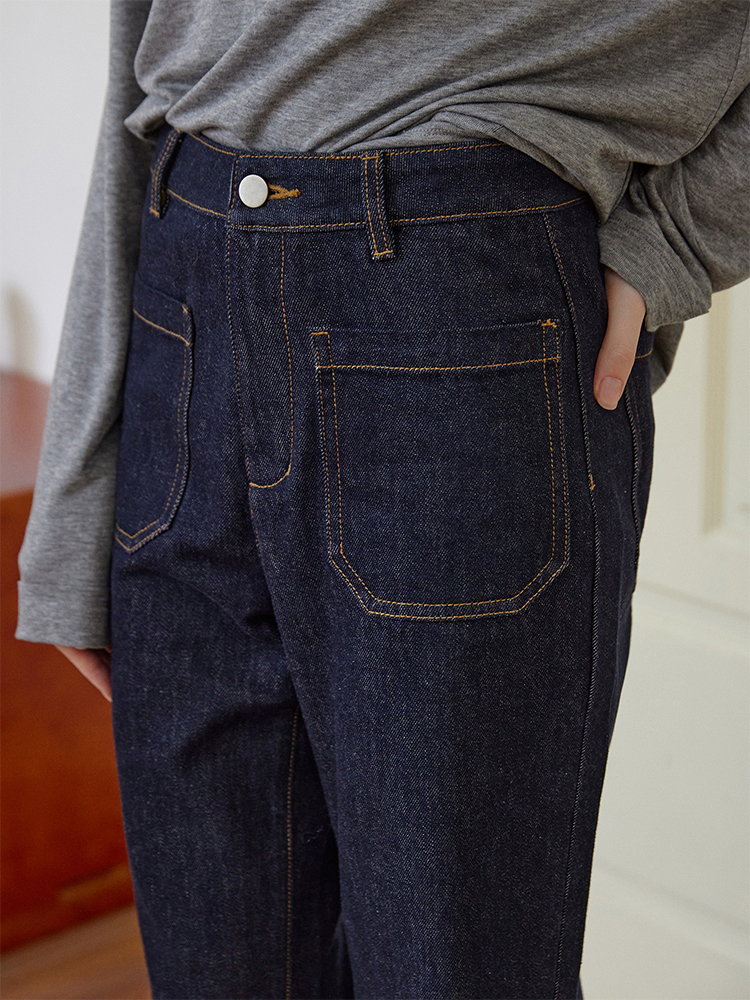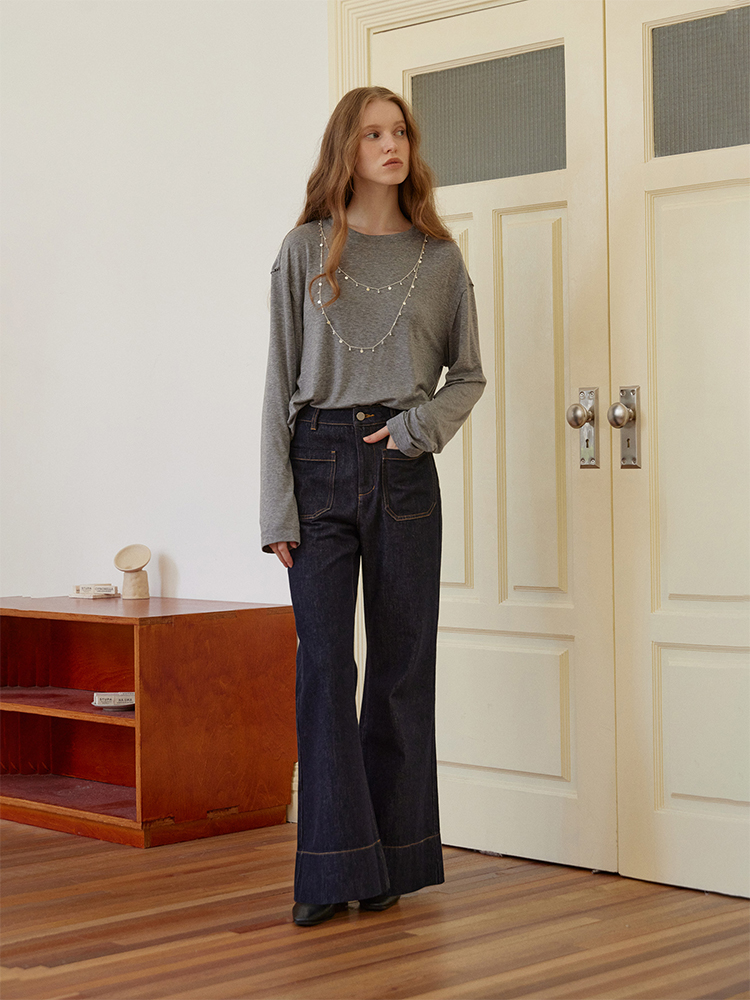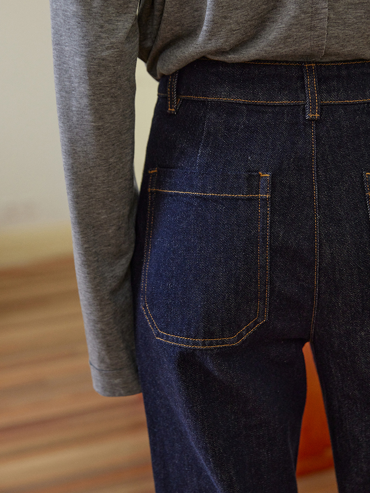 ForPoem 现货 24/FW原创设计复古高腰口袋显瘦微喇牛仔裤