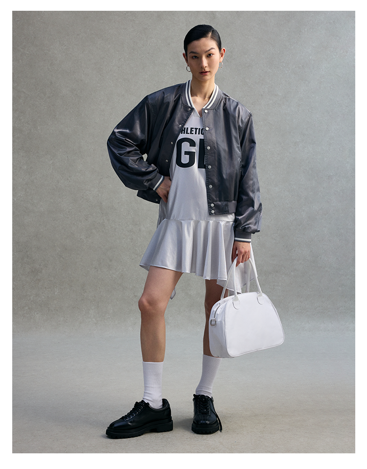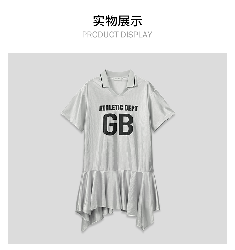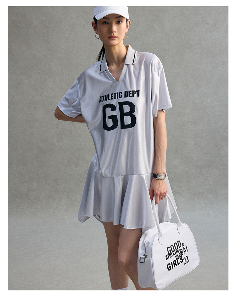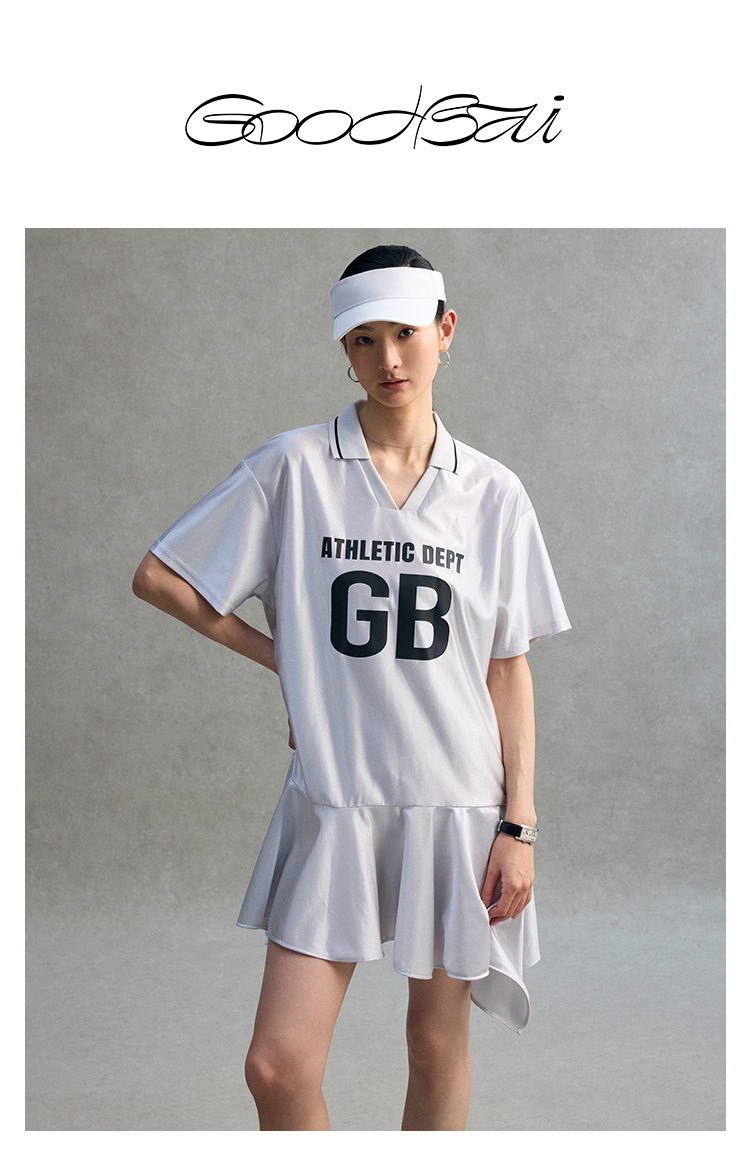 GOODBAI athletic GB logo印花翻领拼接oversize短袖不规则连衣裙