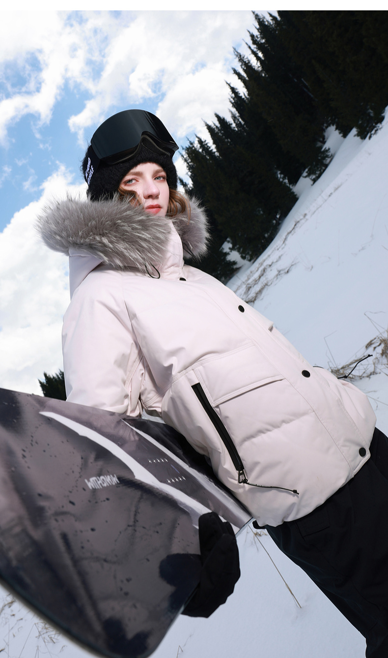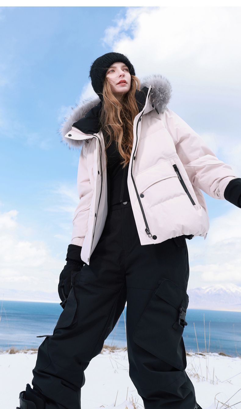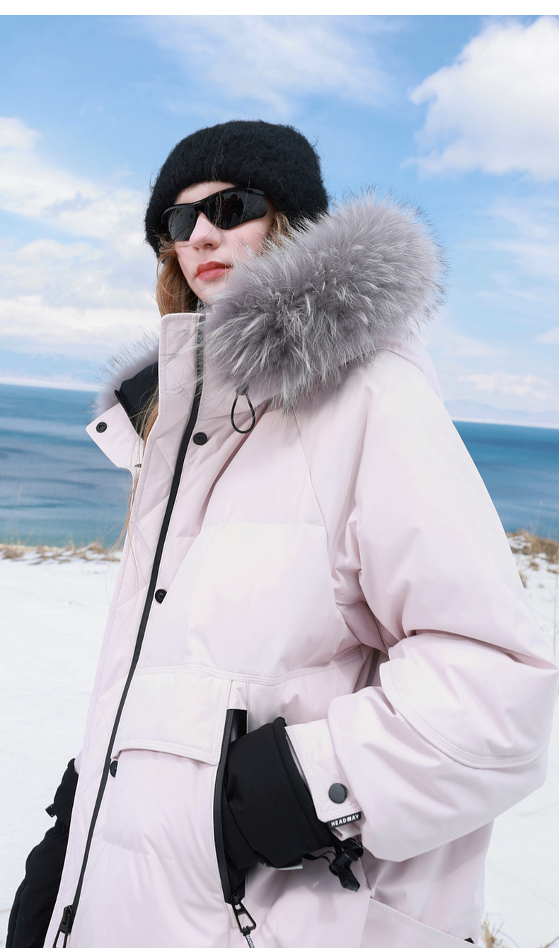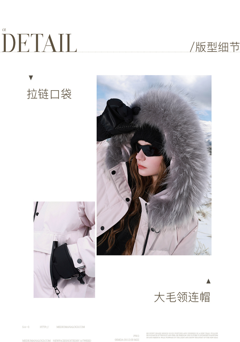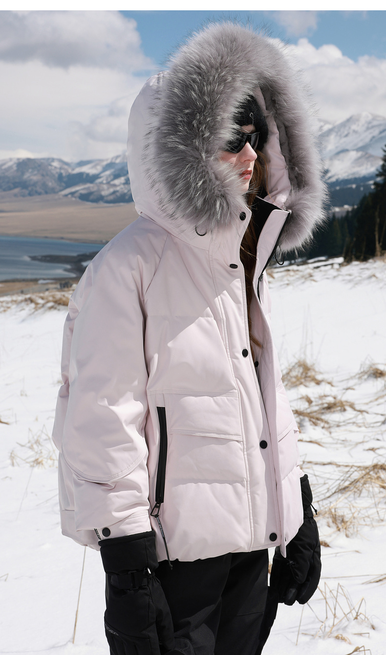 【防水+蓄热】三彩2025冬季新款90白鸭绒羽绒服大毛领外套保暖M