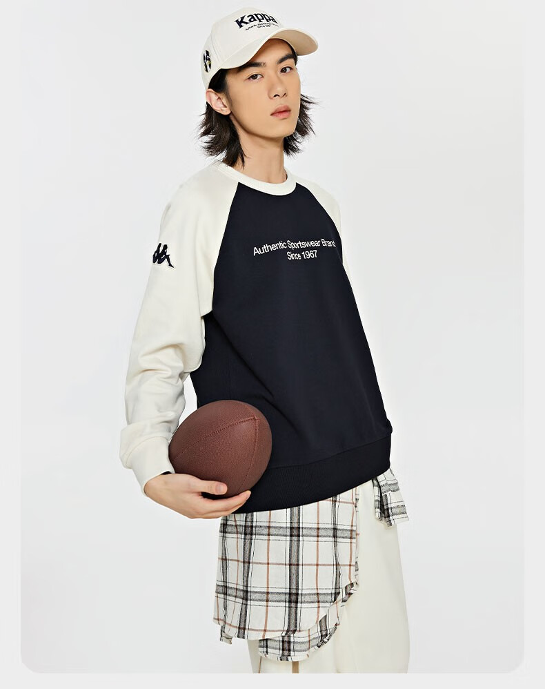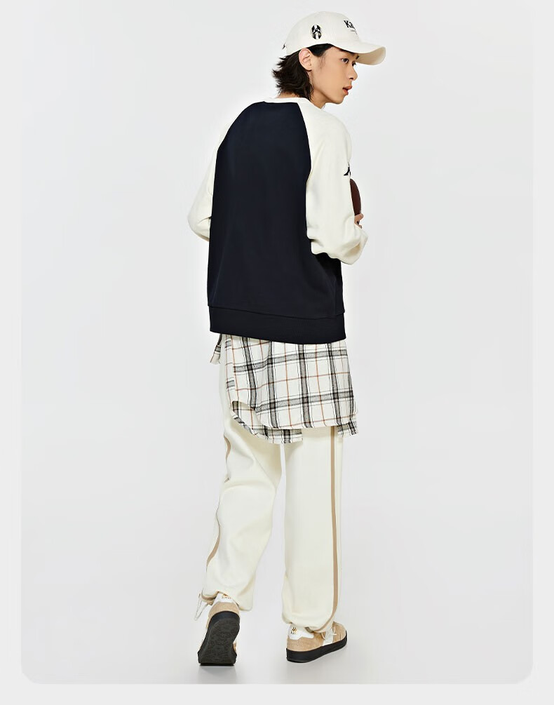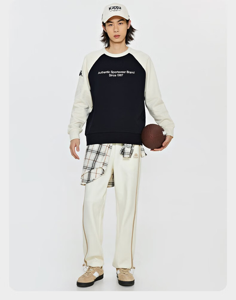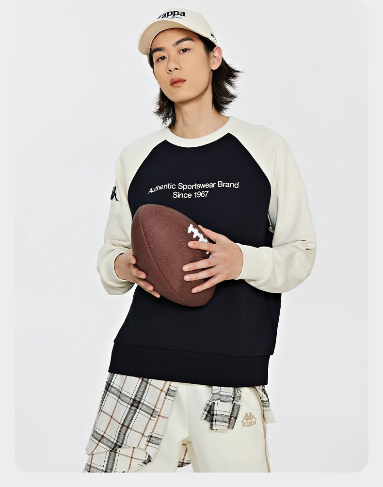 复古套头衫2024新款男女撞色运动卫衣圆领长袖K0EW2WT01