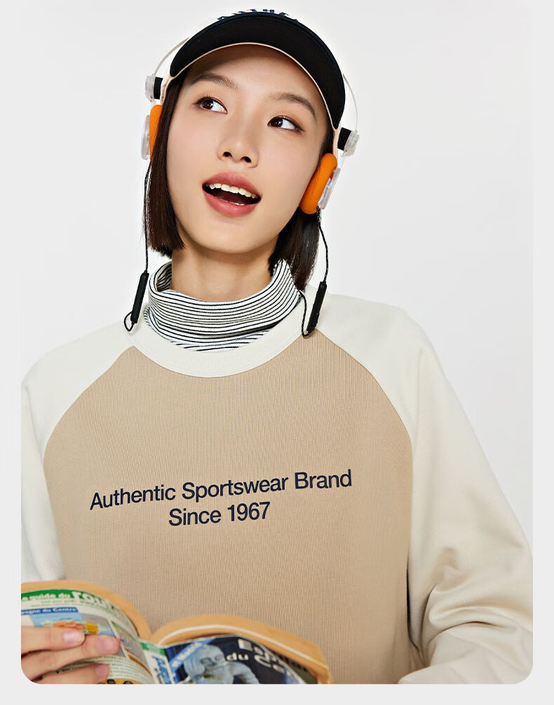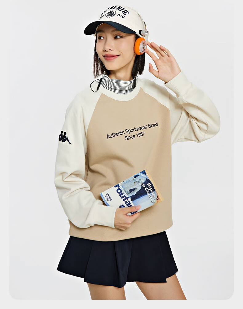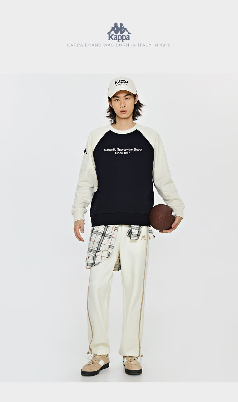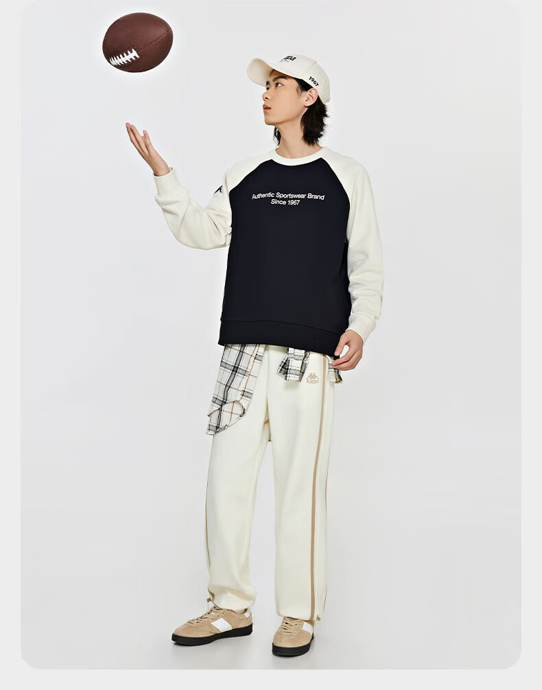复古套头衫2024新款男女撞色运动卫衣圆领长袖K0EW2WT01