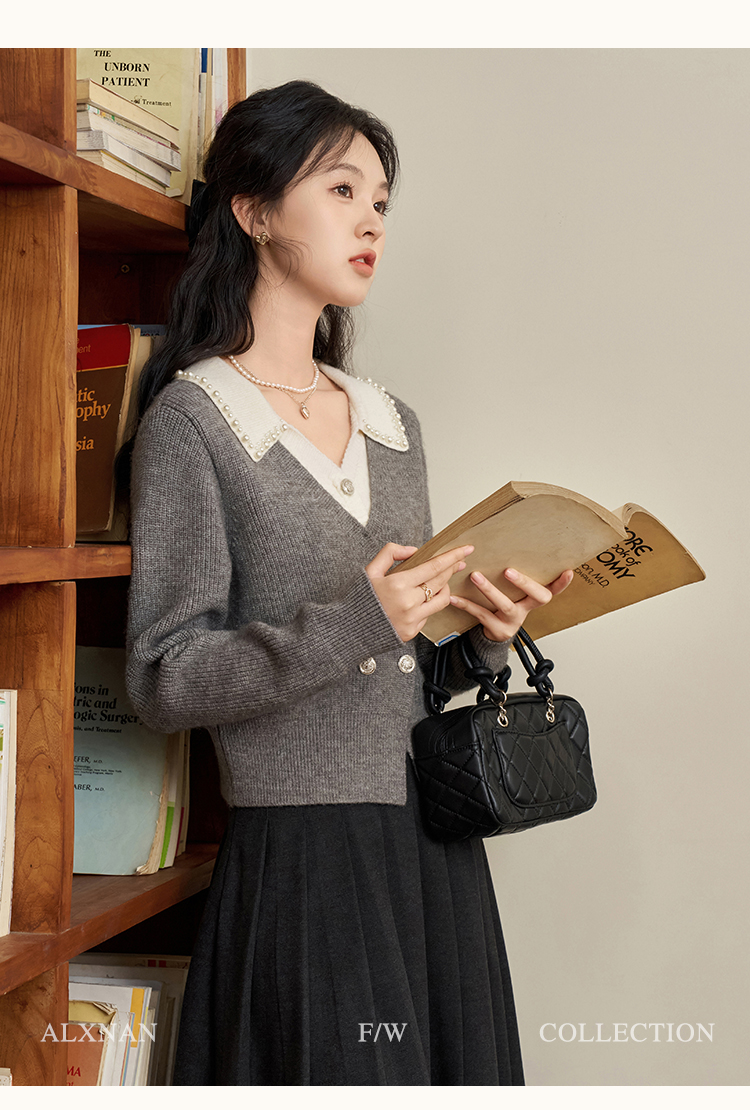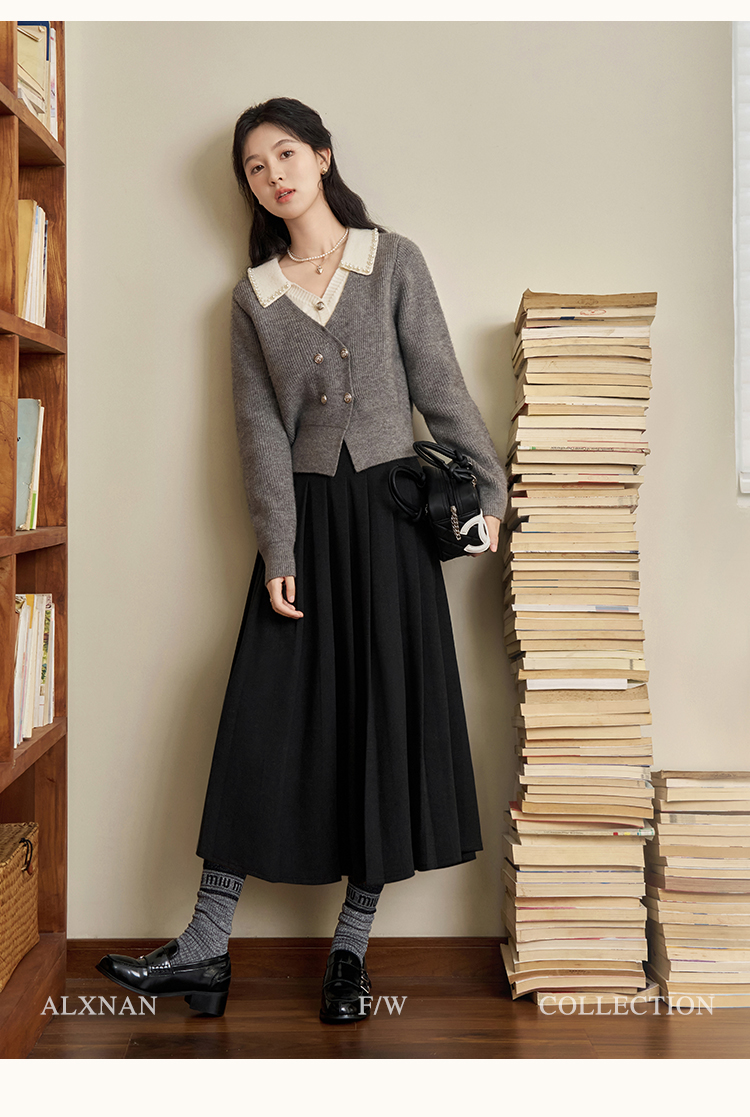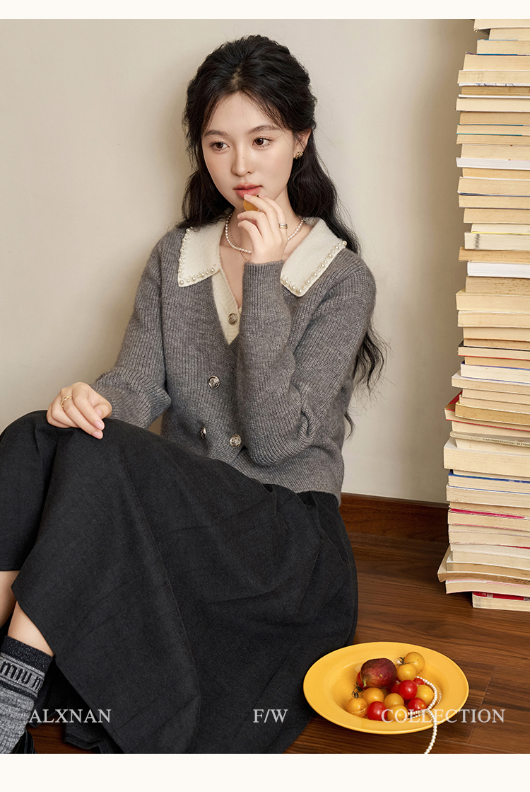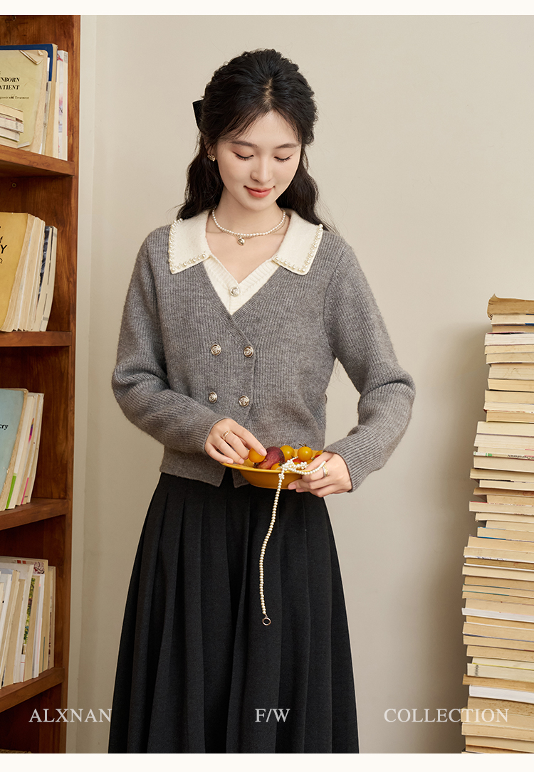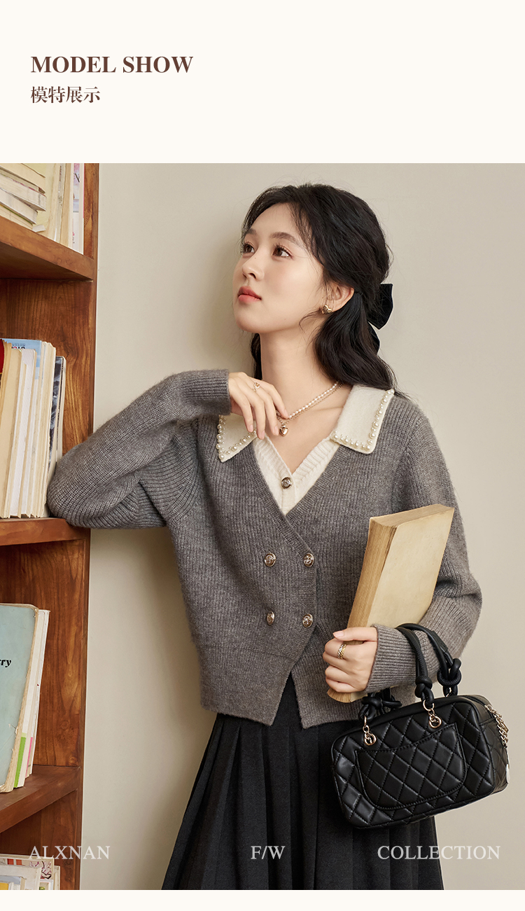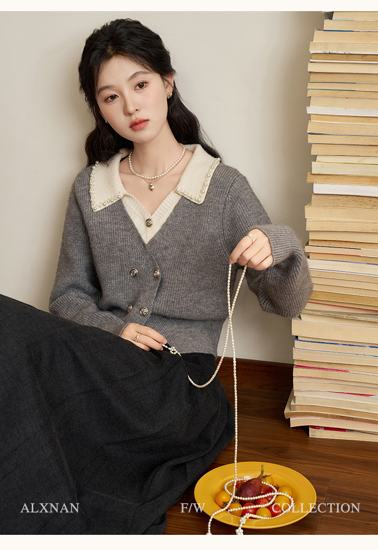 鹿向南「甜系珍妮弗」灰色假两件毛衣女2025秋冬慵懒风针织衫上衣