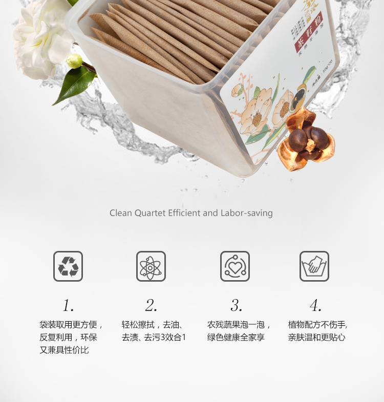【茶一派】天然山茶籽粉 8g*30袋/盒 盒装 植物研磨家用洗水果蔬菜餐具洗碗机可用