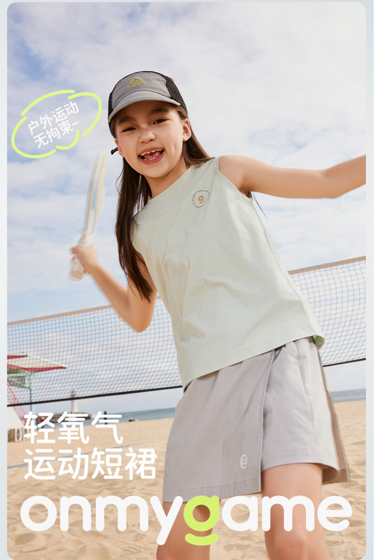 onmygame女童半身裙儿童短裙夏季薄款透气2024新款运动工装裙子