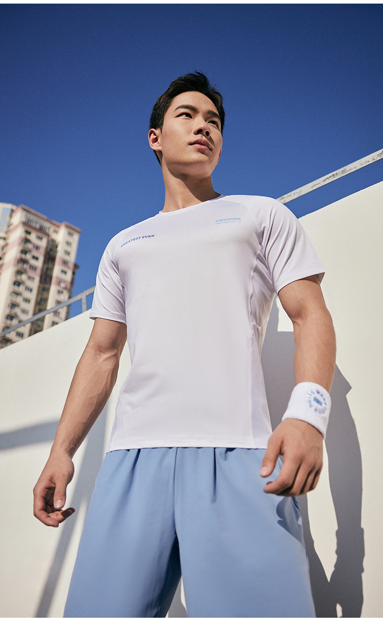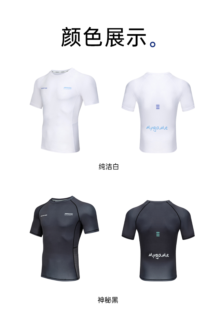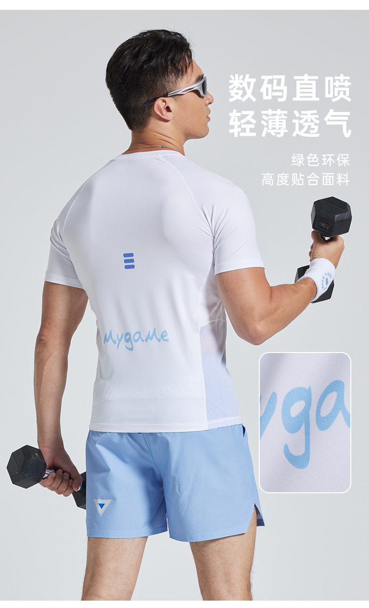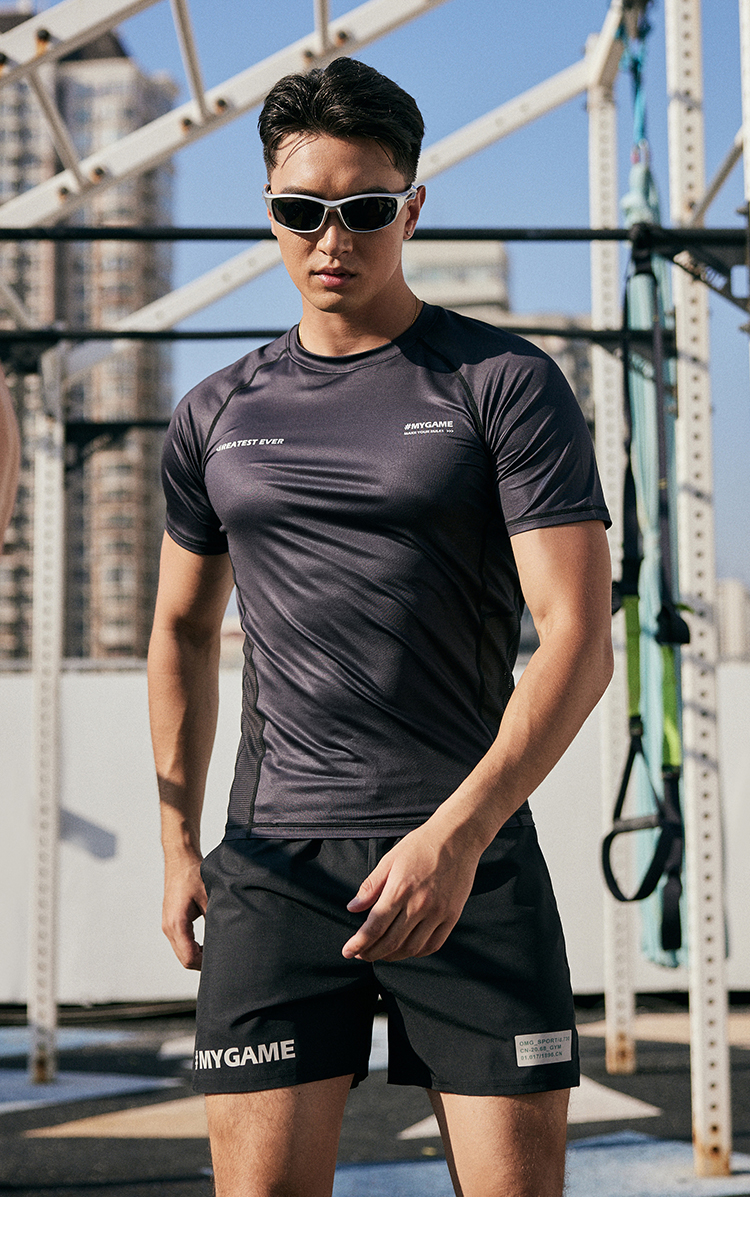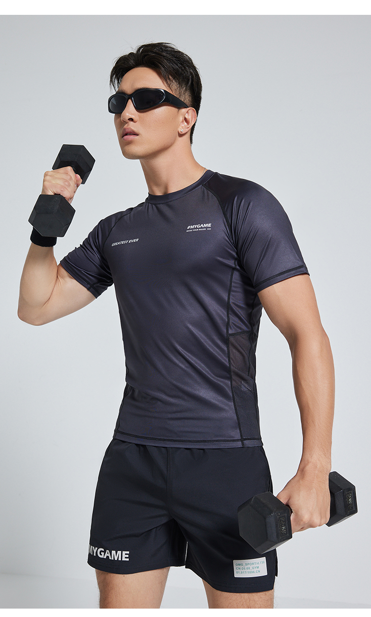 OMG运动 健身服男夏季紧身短袖高弹力光泽网眼拼接透气轻薄款训练J-FMJSY2643