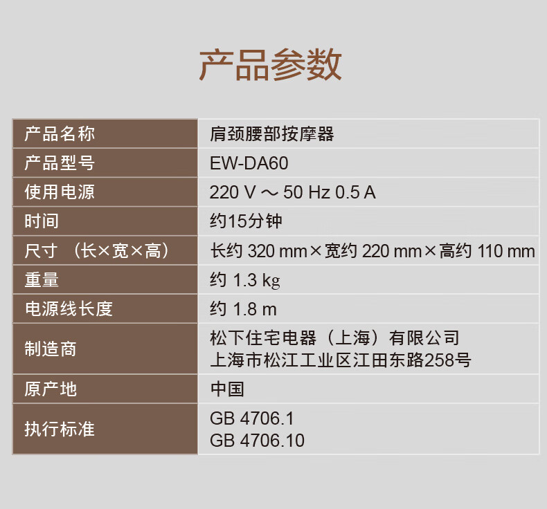 松下(Panasonic) 肩颈腰部按摩器EW-DA60