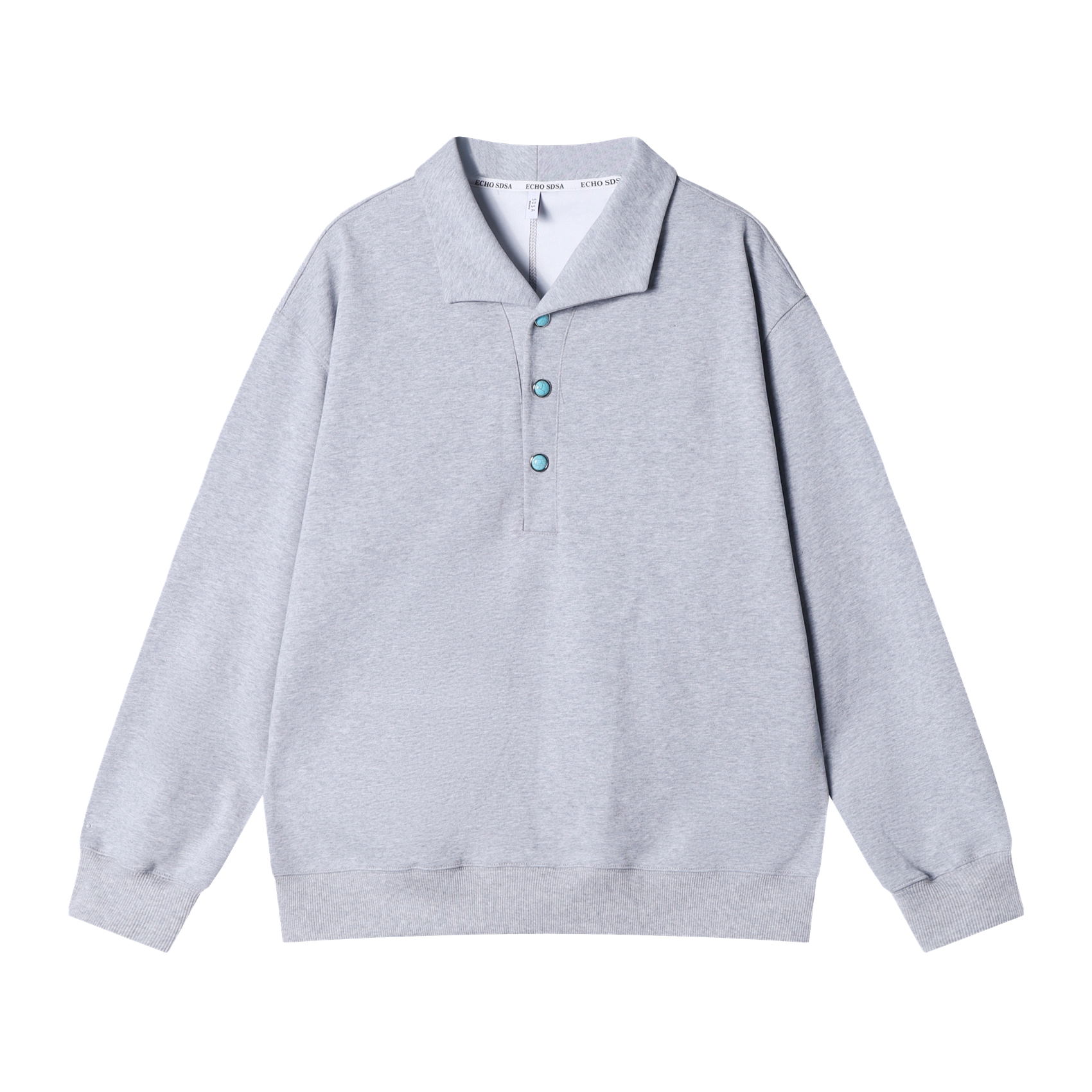 WY1000秋冬季新款时尚个性纯色半纽扣翻领卫衣休闲简约宽松百搭套头上衣