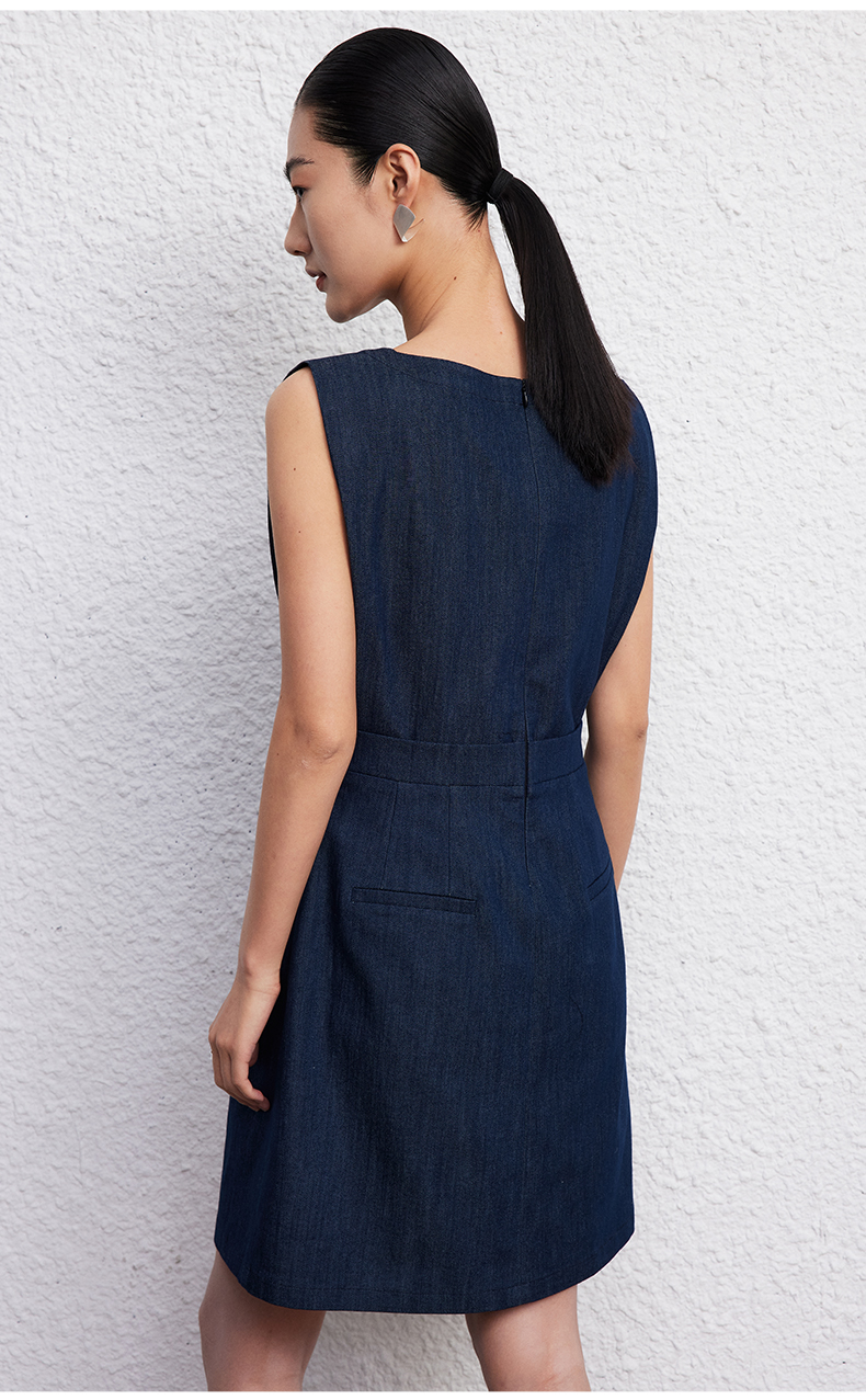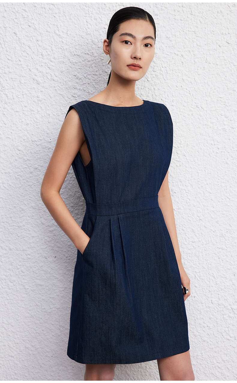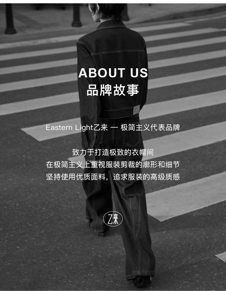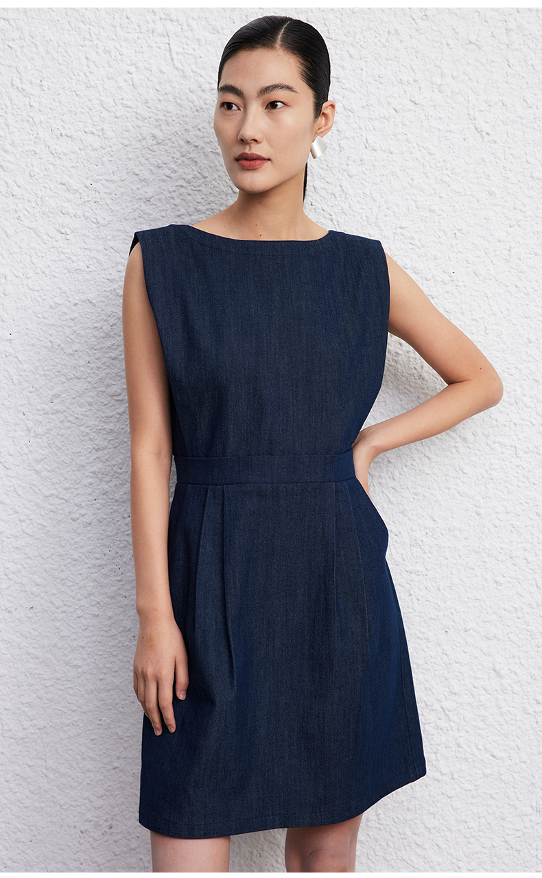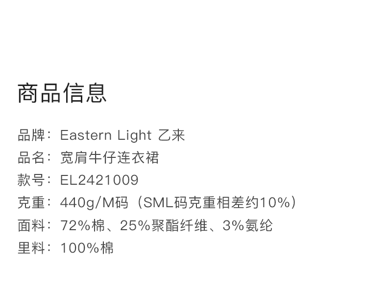 Eastern Light乙来 宽肩飞边牛仔连衣裙简约纯色收腰裙子
