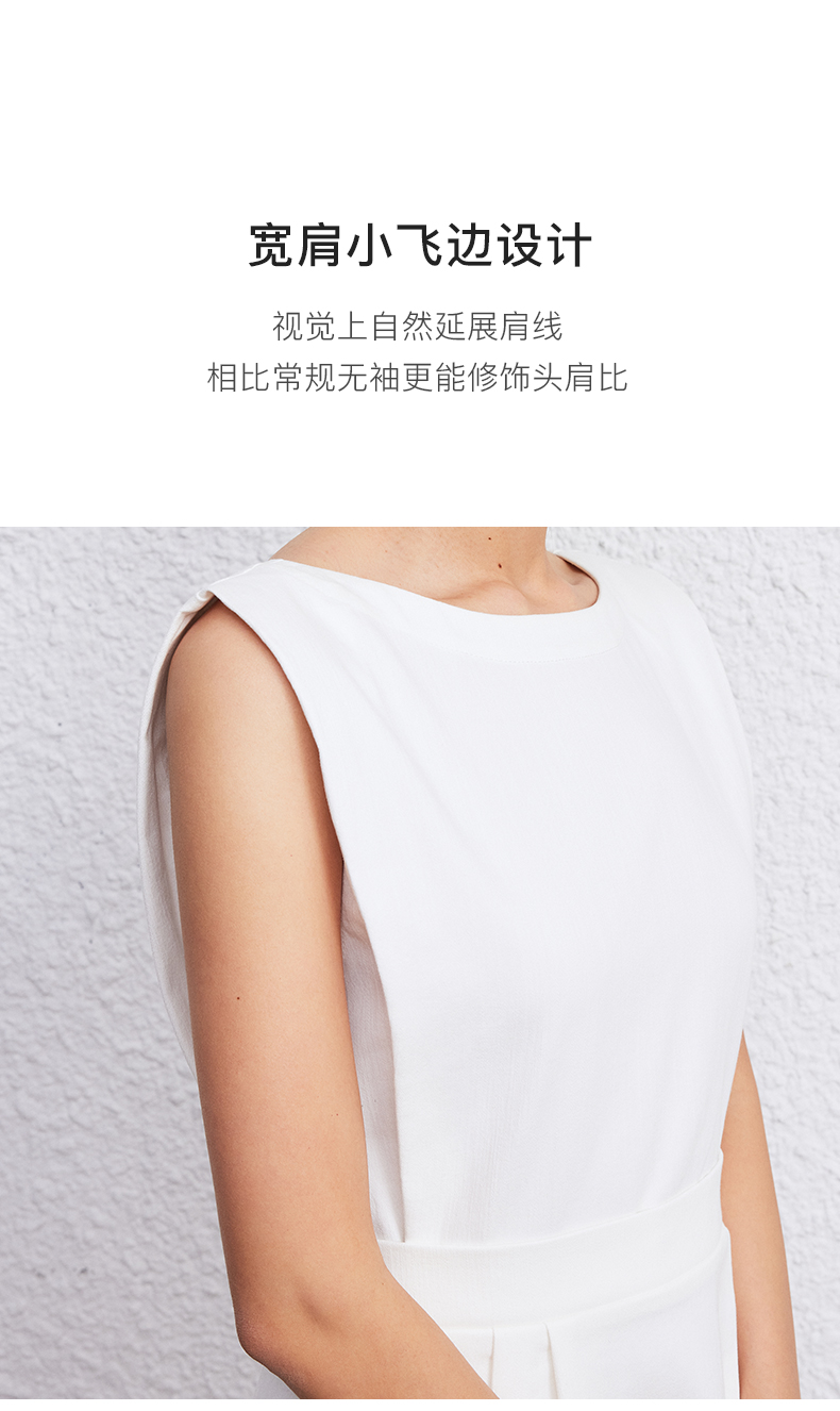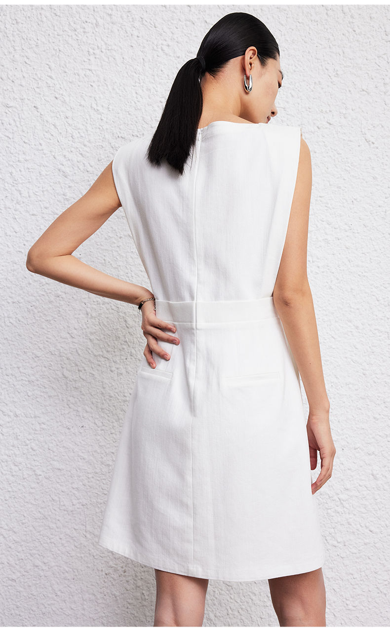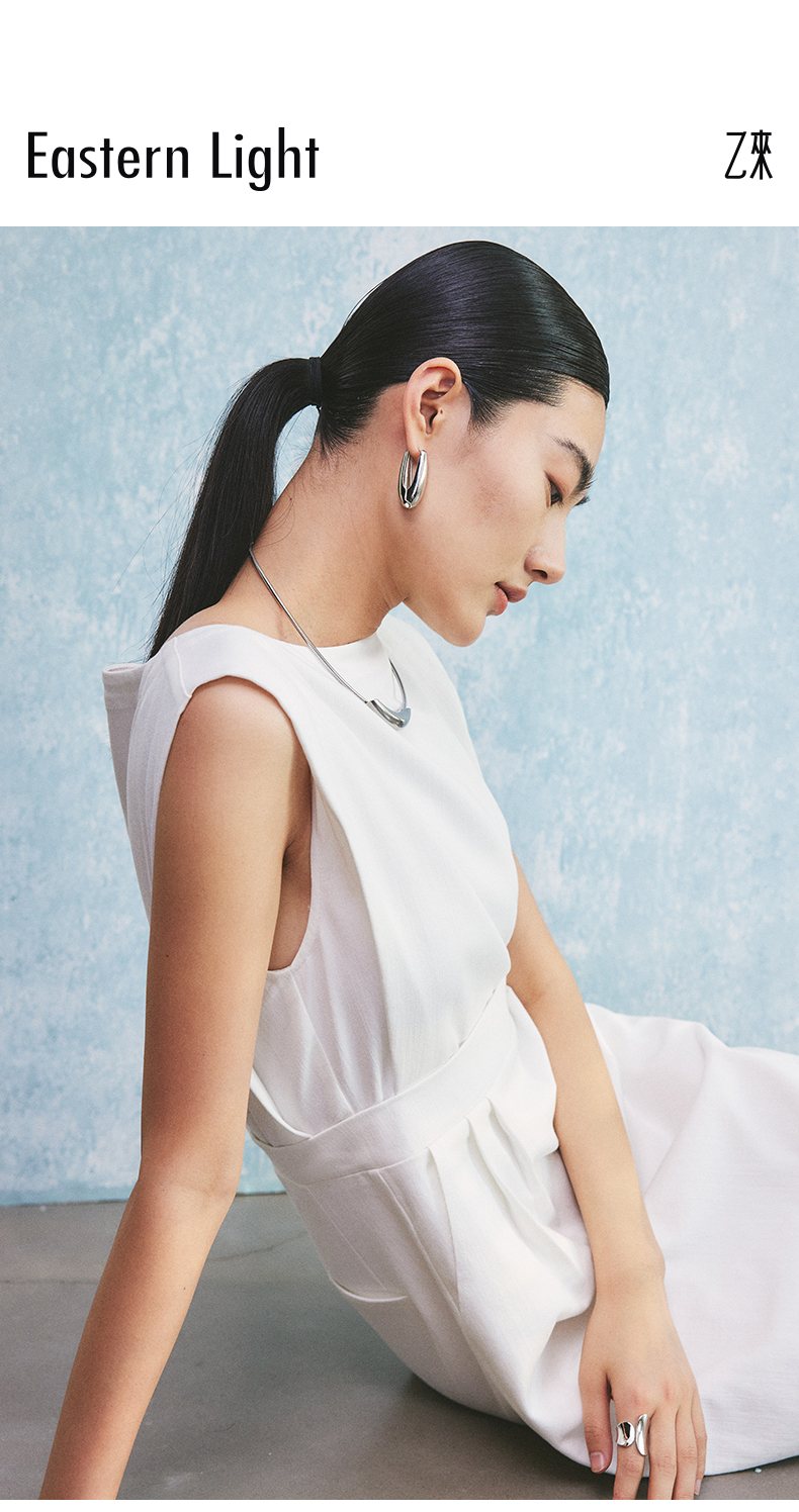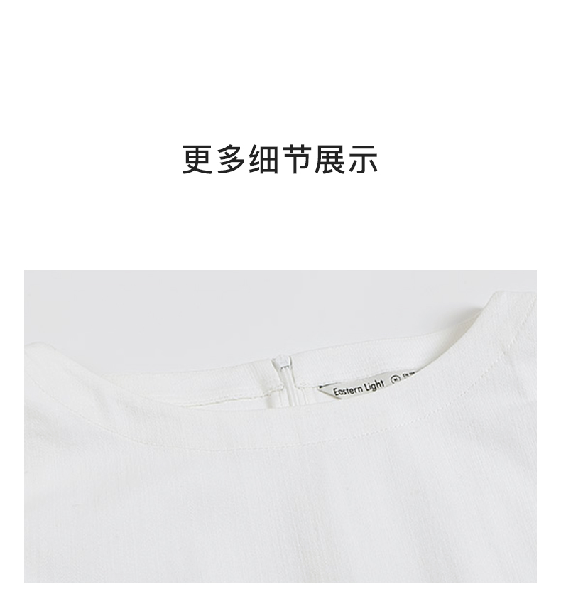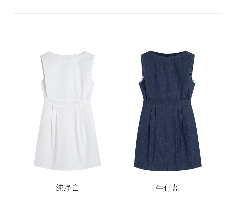 Eastern Light乙来 宽肩飞边牛仔连衣裙简约纯色收腰裙子