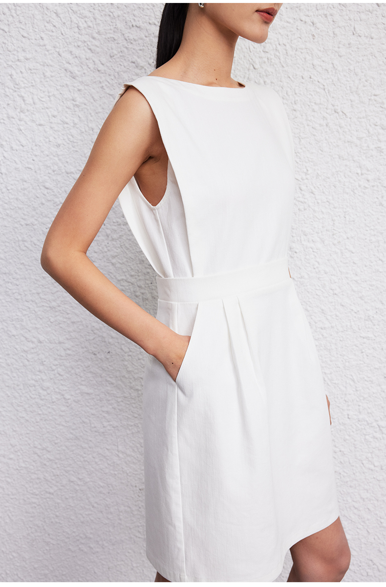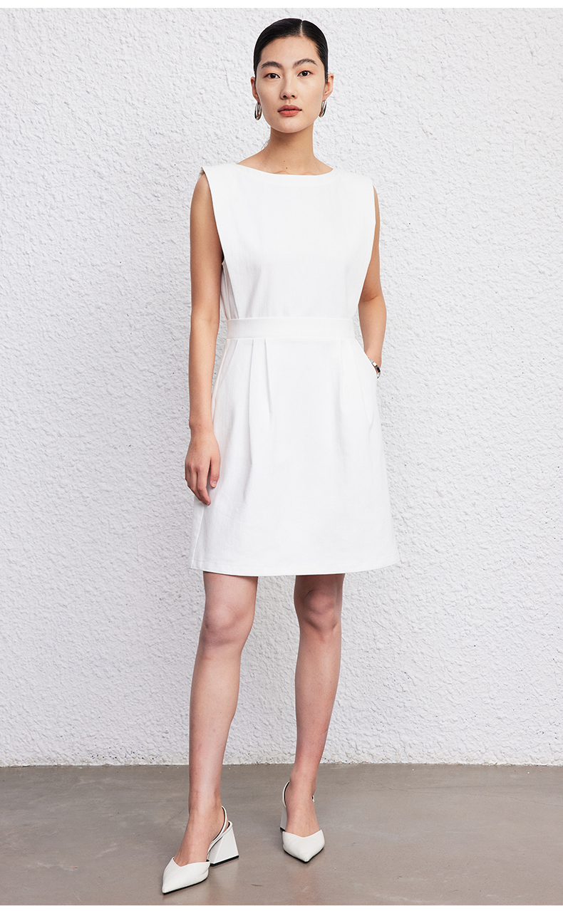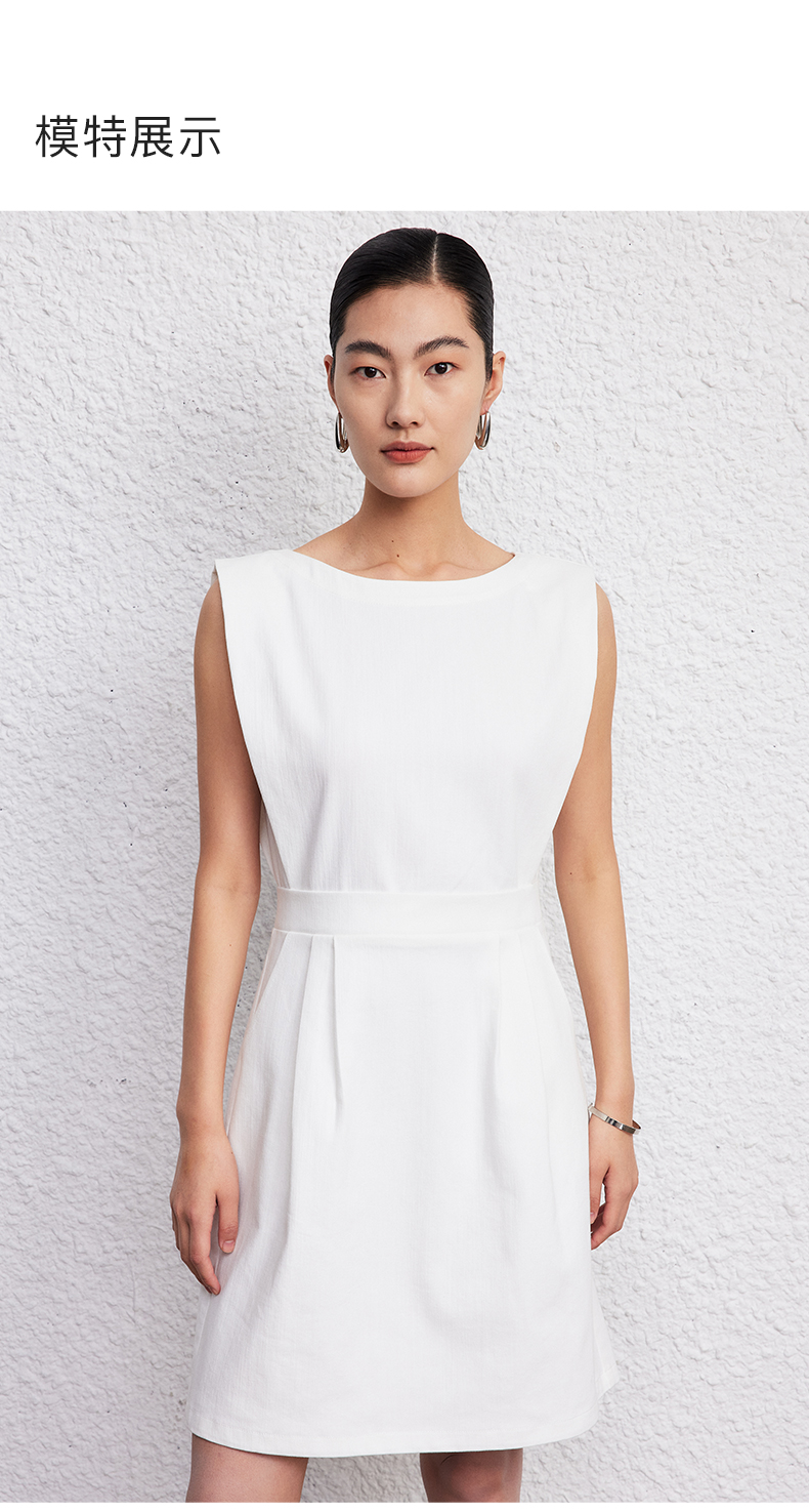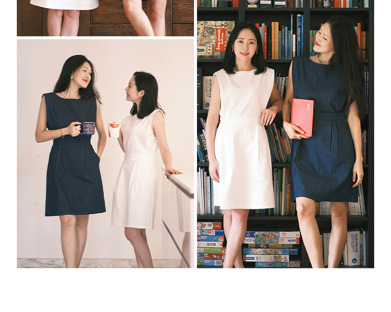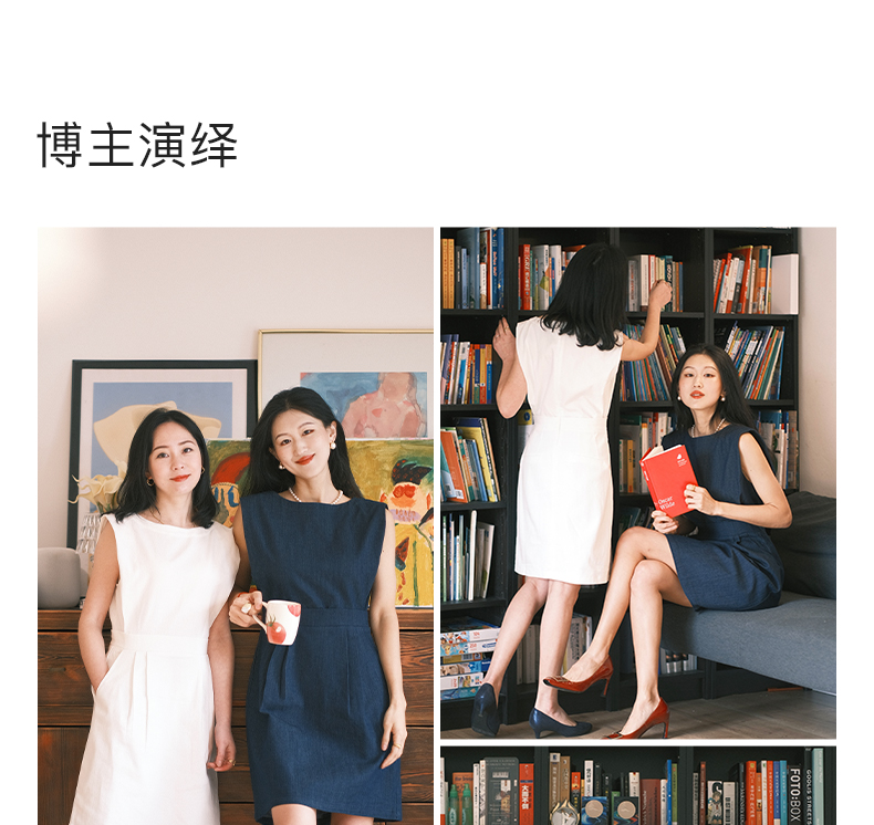 Eastern Light乙来 宽肩飞边牛仔连衣裙简约纯色收腰裙子