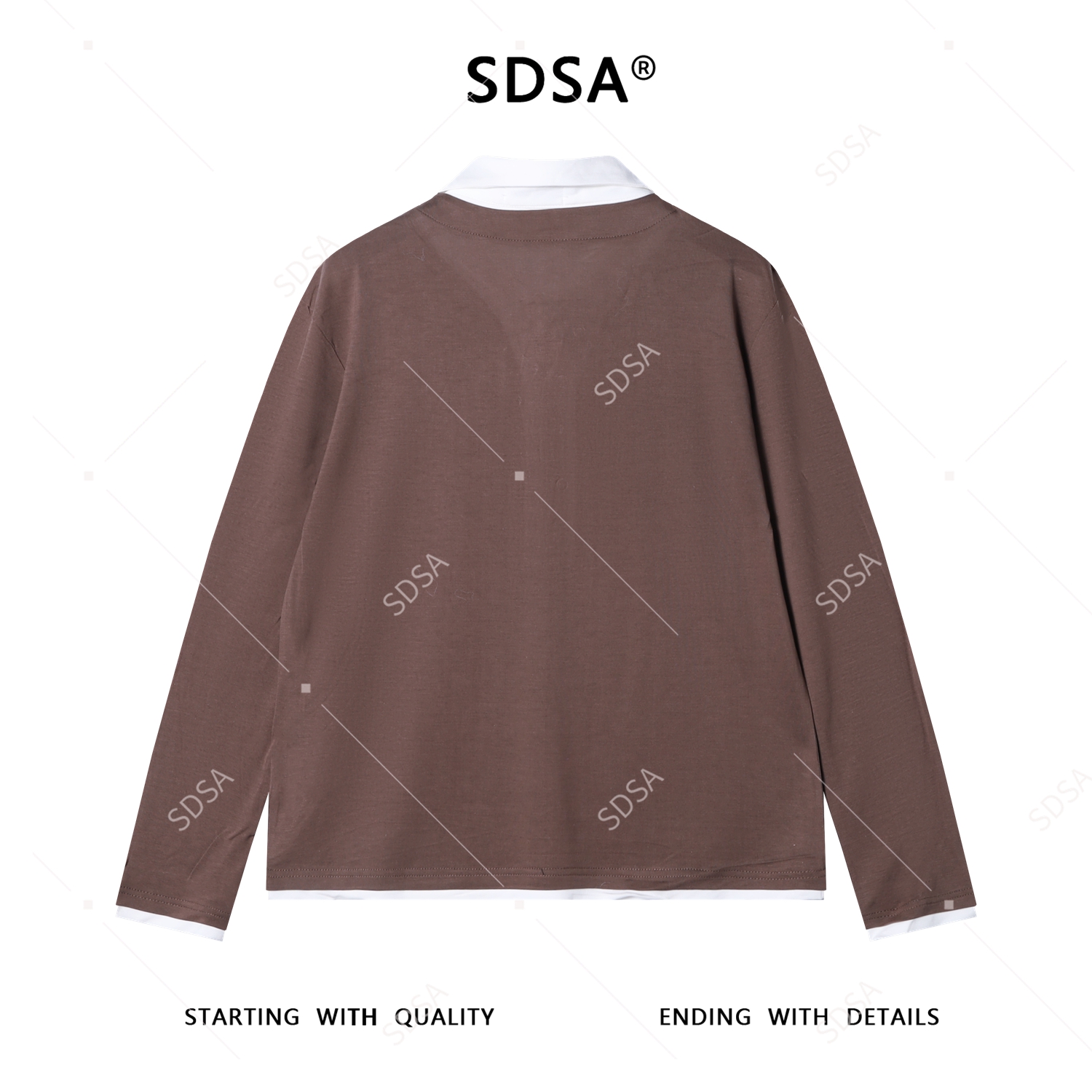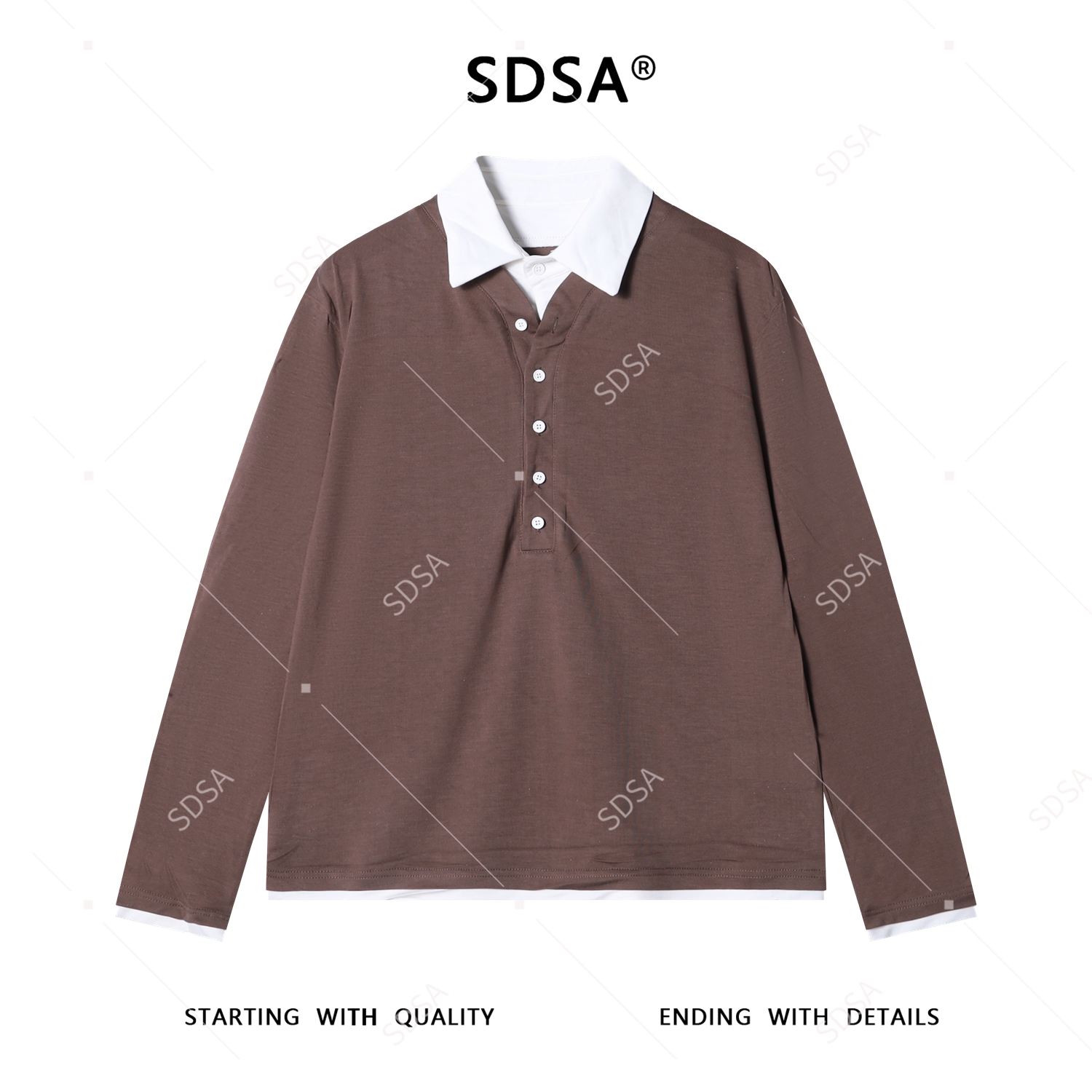 T25285SDSA男士秋冬新款痞帅男装撞色拼接翻领假两件T恤百搭时尚上衣