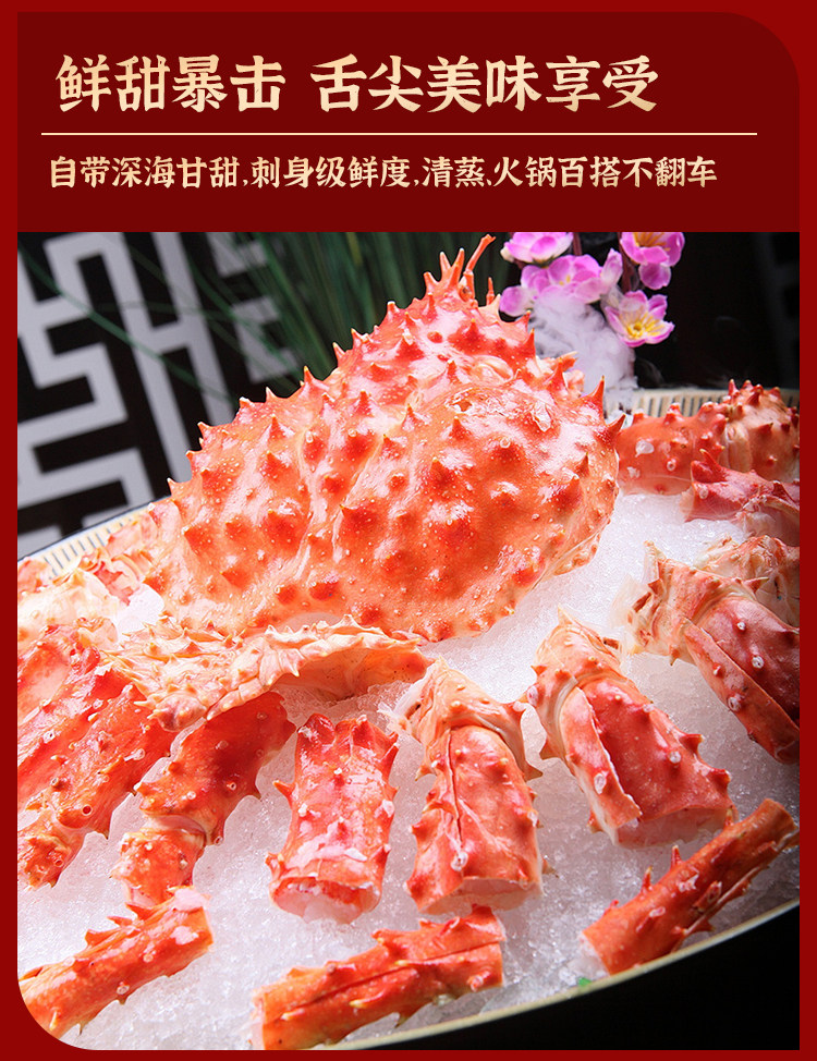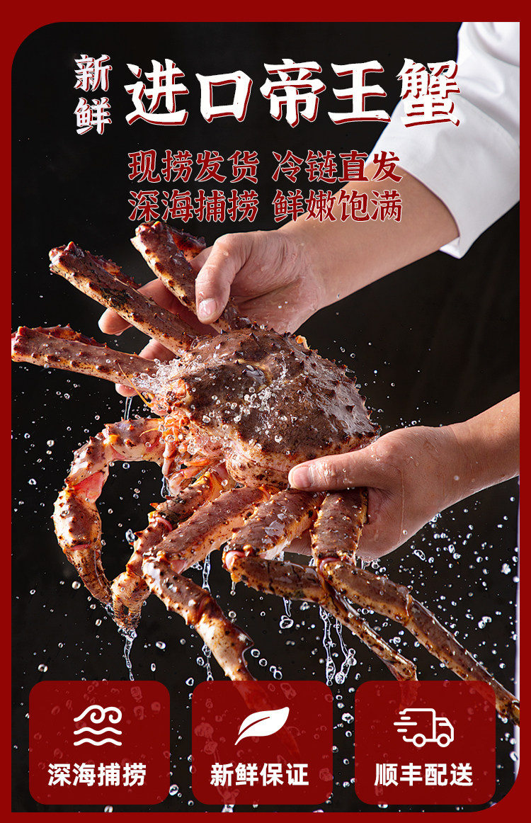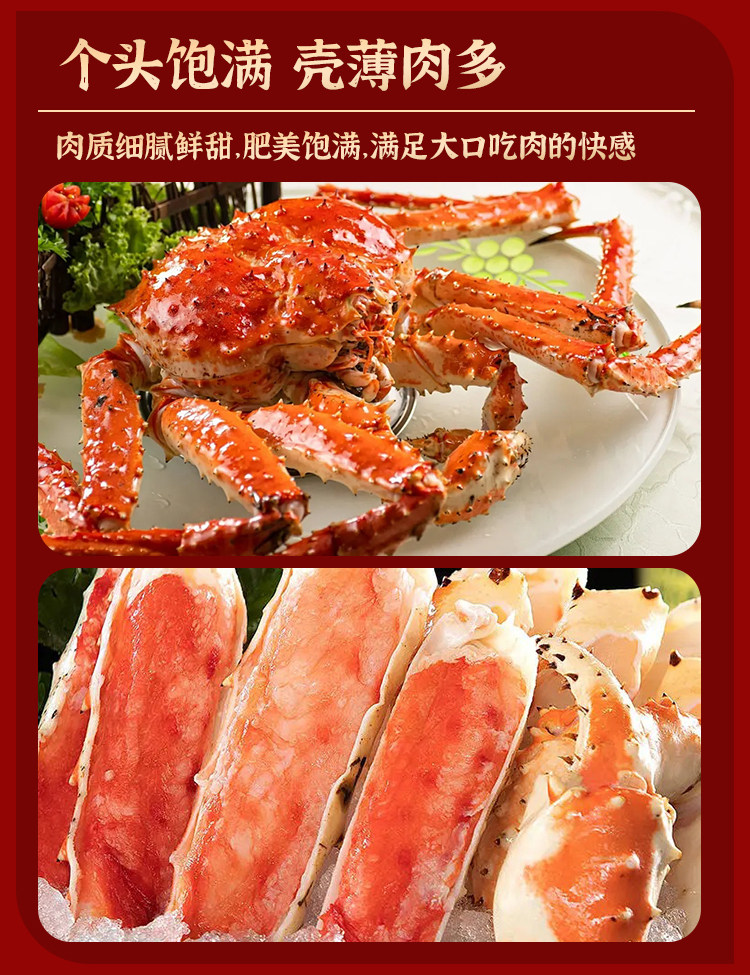 【顺丰快递】进口帝王蟹礼盒 俄罗斯深海捕捞 肉质细腻鲜甜 蟹腿粗壮 深海甘甜 刺身级鲜度 舌尖美味 BHFT