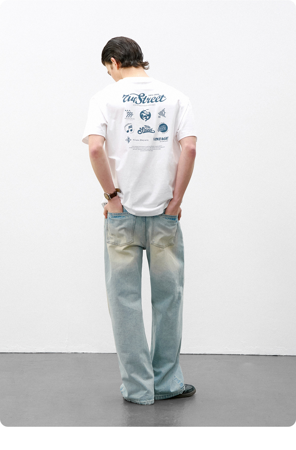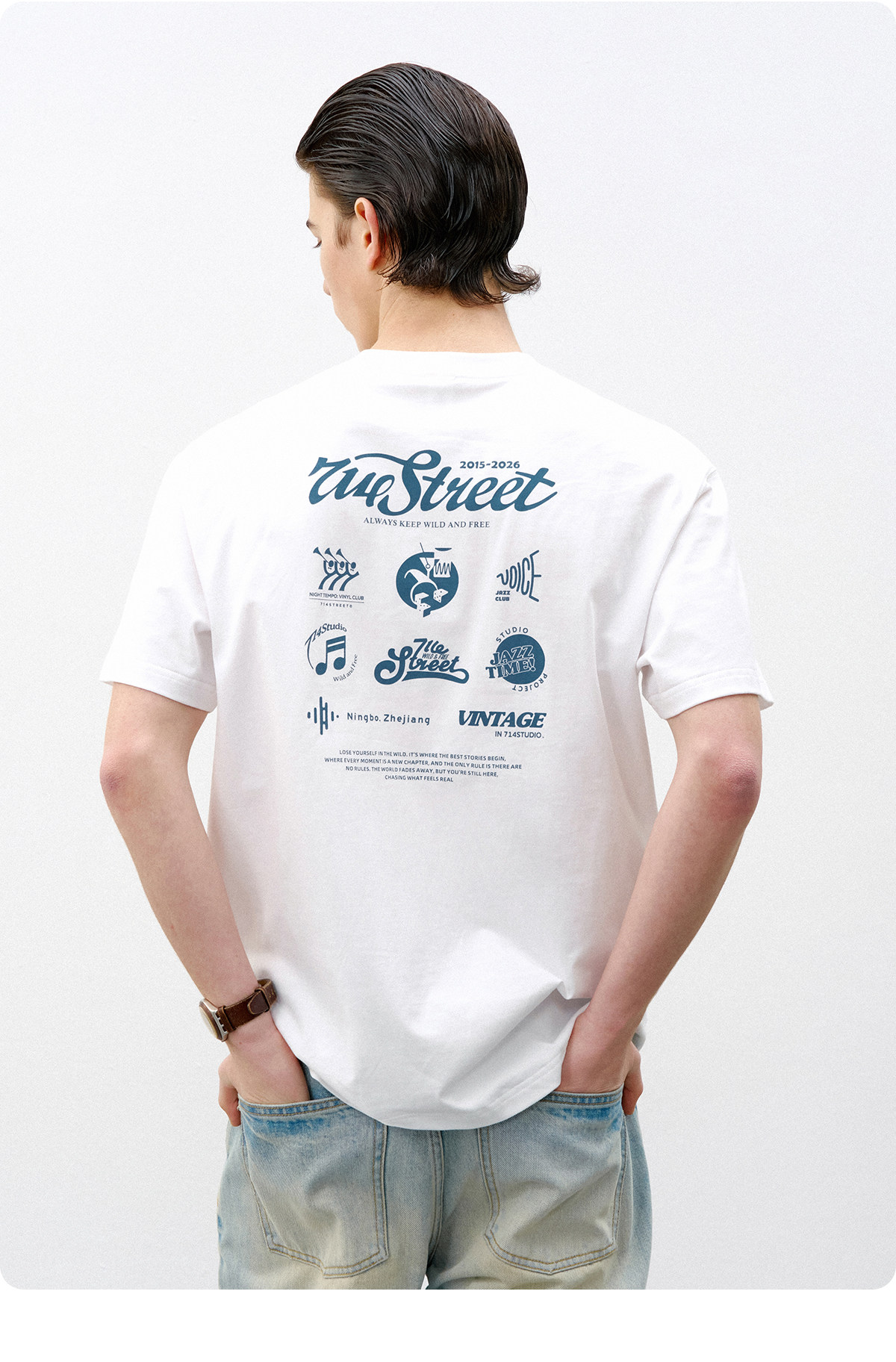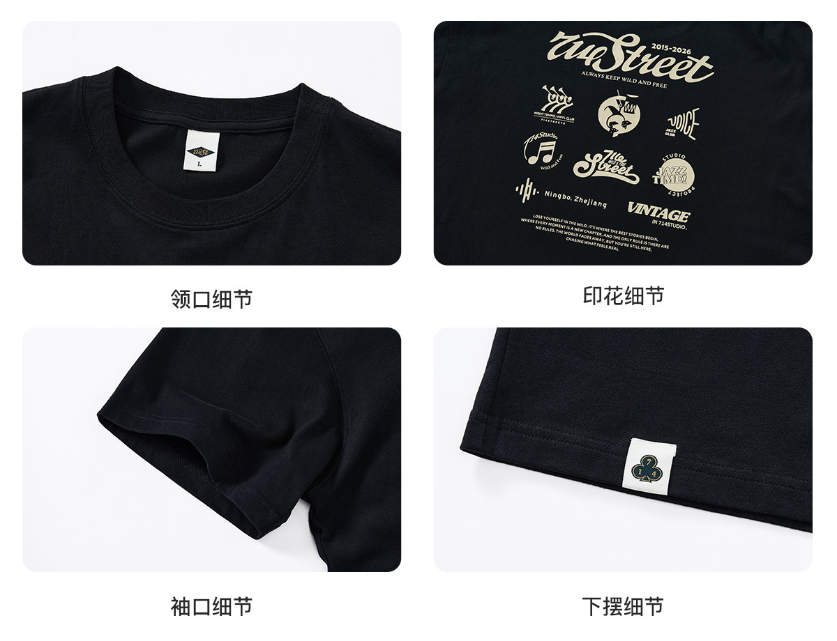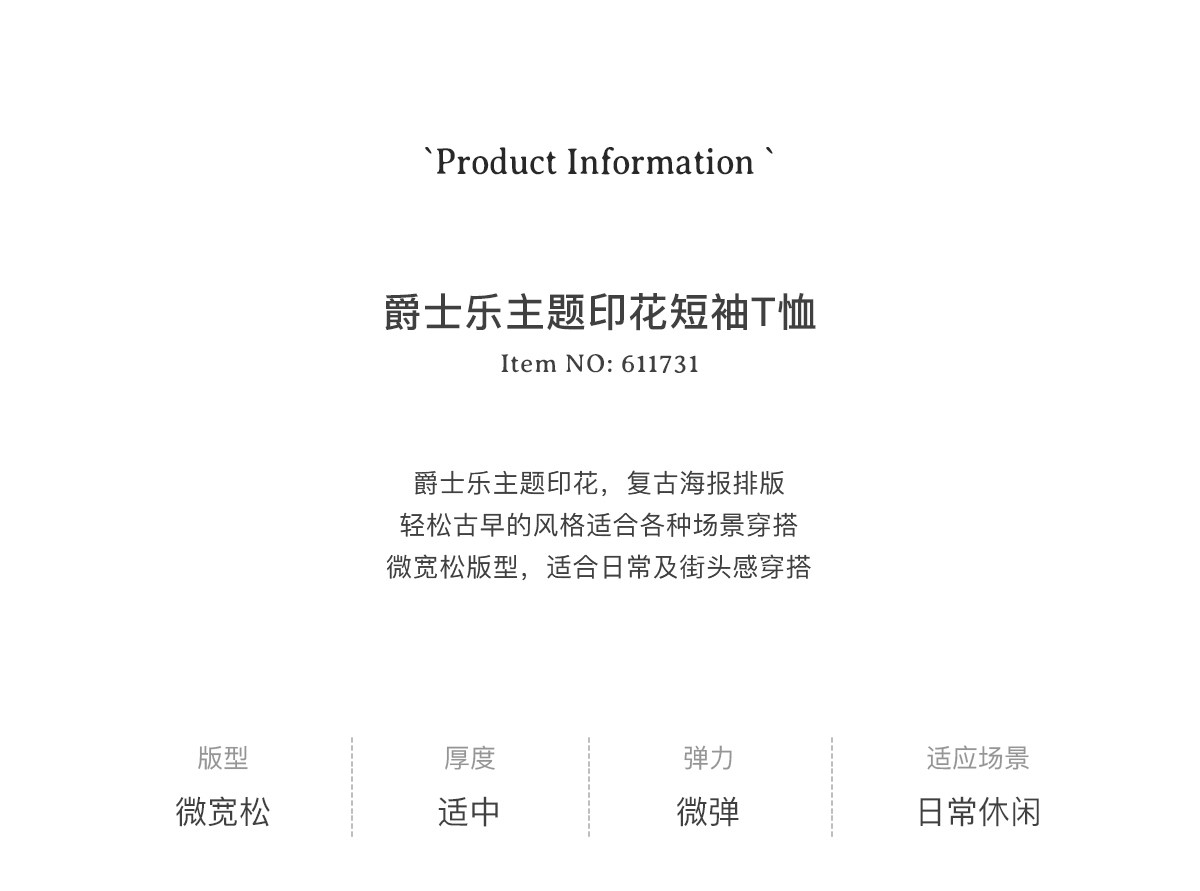 714street爵士乐主题印花短袖T恤