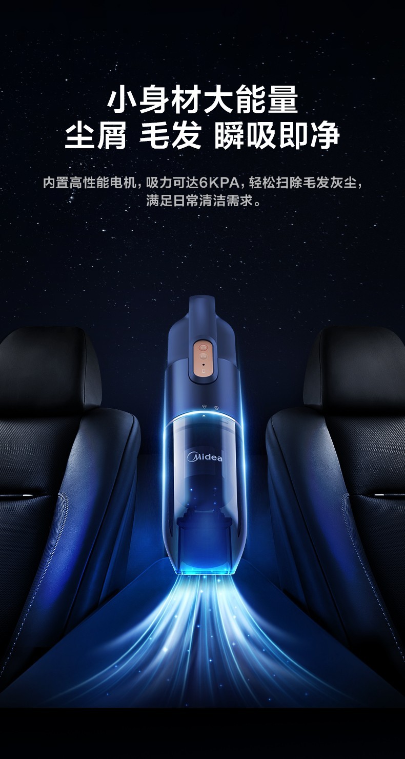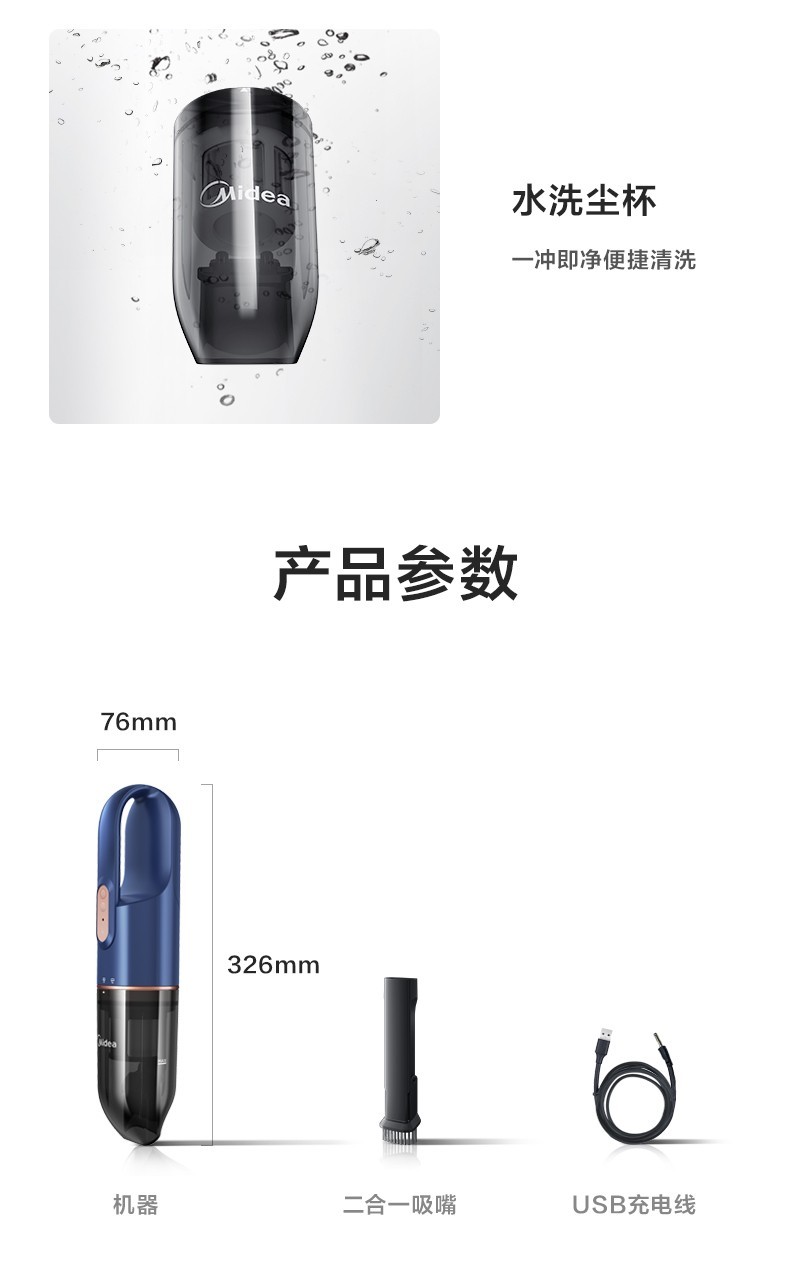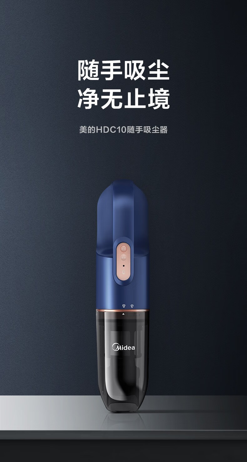 美的(Midea) 干湿吹三用式 无线吸尘器 HDC10蓝色 双重过滤