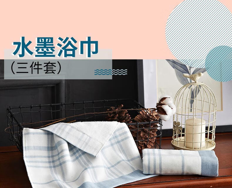 恒源祥礼业水墨浴巾三件套(浴巾*1,毛巾*2) 水墨浴巾三件套-两条装 70*140