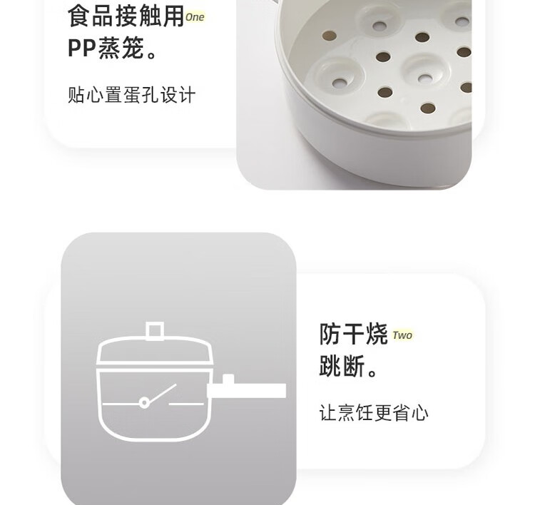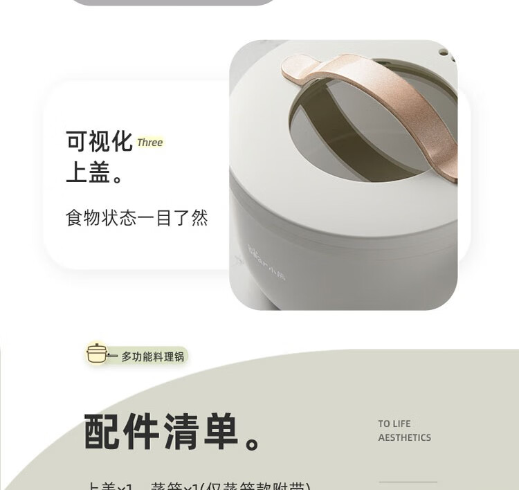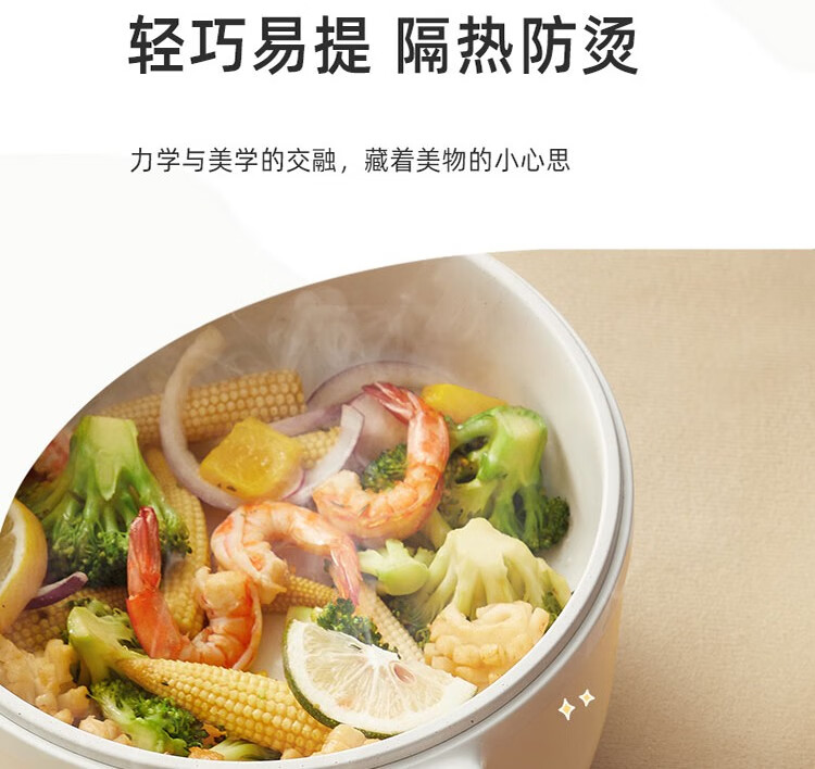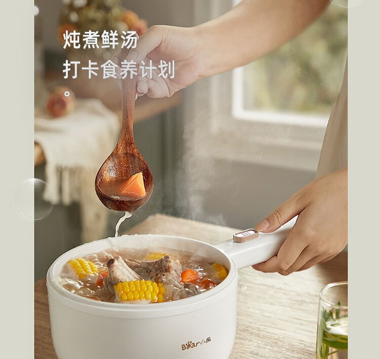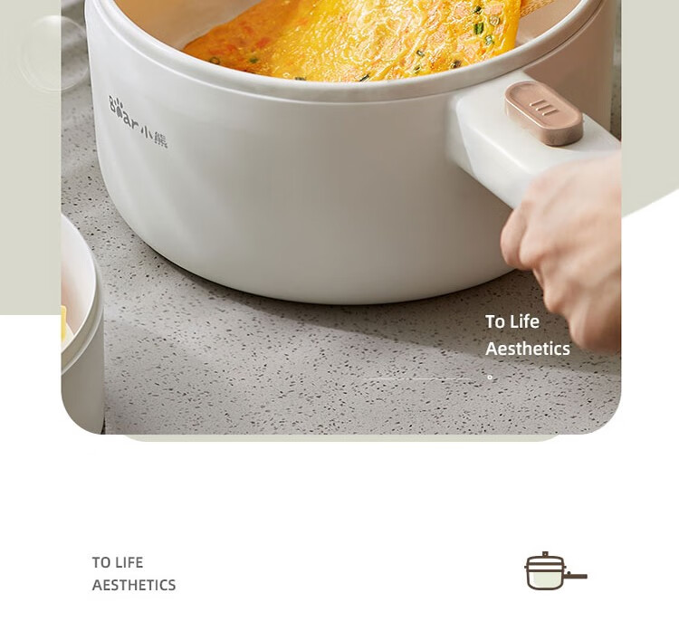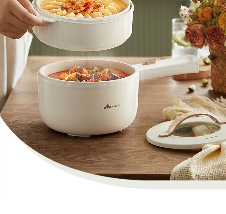 小熊电煮锅 电热锅 小电锅分体式宿舍小锅多功能火锅煮面锅电炒锅 配蒸笼 DRG-E15F2