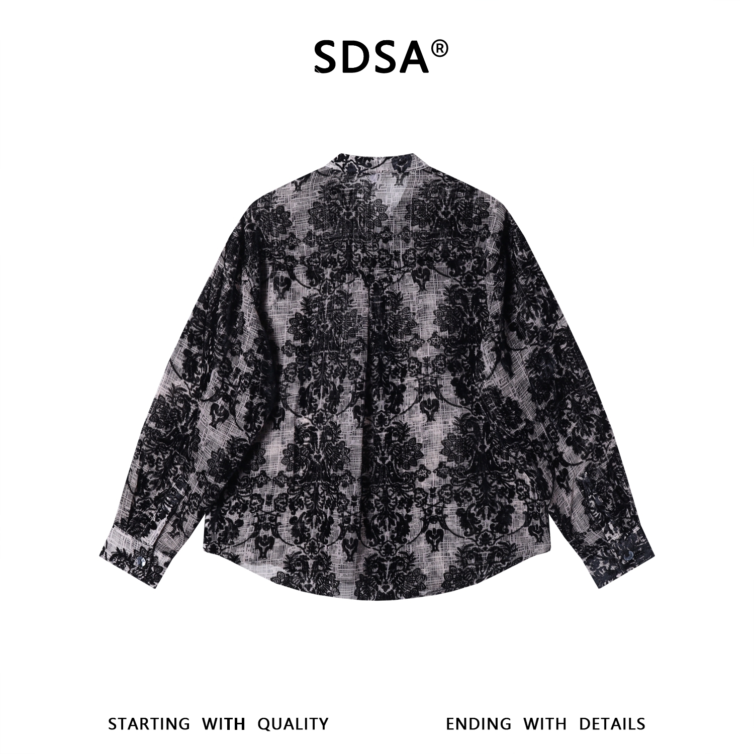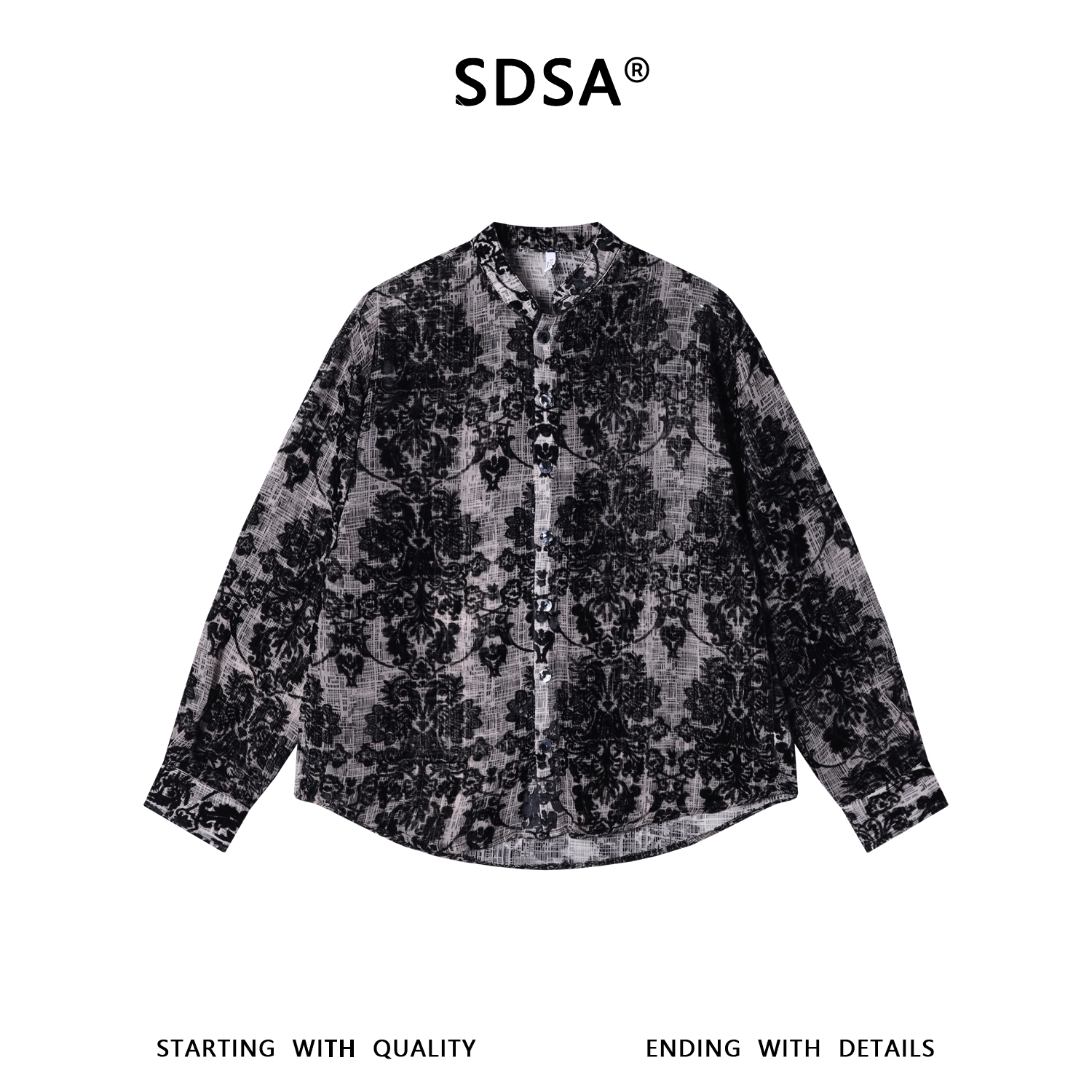 26CS15SDSA男装2026新款高贵轻奢时尚简约重工花卉立领衬衫百搭宽松衬衣