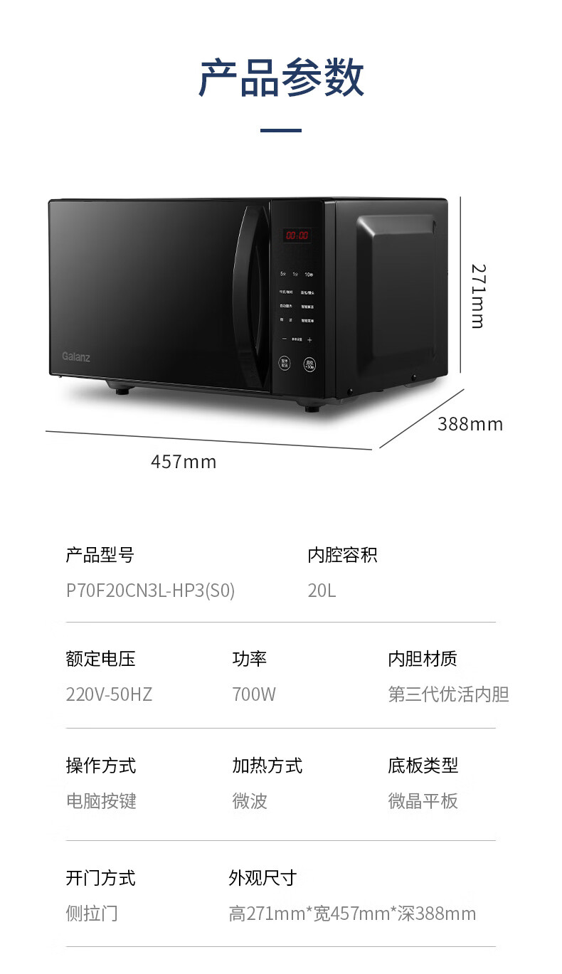 格兰仕(Galanz)微波炉家用20L平板小型 电脑按键 加热快操作简单P70F20CN3L-HP3(S0)(线下同款)
