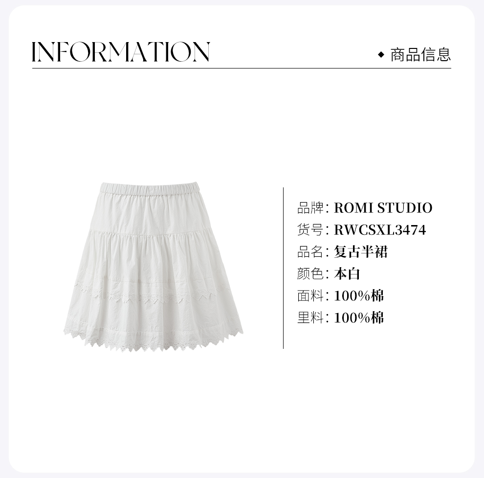 ROMI STUDIO100%长绒棉双层裁片绣花A字高腰松紧半裙RWCSXL3474