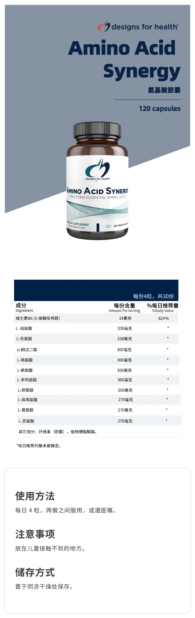海淘 健康设计 氨基酸胶囊 Amino Acid Synergy 120粒/瓶 07/26