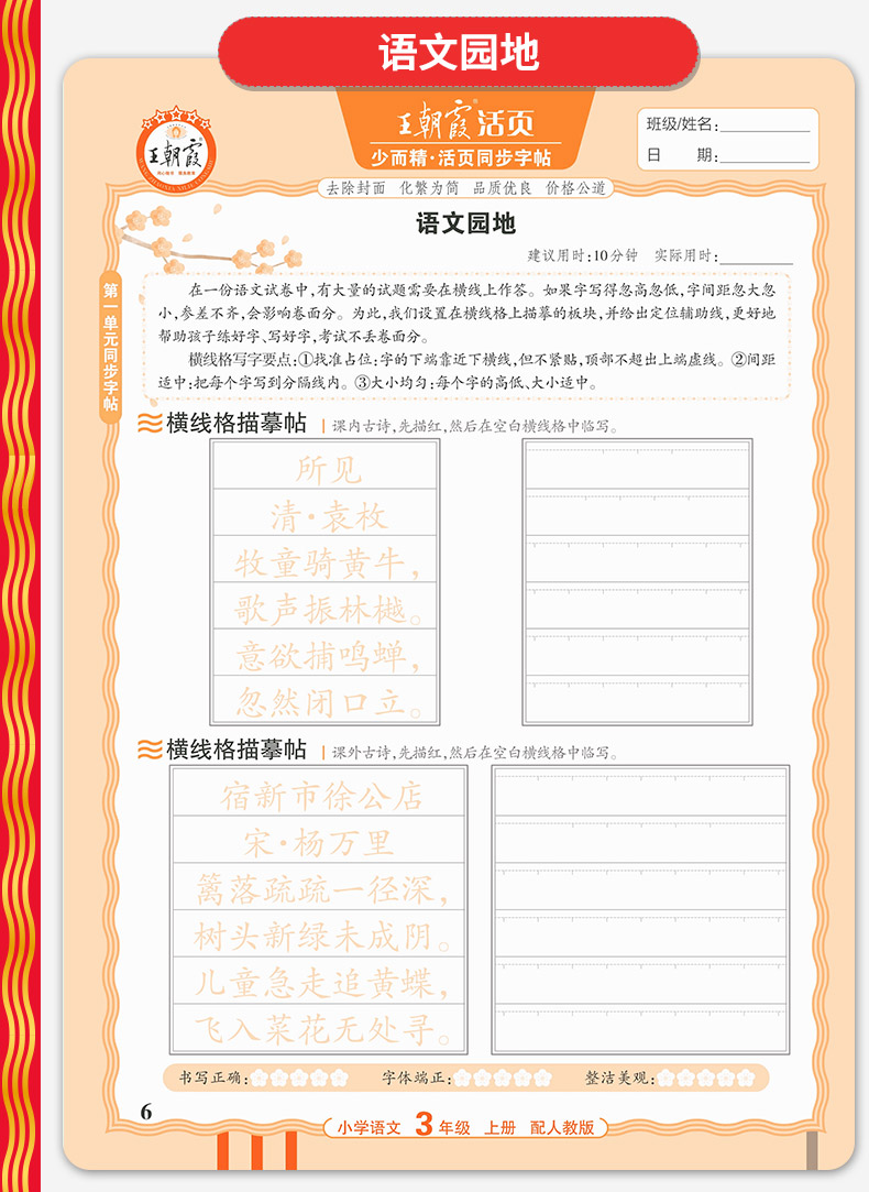 2025秋上王朝霞人教版1-6年级练字帖小学生语文活页字帖同步课堂暑假每日一练