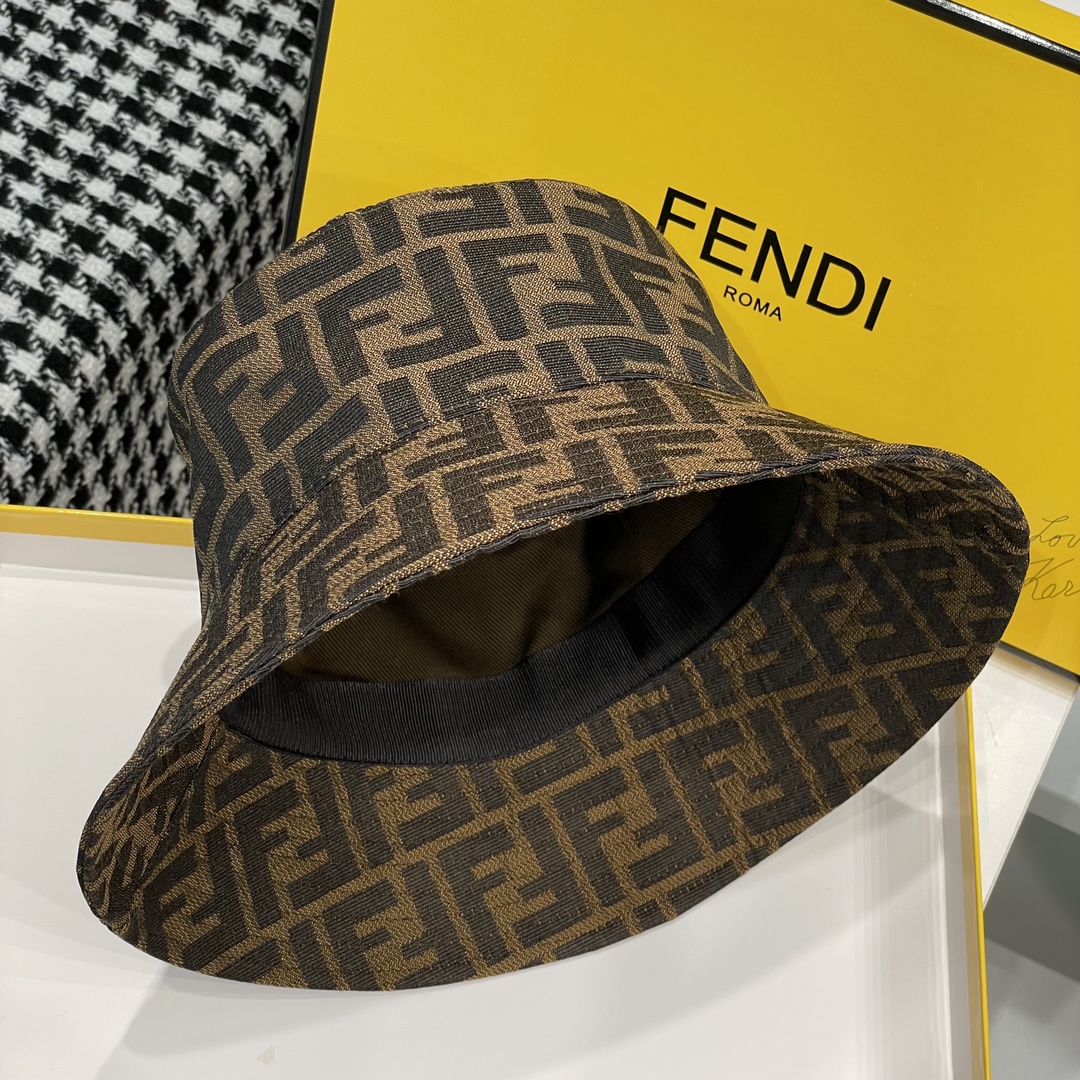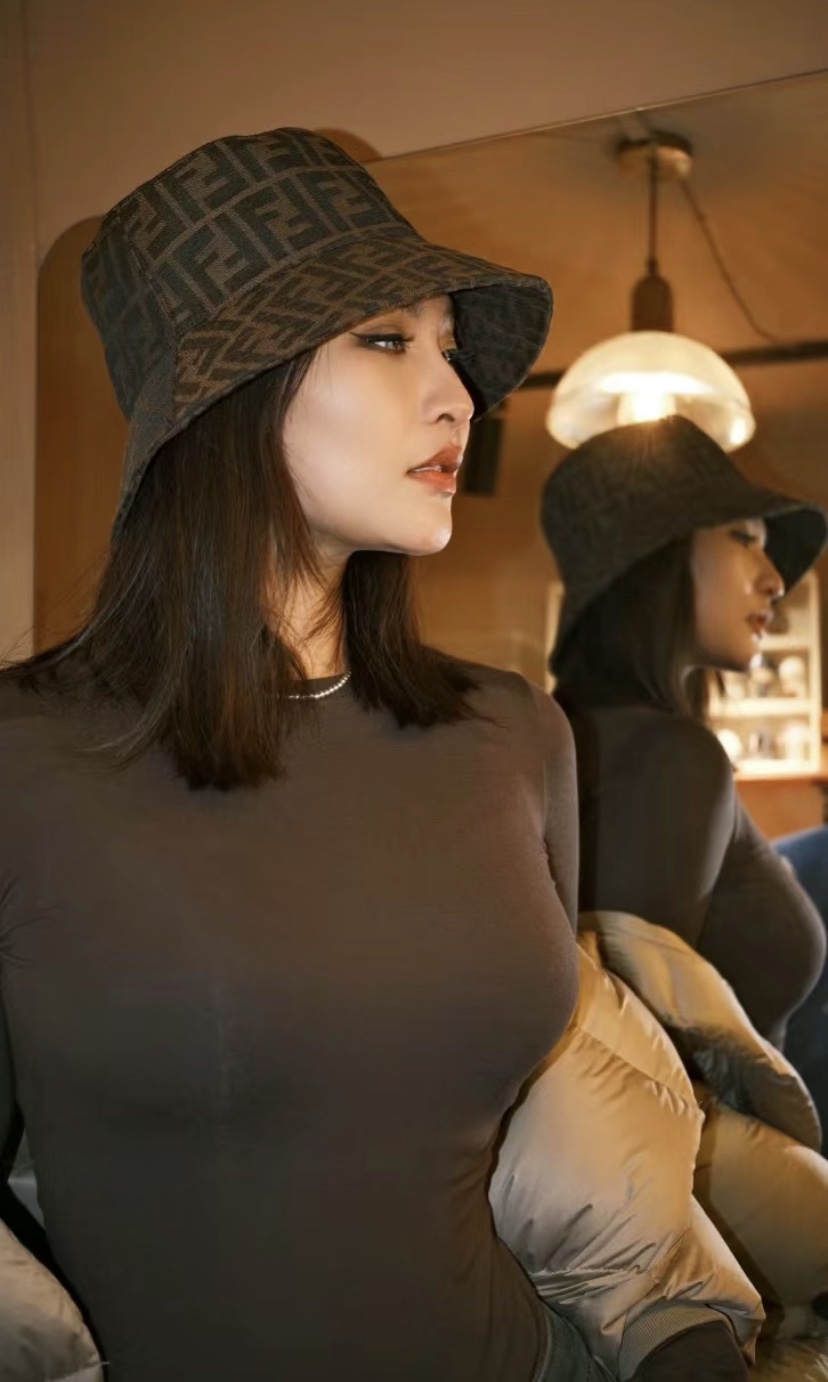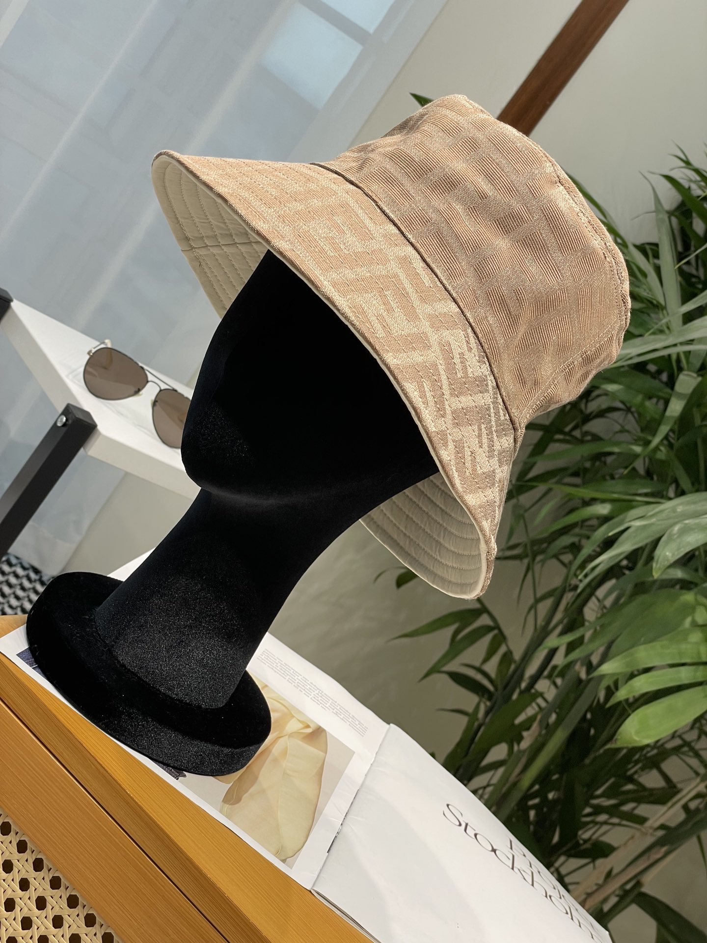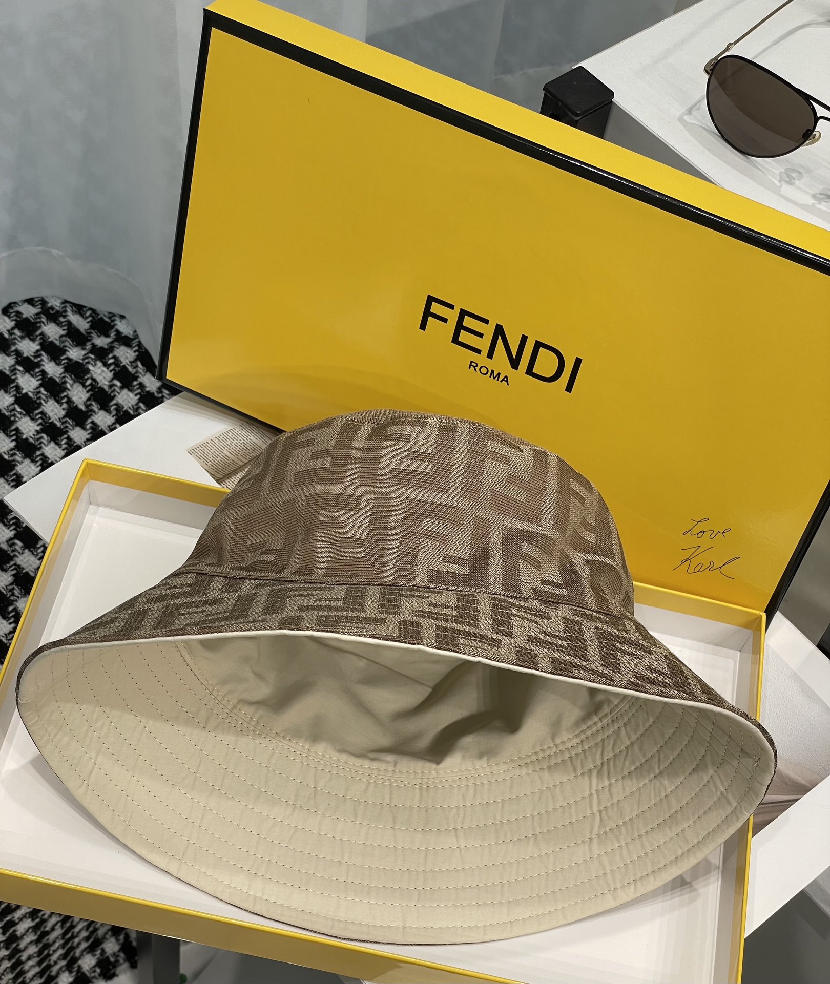 配盒子包装 FENDI芬迪春夏新款缎面面料双F老花渔夫帽