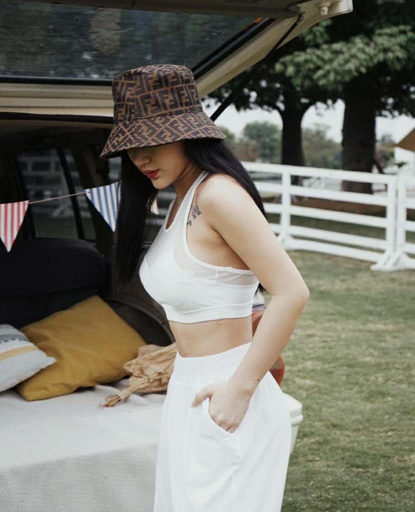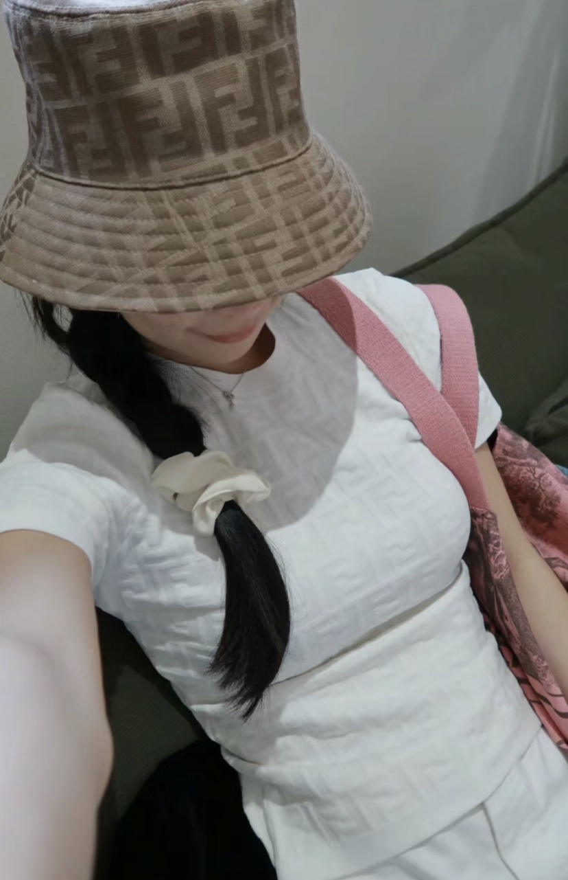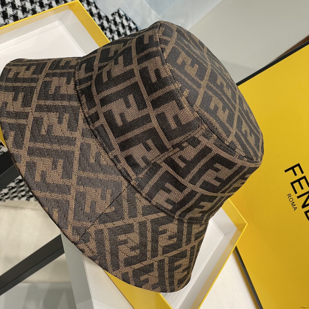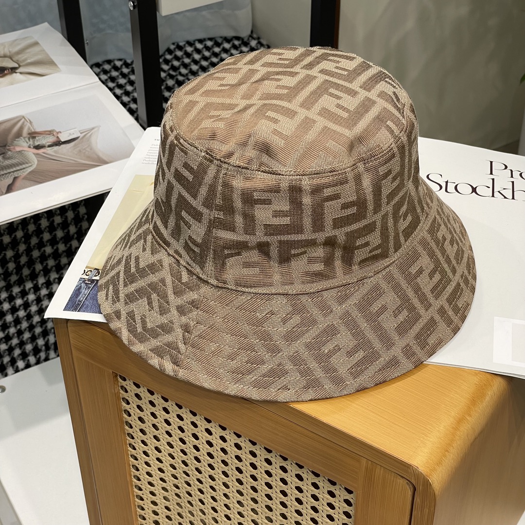 配盒子包装 FENDI芬迪春夏新款缎面面料双F老花渔夫帽