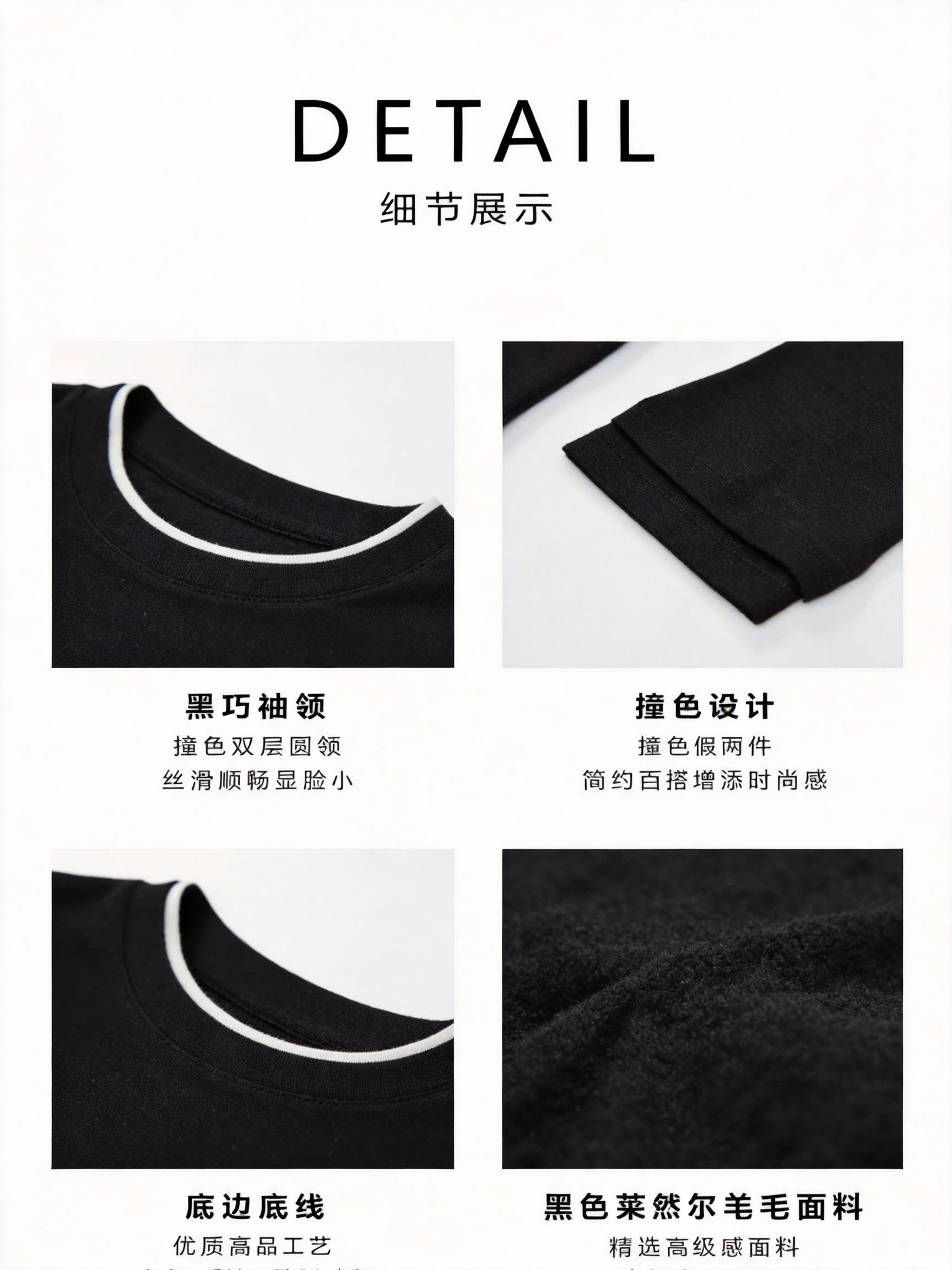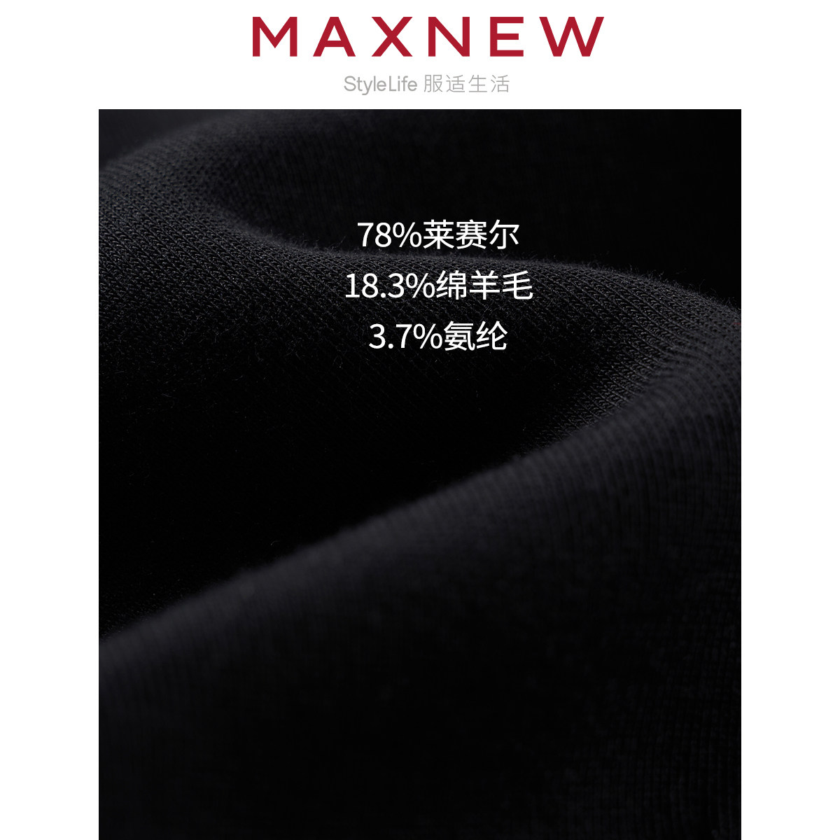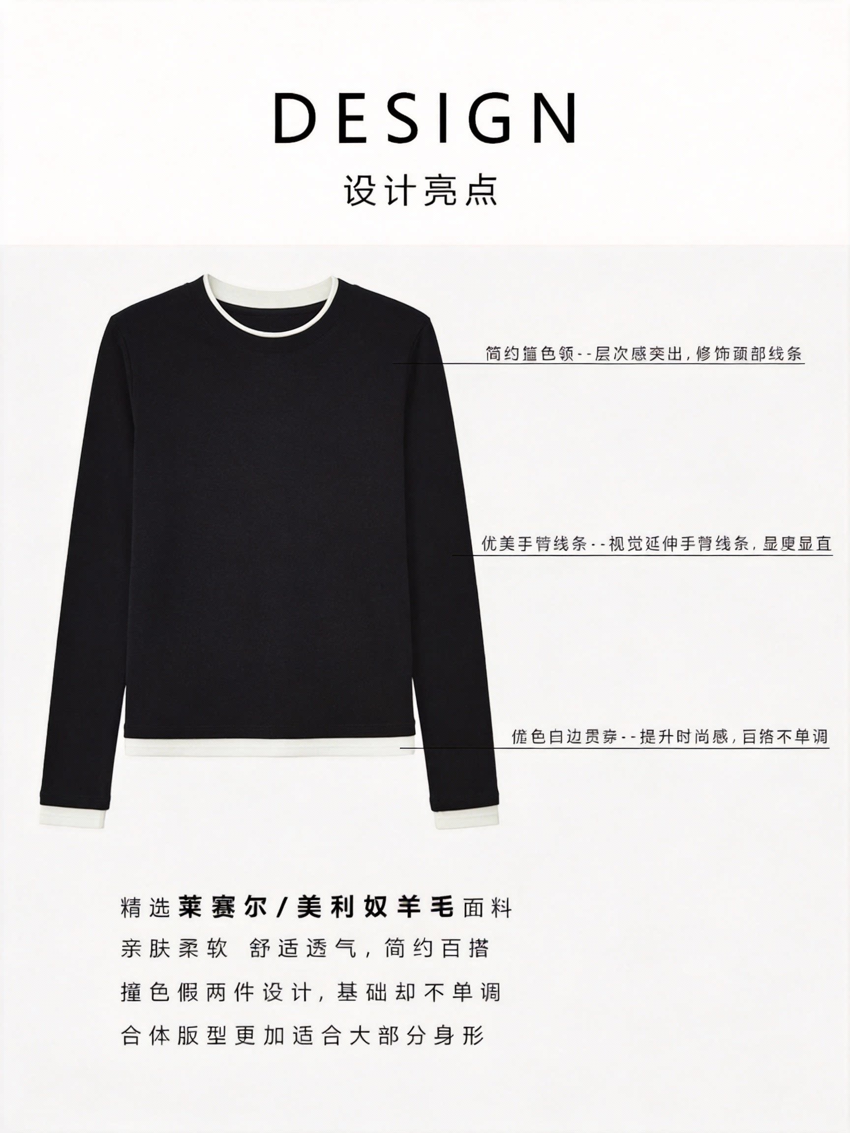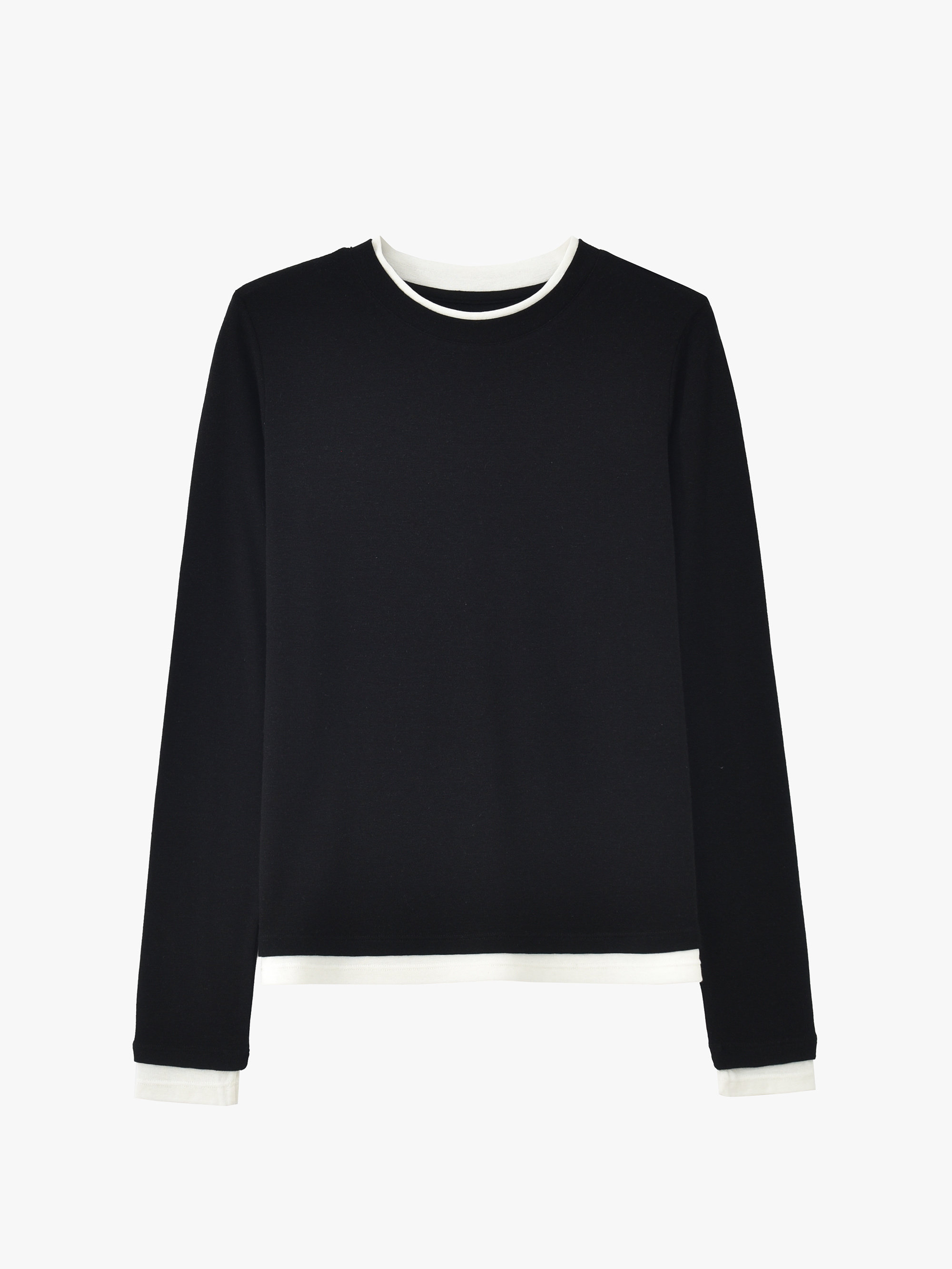 【门店同款】MAXNEW极简风黑色长袖T恤女圆领百搭轻奢针织衫上衣