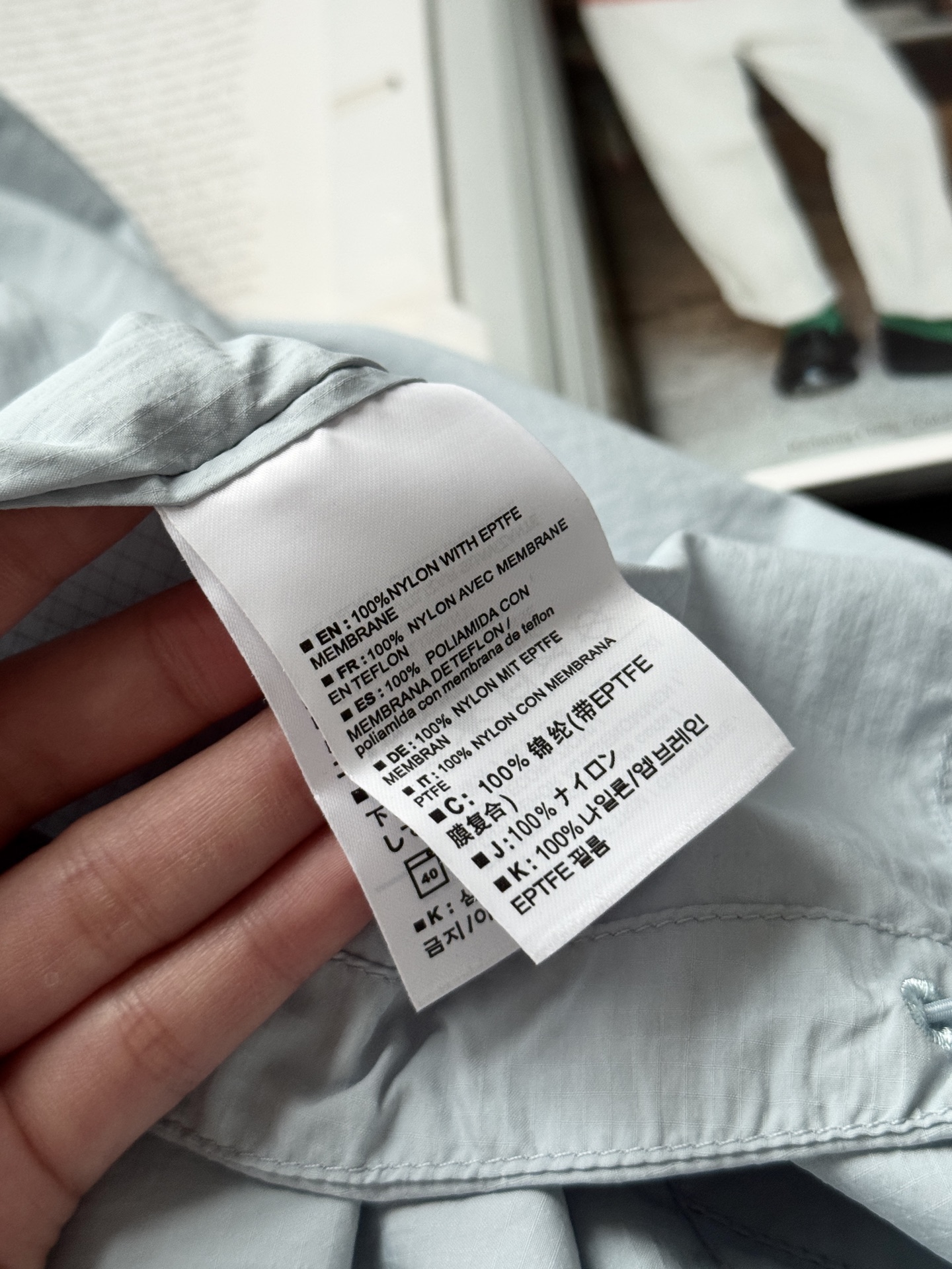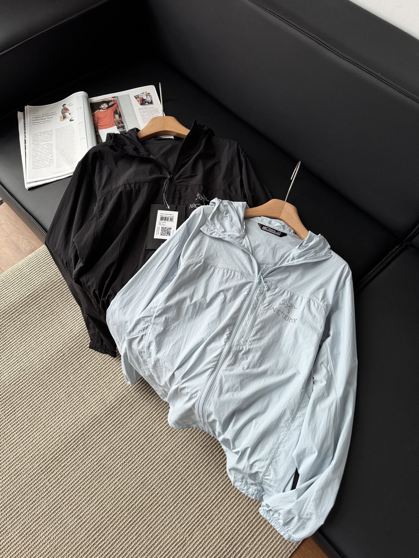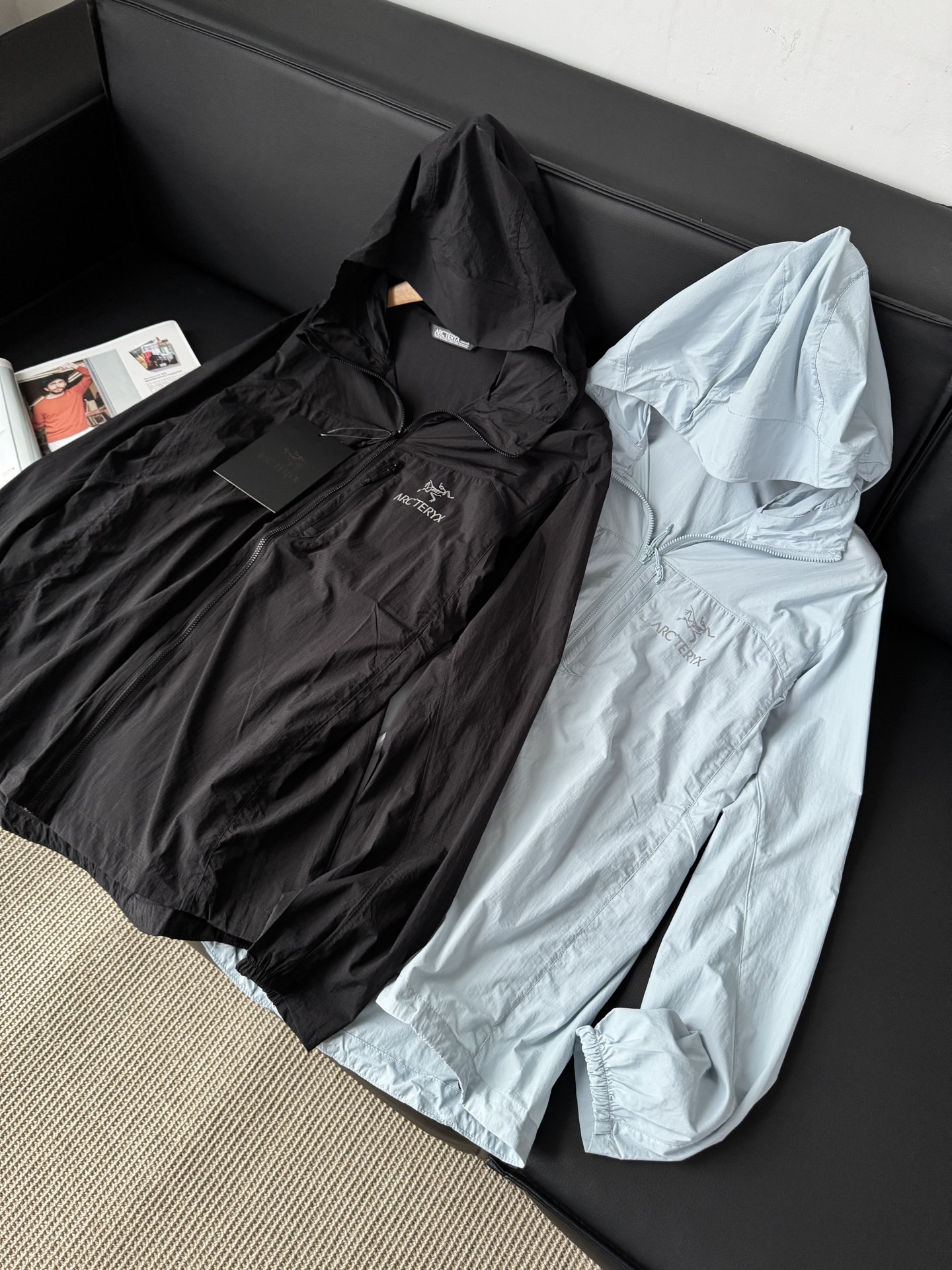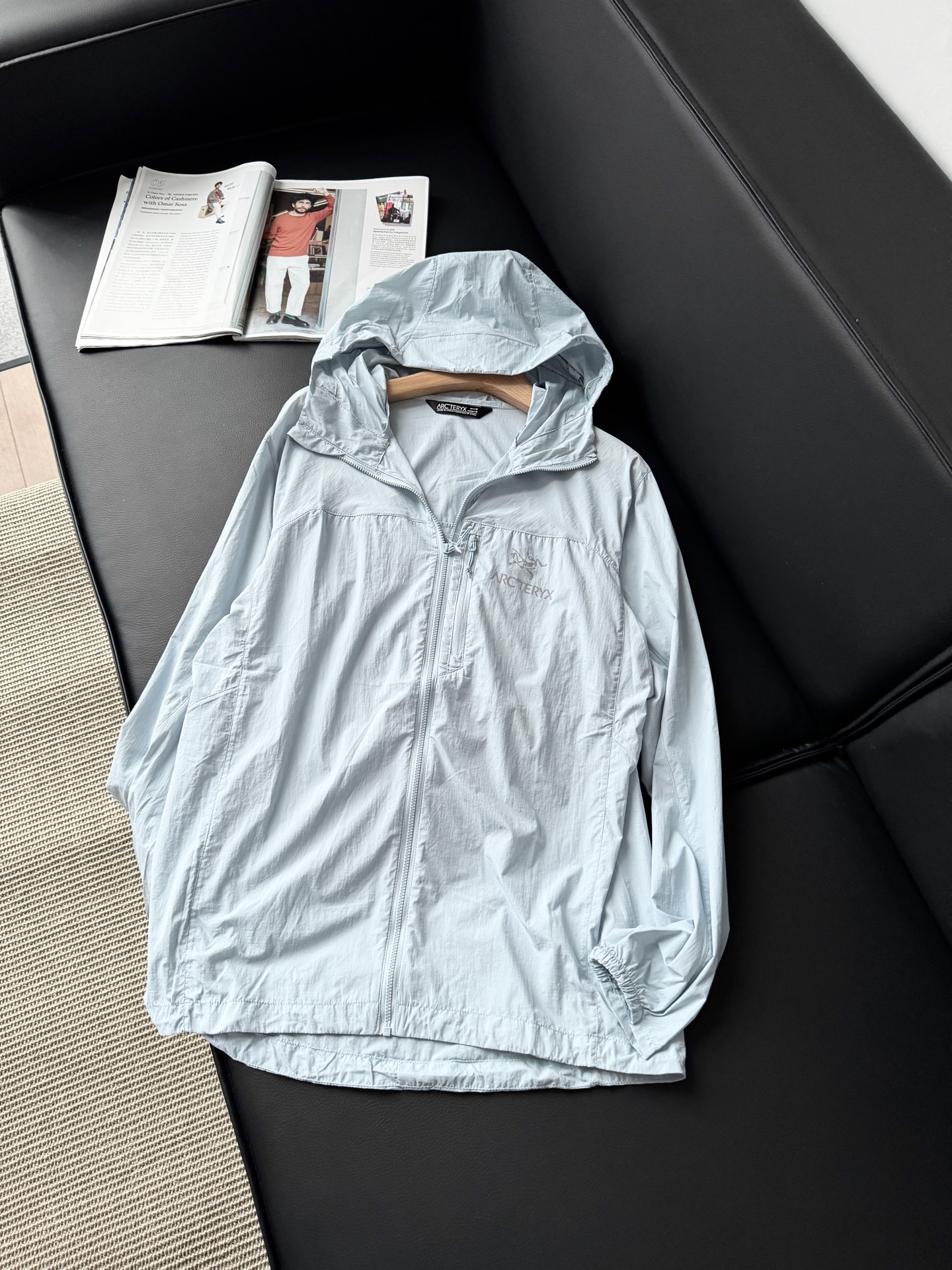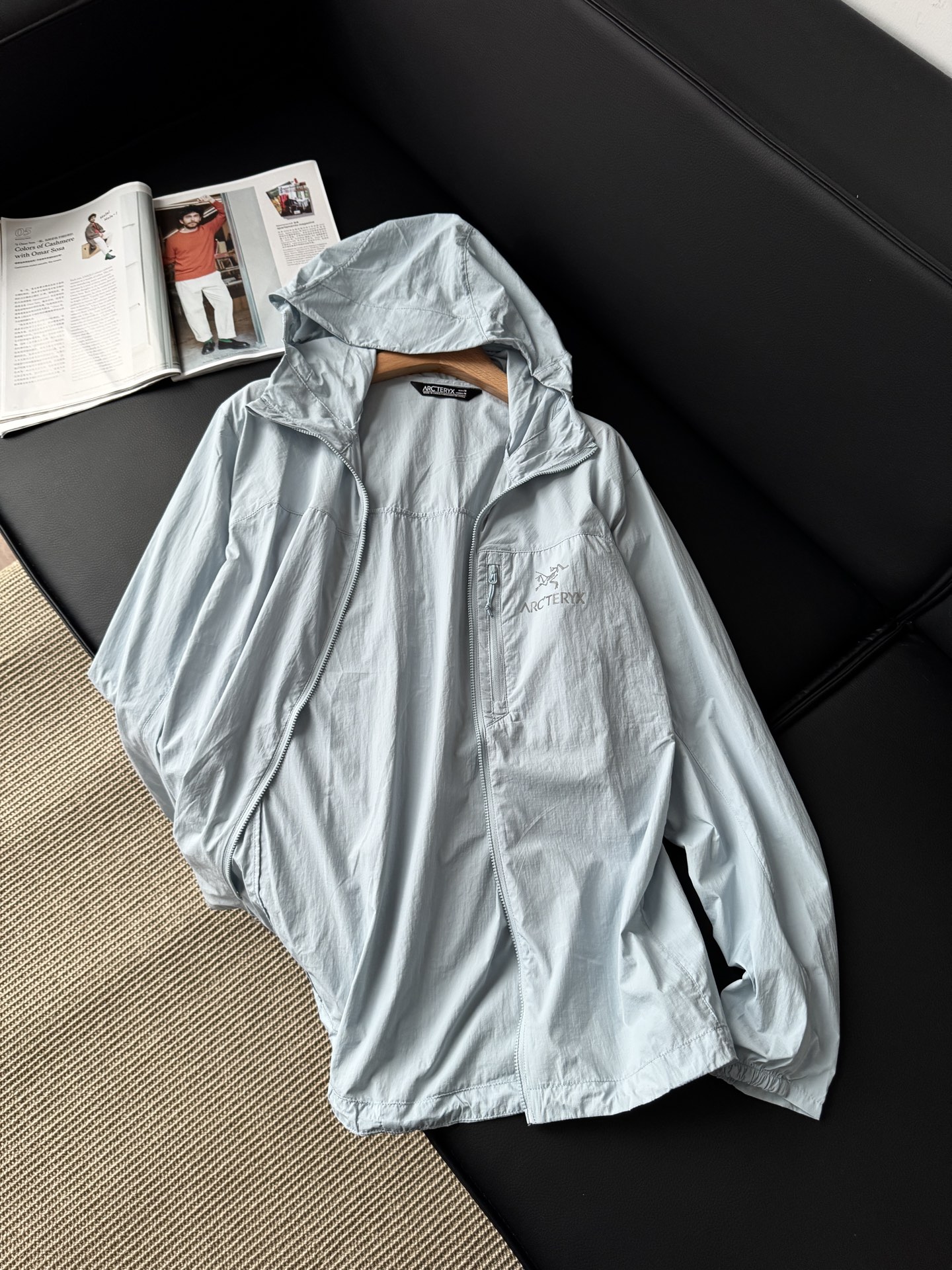 原面料 很经典的防护型防晒衣,UPF50+的防晒值,可以穿情侣款,超级实穿的防晒衣, 日常通勤,休闲运动、或者是户外徒步都OK,Tyono30防撕裂机织面料,表面都有暗格纹结构,轻量、防风、防雨、防撕裂防护性很好,户外小雨不用担心,透气、防潮不挑男女,上身酷飒十足,高级感满满的都市机能风, 胸前单侧做了拉链口袋 袖口,下摆都有收口工艺 下摆内里做有抽绳,可调节收紧半圈弹力袖口 舒适贴合手腕