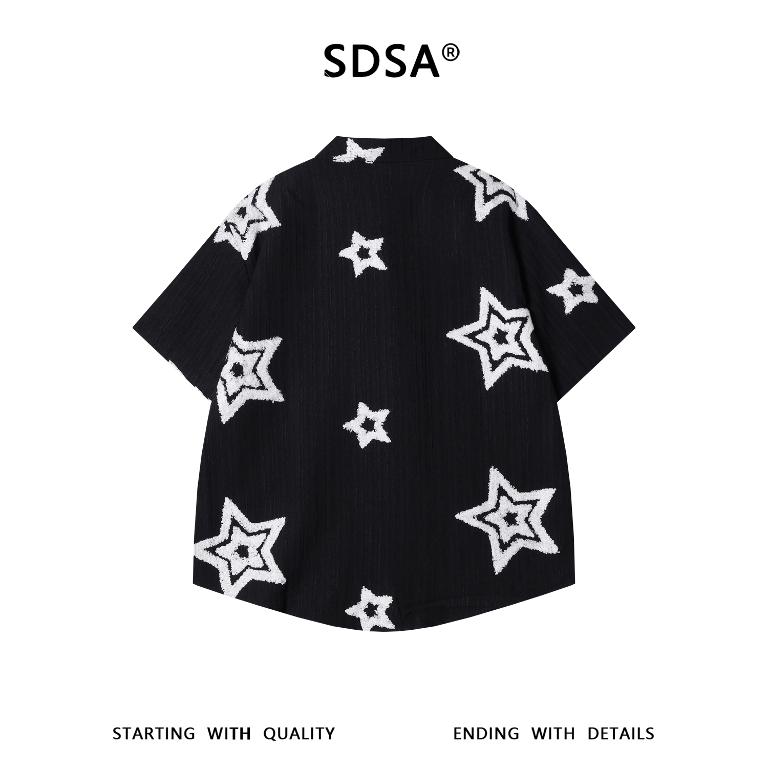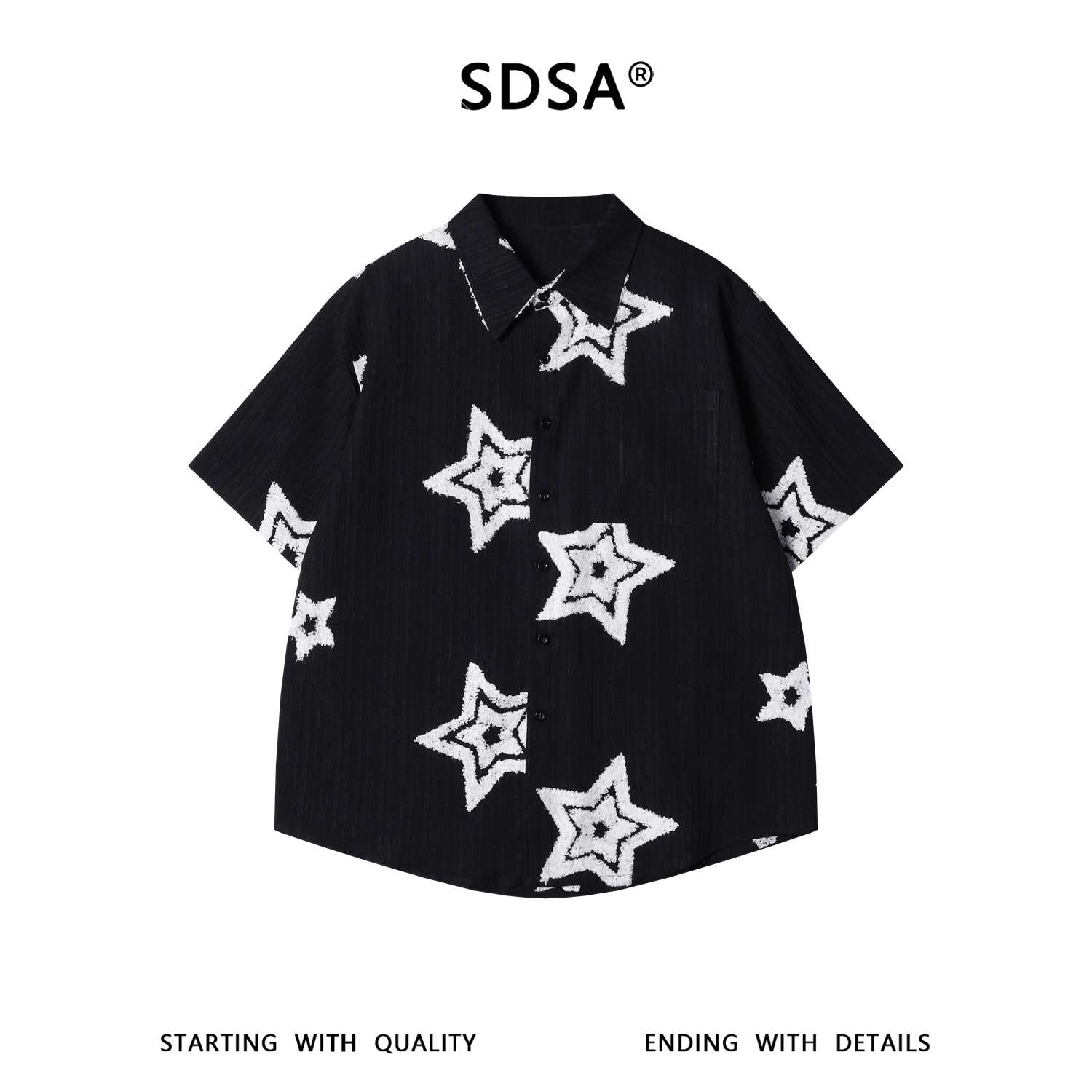 SDSA男装2026新款高贵轻奢潮牌简约撞色刺绣星星短袖衬衫百搭休闲