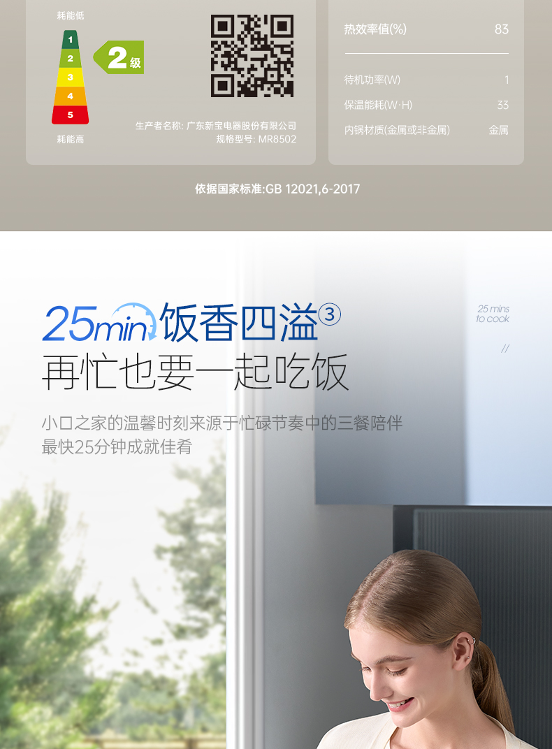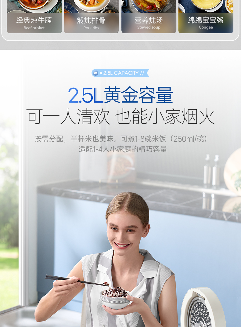 摩飞 电饭煲家用智能2.5L迷你电饭锅1-4人小型多功能聚能厚釜电煮饭锅 MR8502