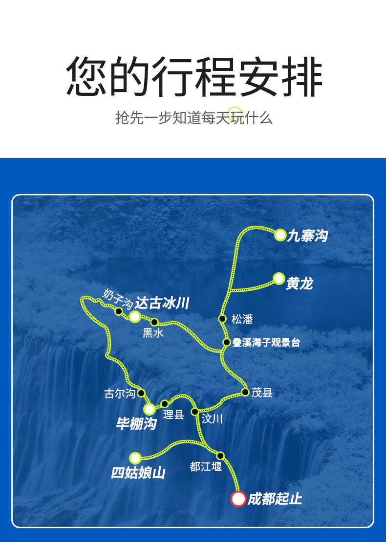 注:“杭州/温州/绍兴/湖州/嘉兴/金华/台州”户籍游客,可享阿坝州九寨沟/黄龙/四姑娘山/达古冰川各免1次门票(截止日期2026年6月11日)。
