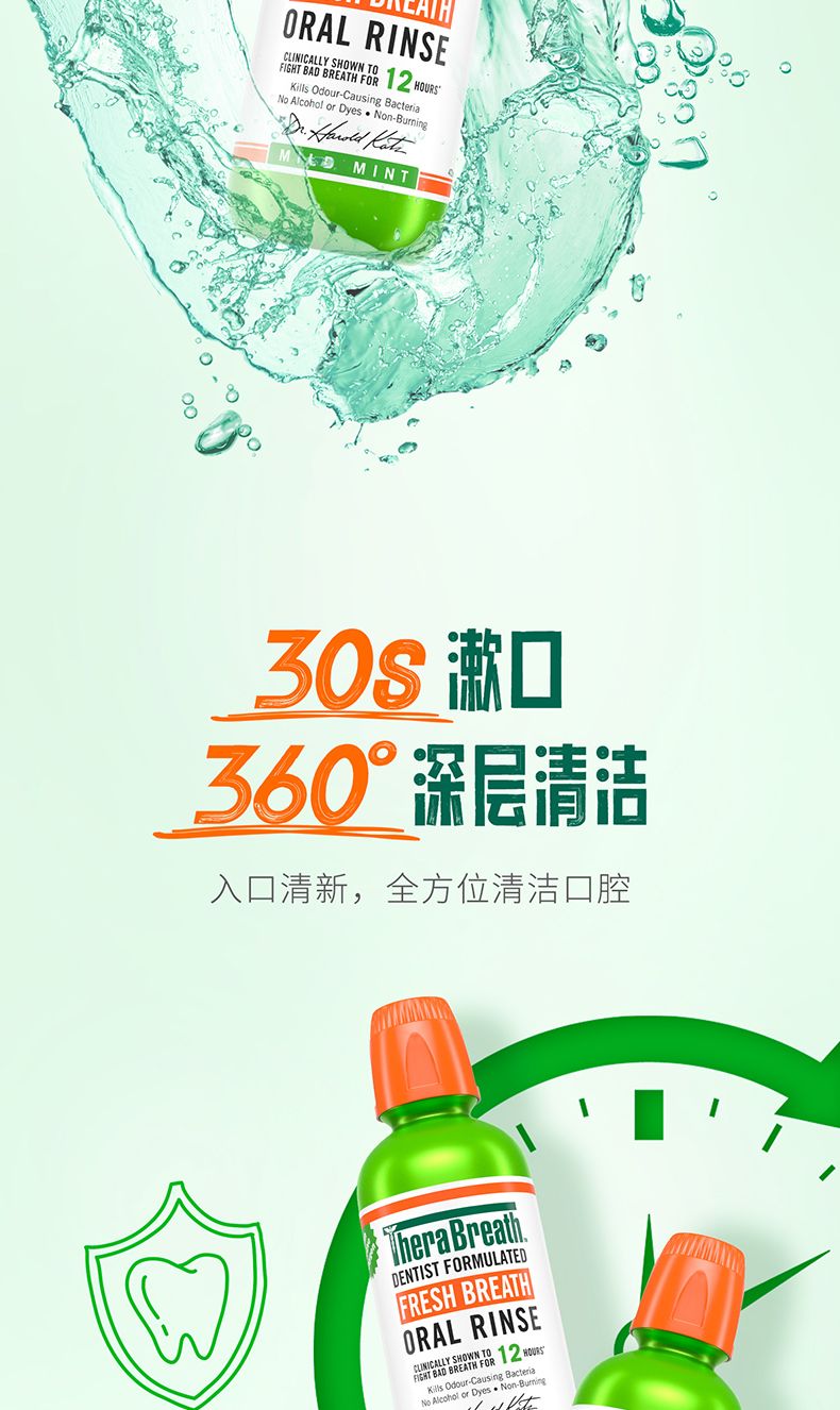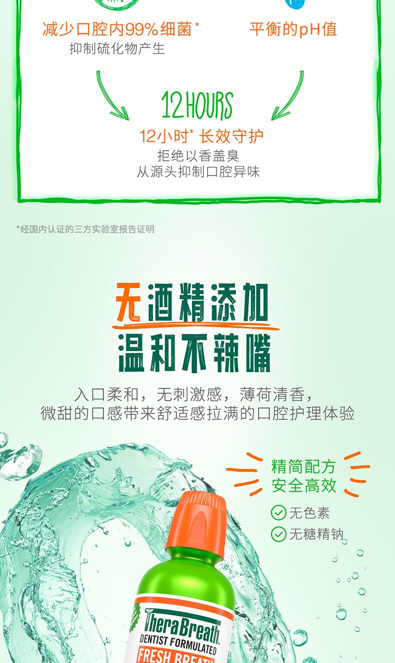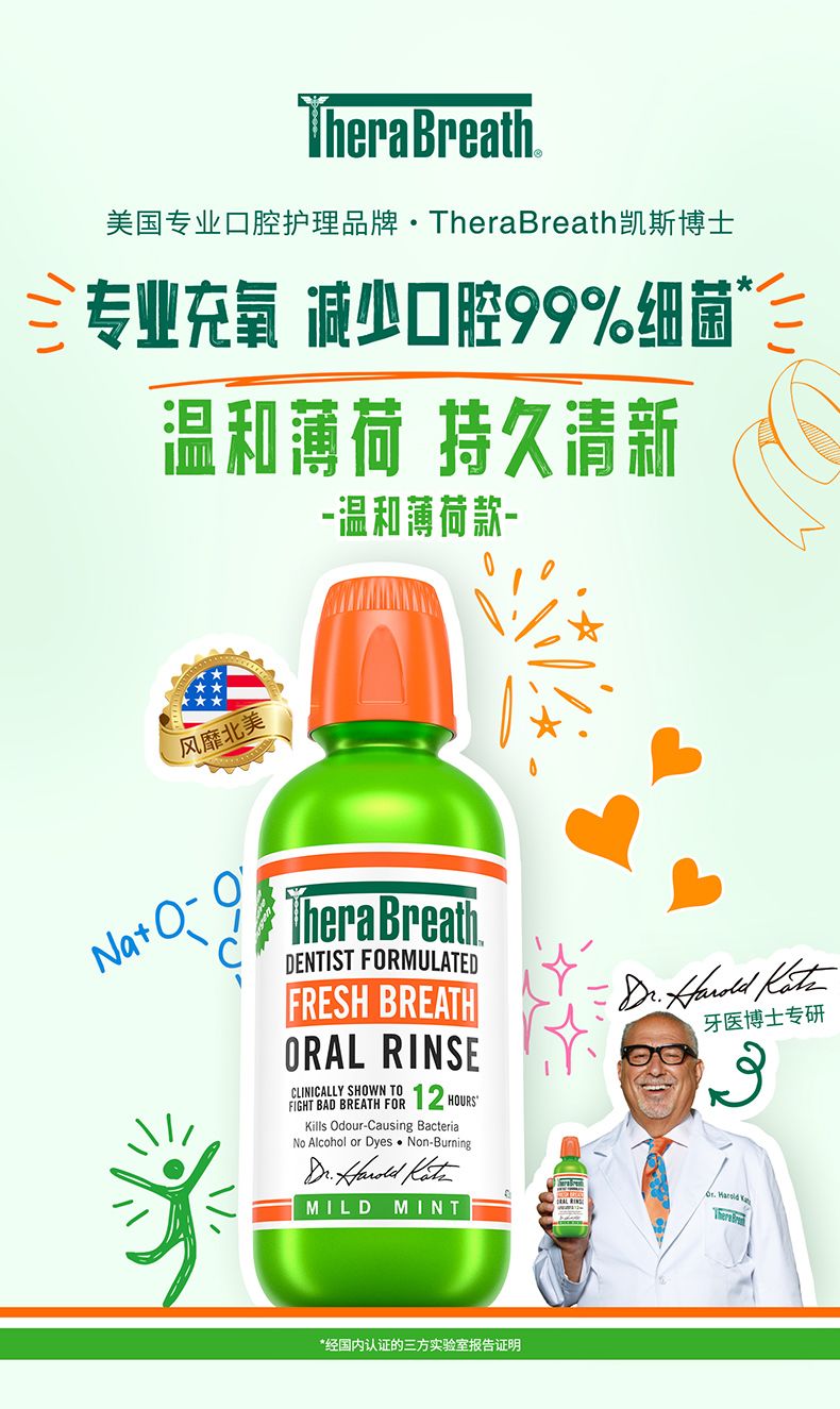 TheraBreath凯斯博士漱口水清新口气减少细菌温和0酒精含漱液