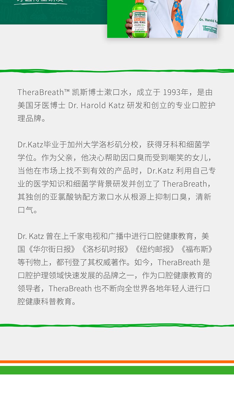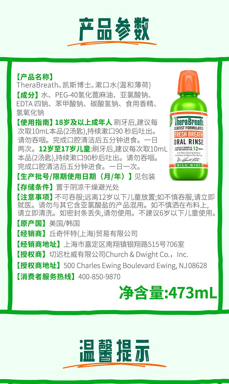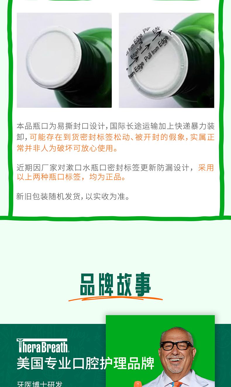 TheraBreath凯斯博士漱口水清新口气减少细菌温和0酒精含漱液