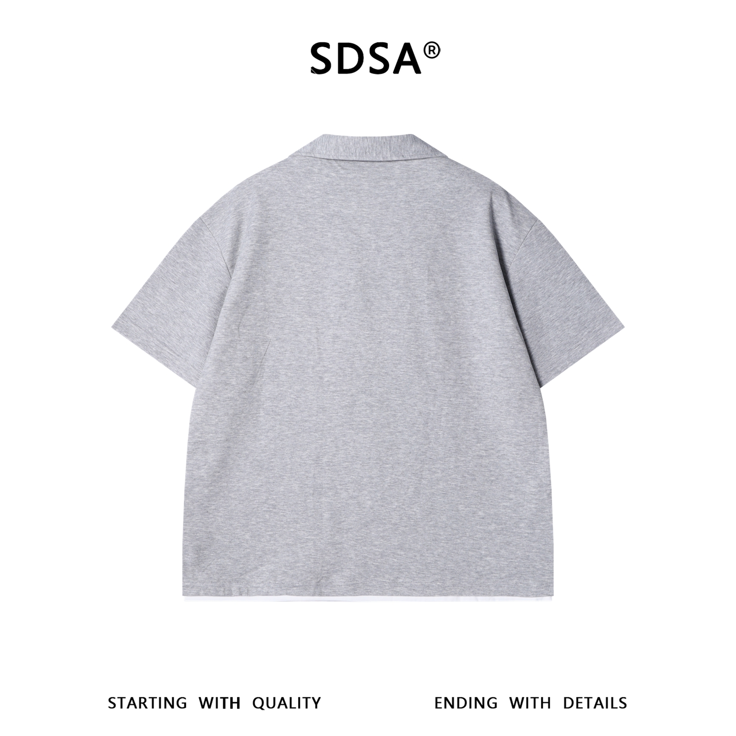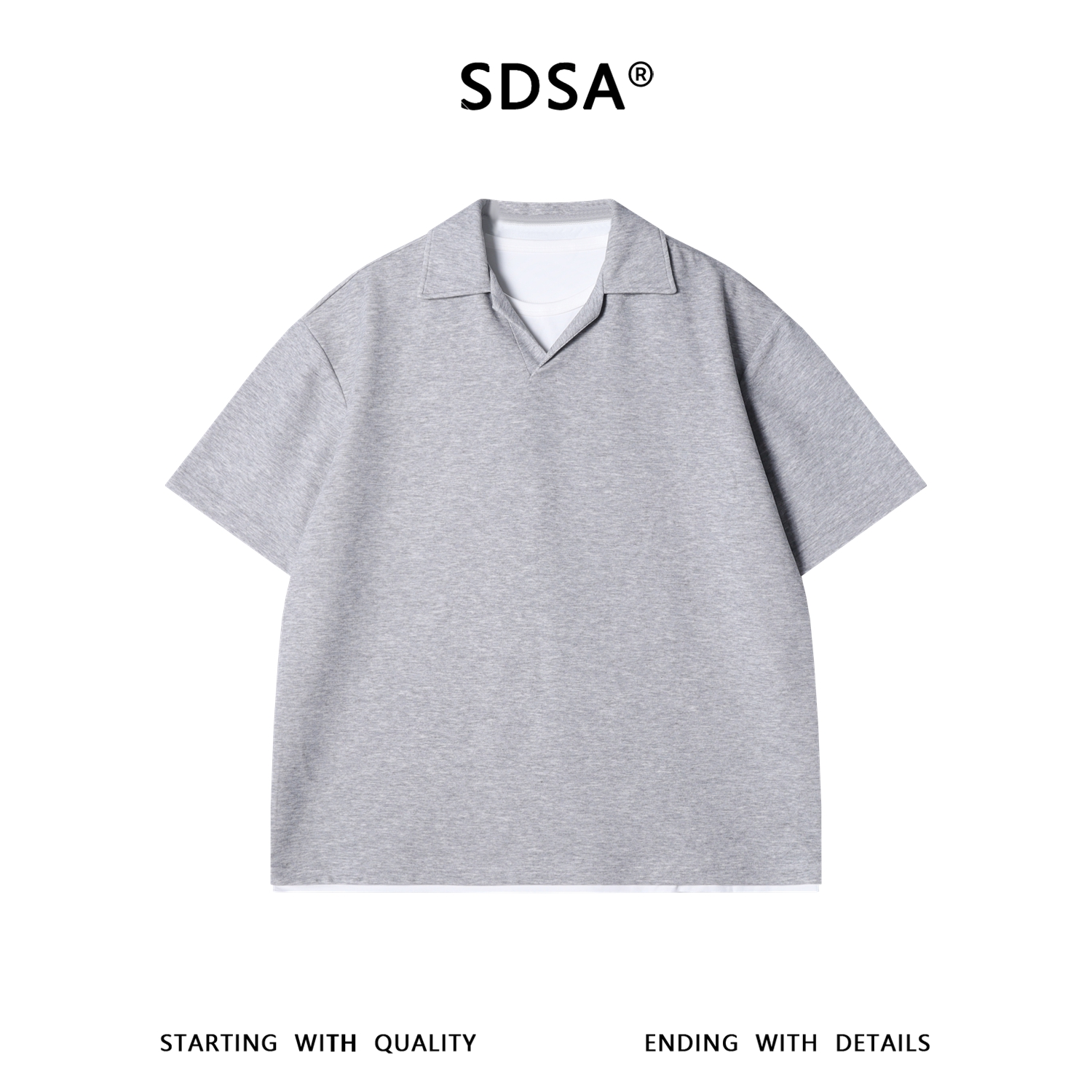 SDSA男装2026新款轻奢假两件V领翻领短袖Polo衫宽松通勤休闲上衣