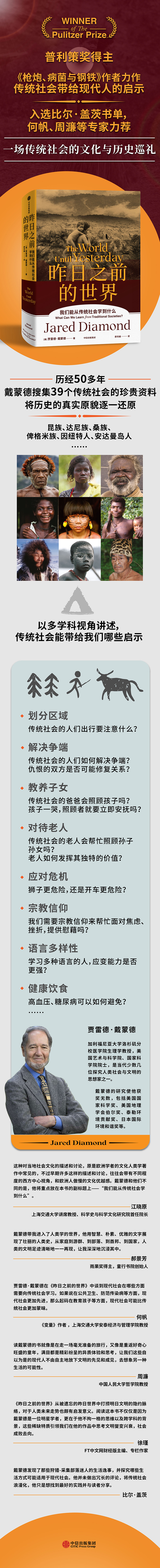 1.普利策奖得主、《枪炮、病菌与钢铁》作者贾雷德·戴蒙德作品,专为中国读者作序,周濂、何帆、比尔·盖茨力荐,一次引人深思的传统社会与现代社会的碰撞。