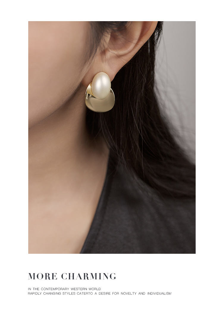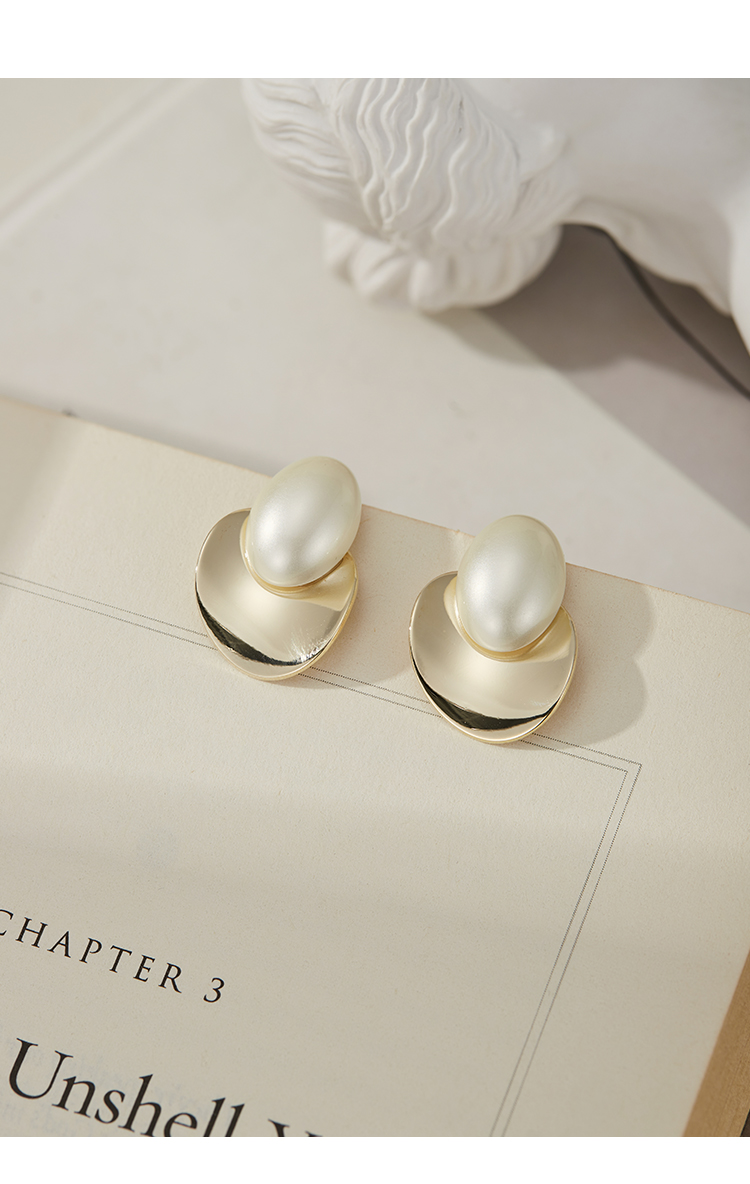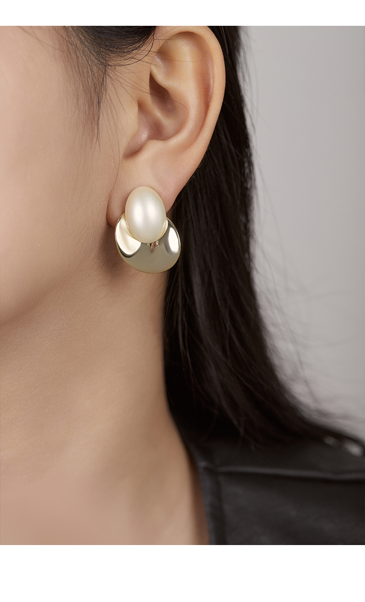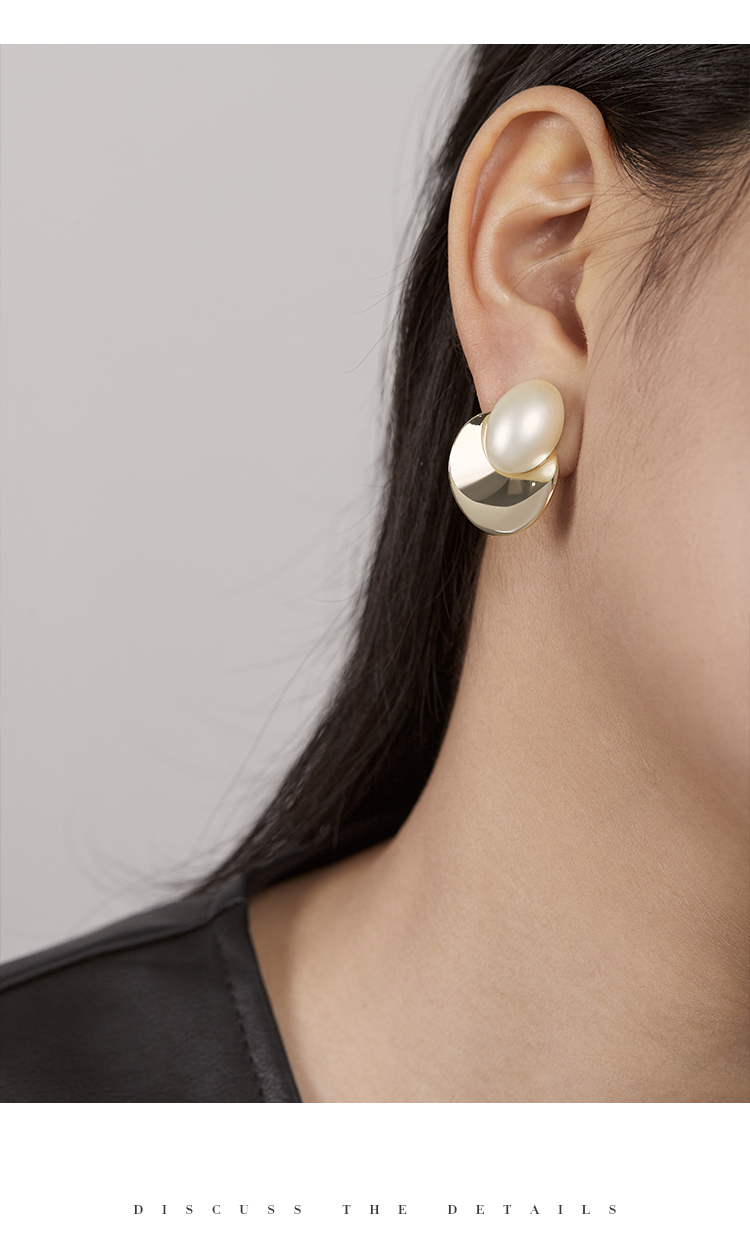 Oflye潮流饰品 欧美金属圆片珍珠耳钉新款潮小众设计感高级轻奢气质耳坠女