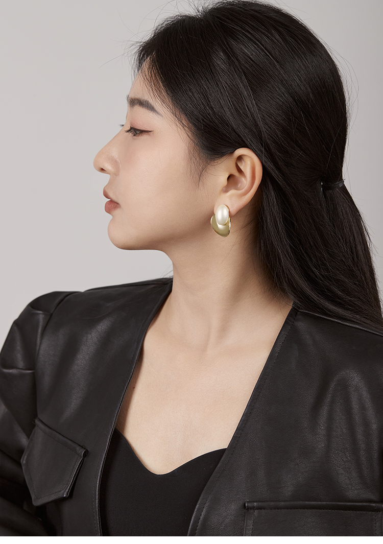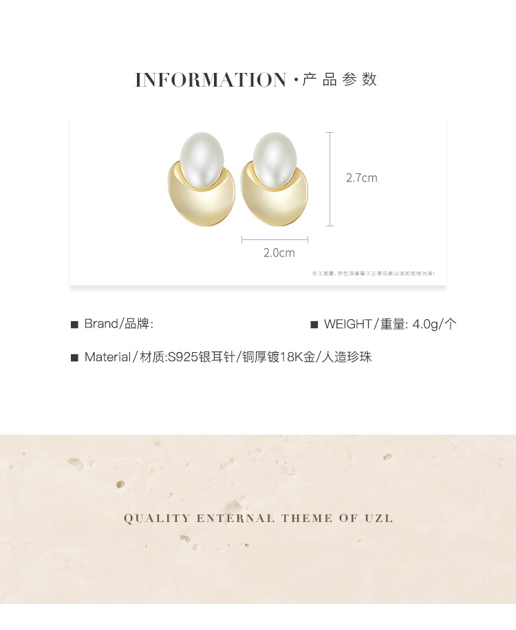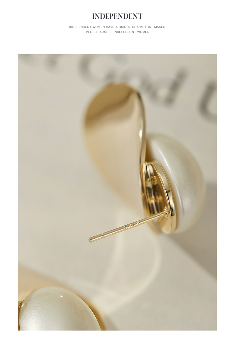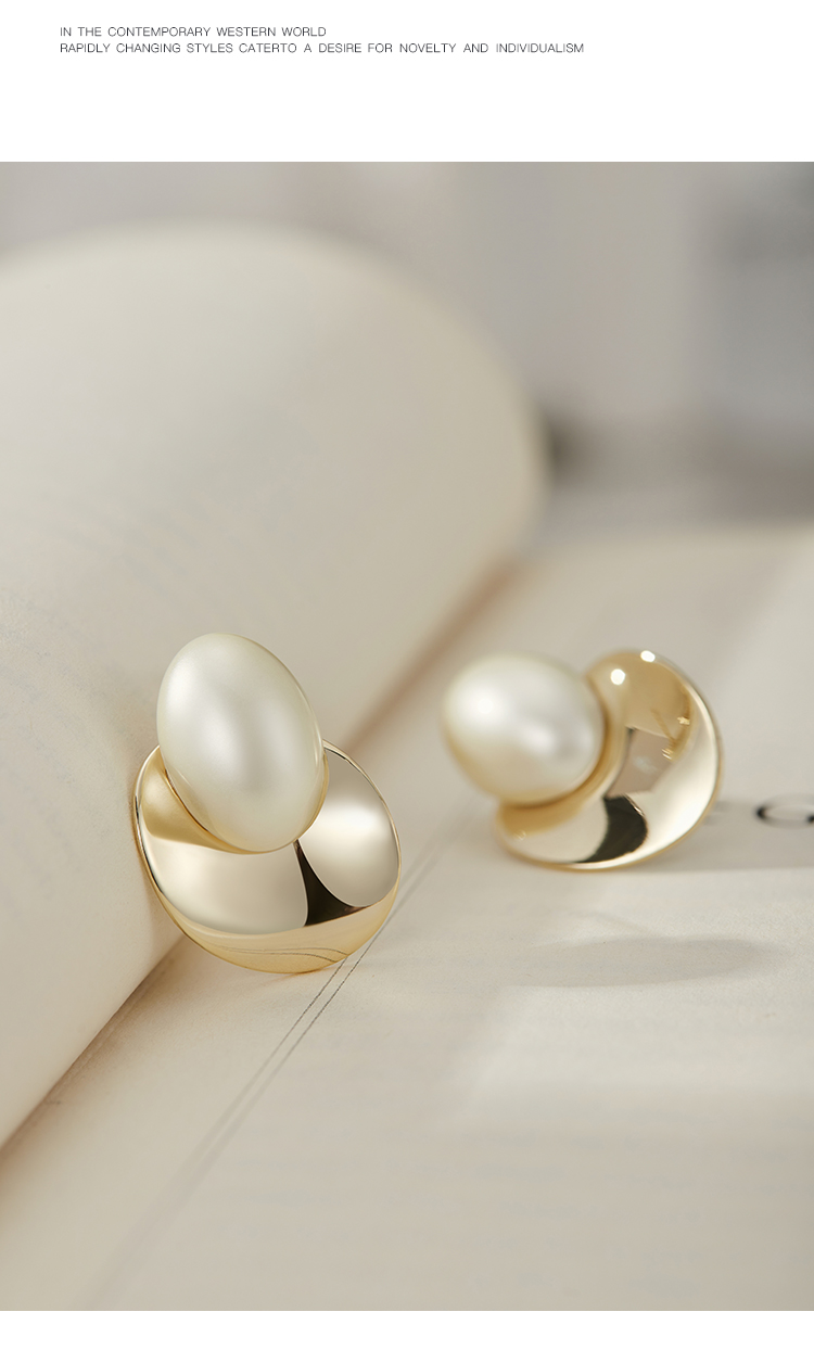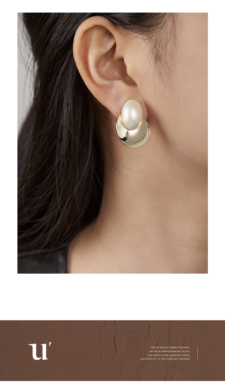 Oflye潮流饰品 欧美金属圆片珍珠耳钉新款潮小众设计感高级轻奢气质耳坠女