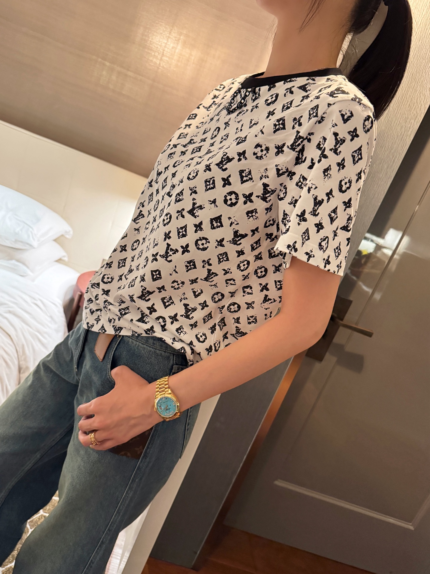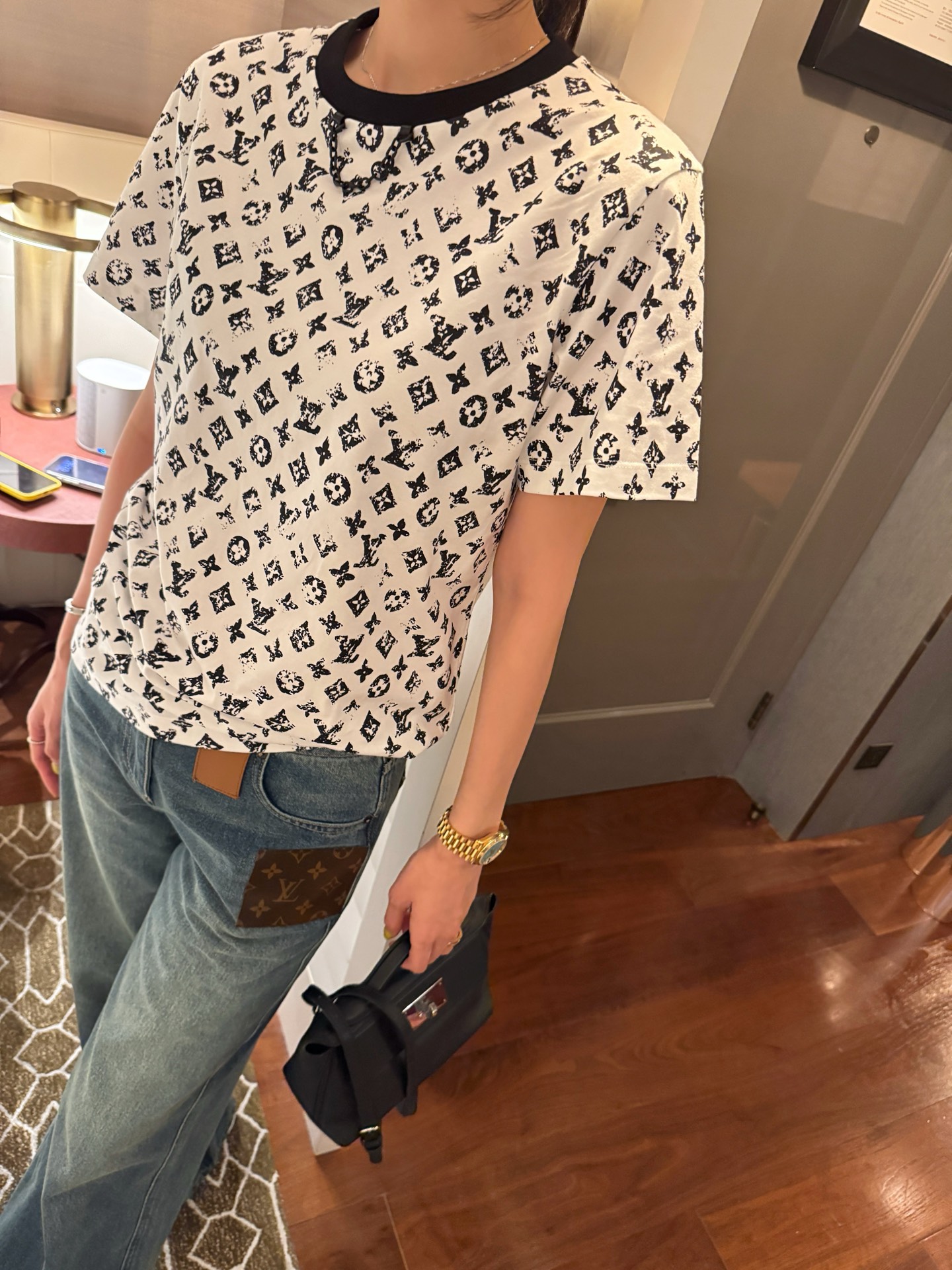 【现货发售】最最最新款🆕老花T恤💫高级到爆 💥 图案呈现复古水洗质感👍🏻做工和工艺相当复杂🔜质感无敌啦✔️ 万年夸😍经典款人手必备🔝百穿不厌🔜永不过时😉紧实又有质感耐穿不变形➕简约又有设计感🥳真的是随意搭配都好看🉑️ 妥妥的大爆款🔥必备款 敲推荐噢⚡️码数SML