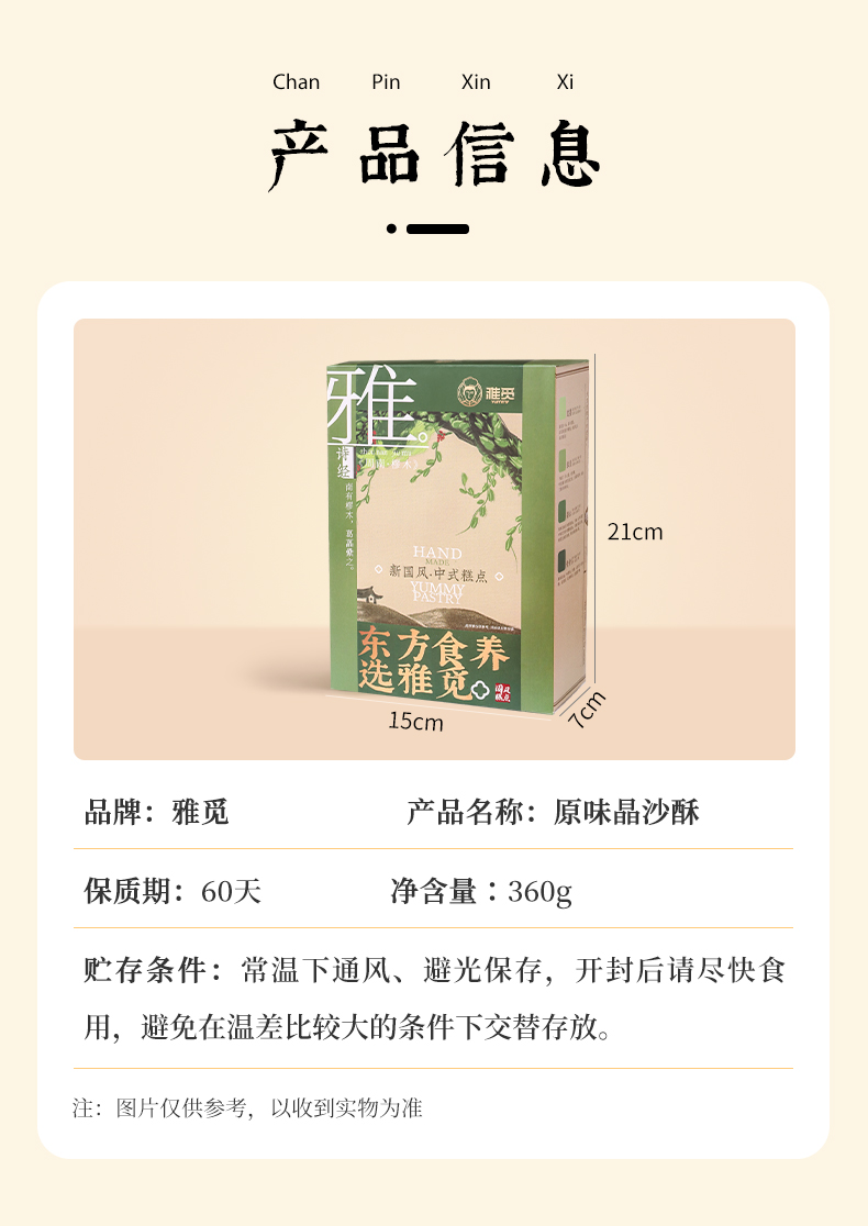 河北省邯郸市魏县雅觅原味晶沙酥360g(60g*6枚)