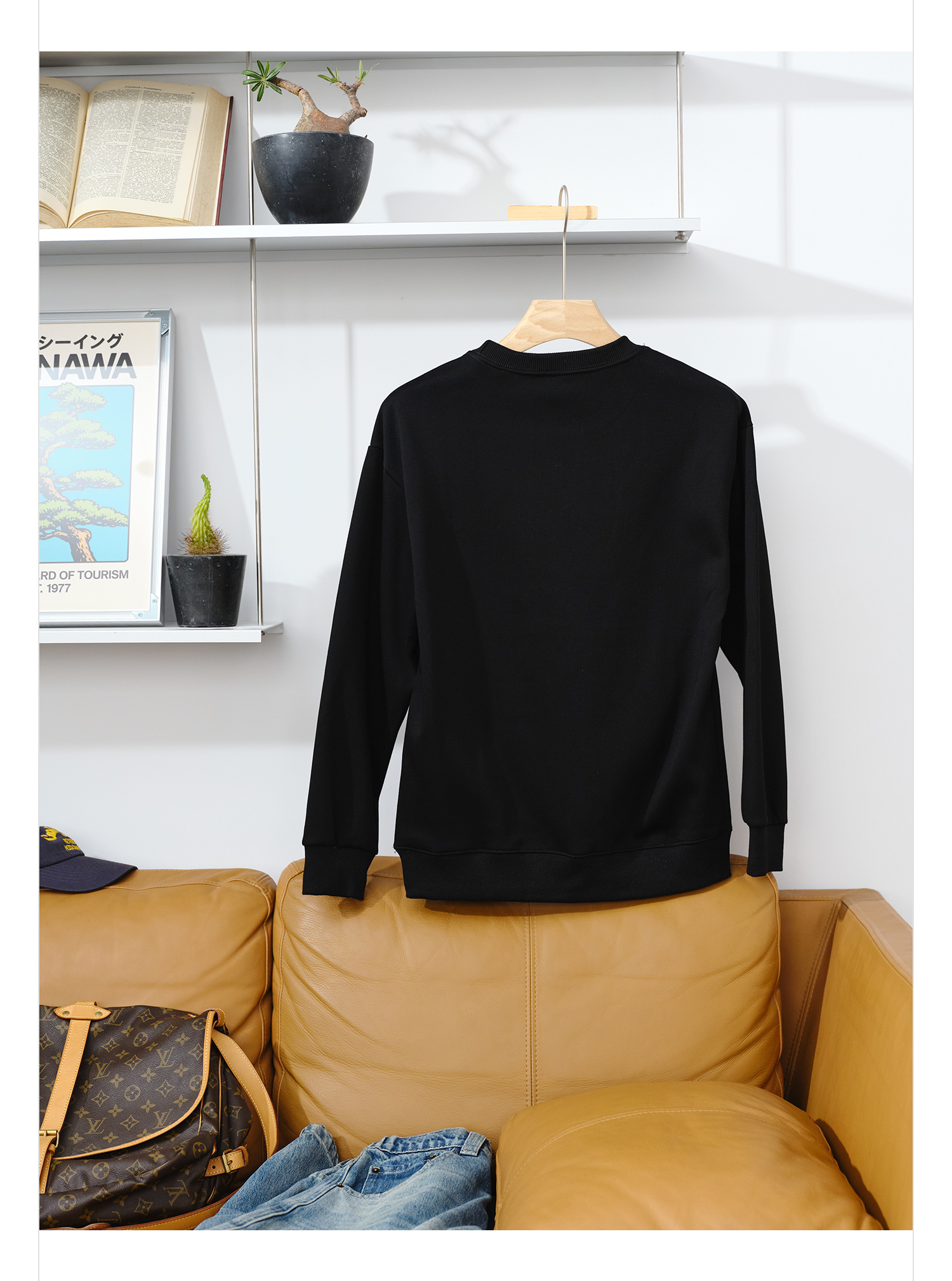 徐太浪【字母印花 帅气大码】灰色加绒卫衣男秋冬内搭打底衫上衣