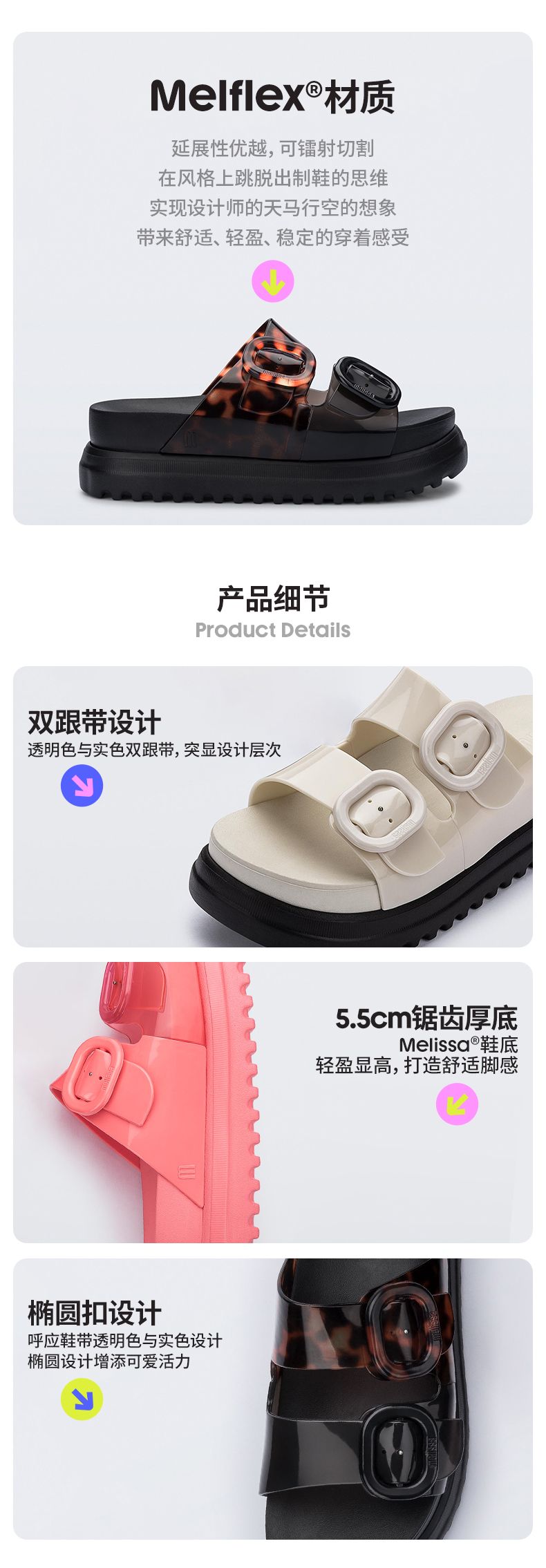 Melissa/梅丽莎 25新COZY女小可厚底勃肯拖鞋双带休闲外穿拖鞋36158