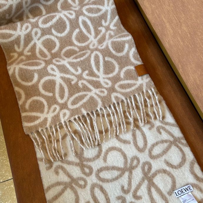 罗意威Loewe超美奶茶风新款羊驼毛Anagram围巾,超级推荐入手!