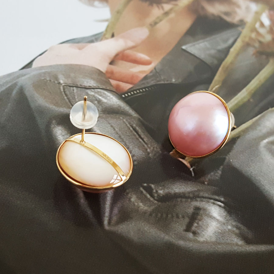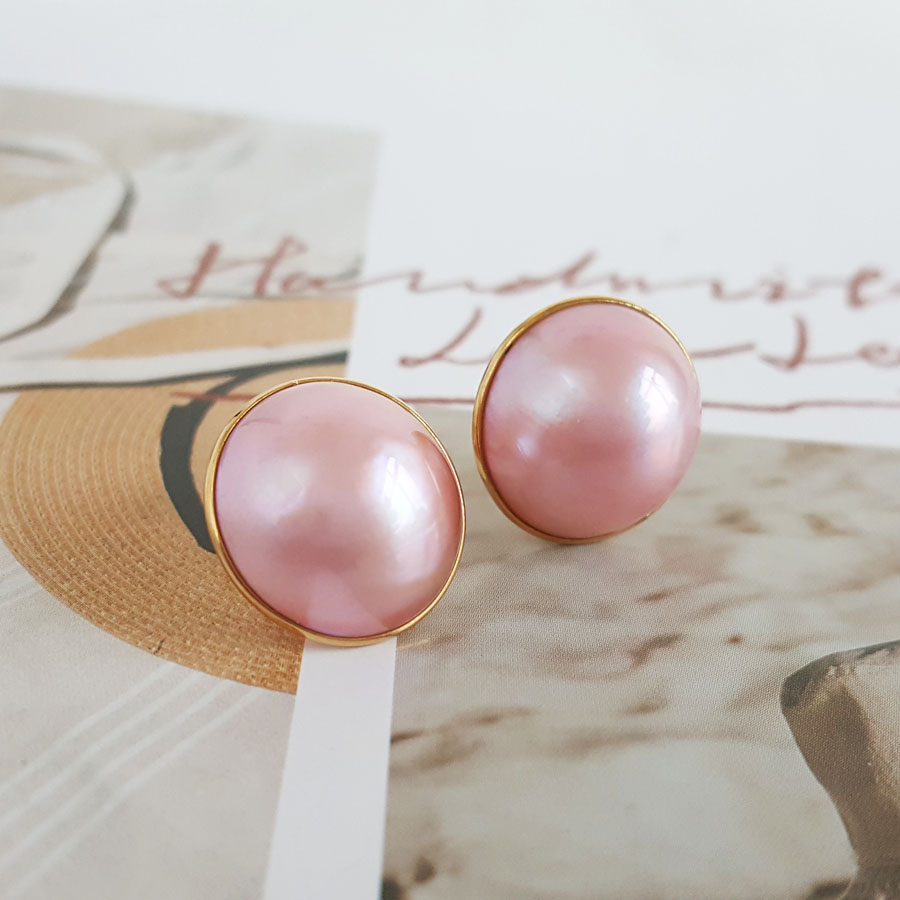 名称 | AU750黄金镶天然圆形马贝珠海水珍珠耳钉 |